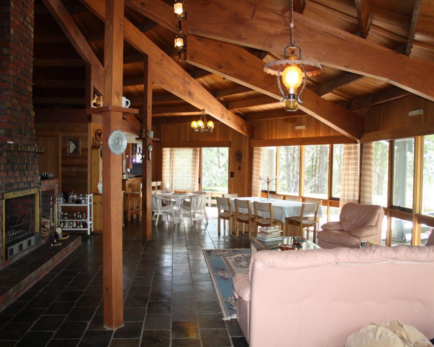 * Huge open plan living area with natural slate floors