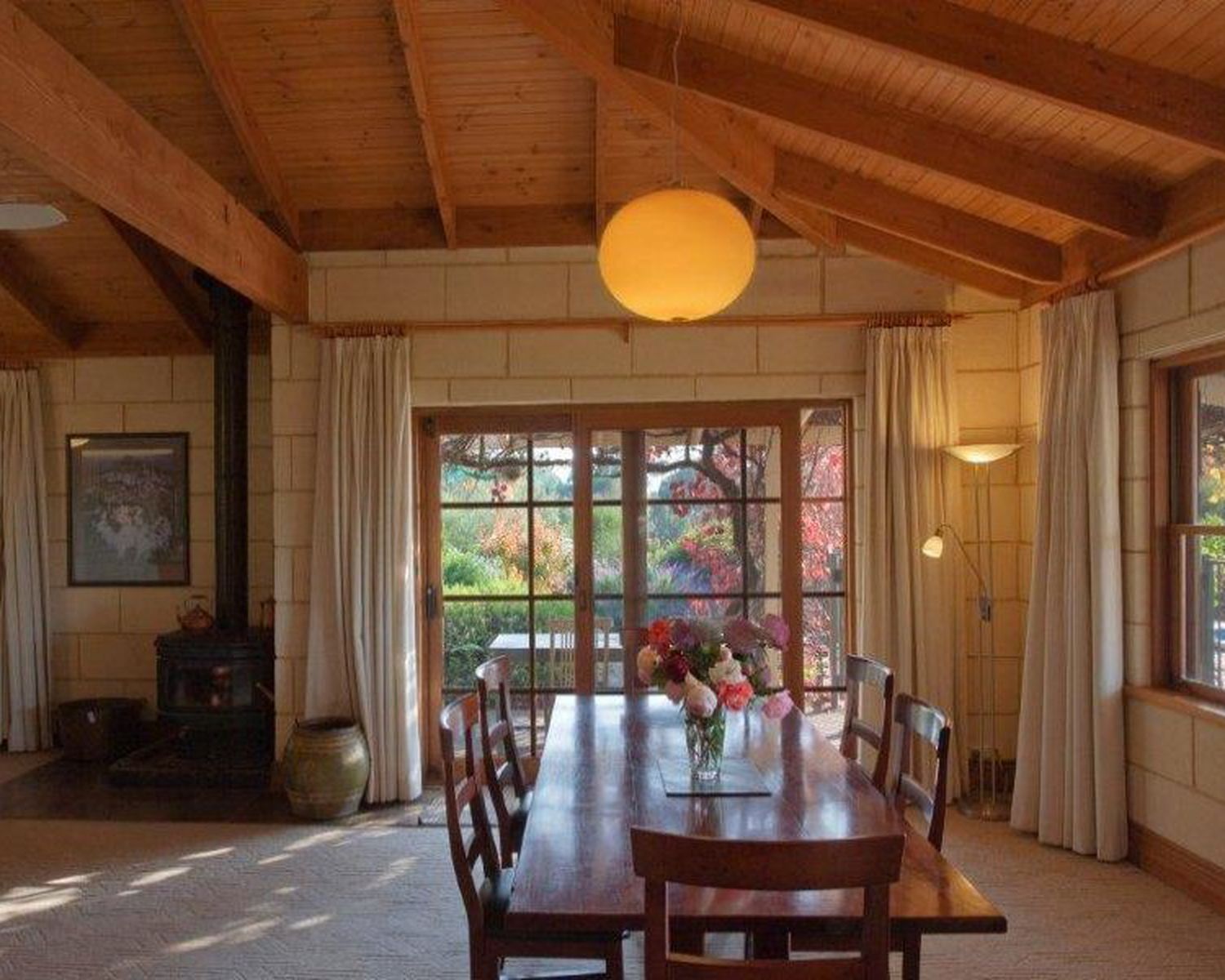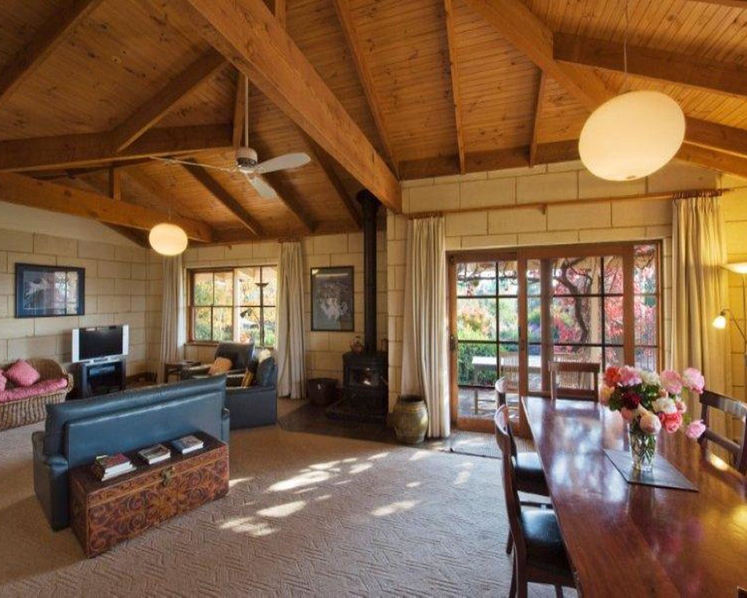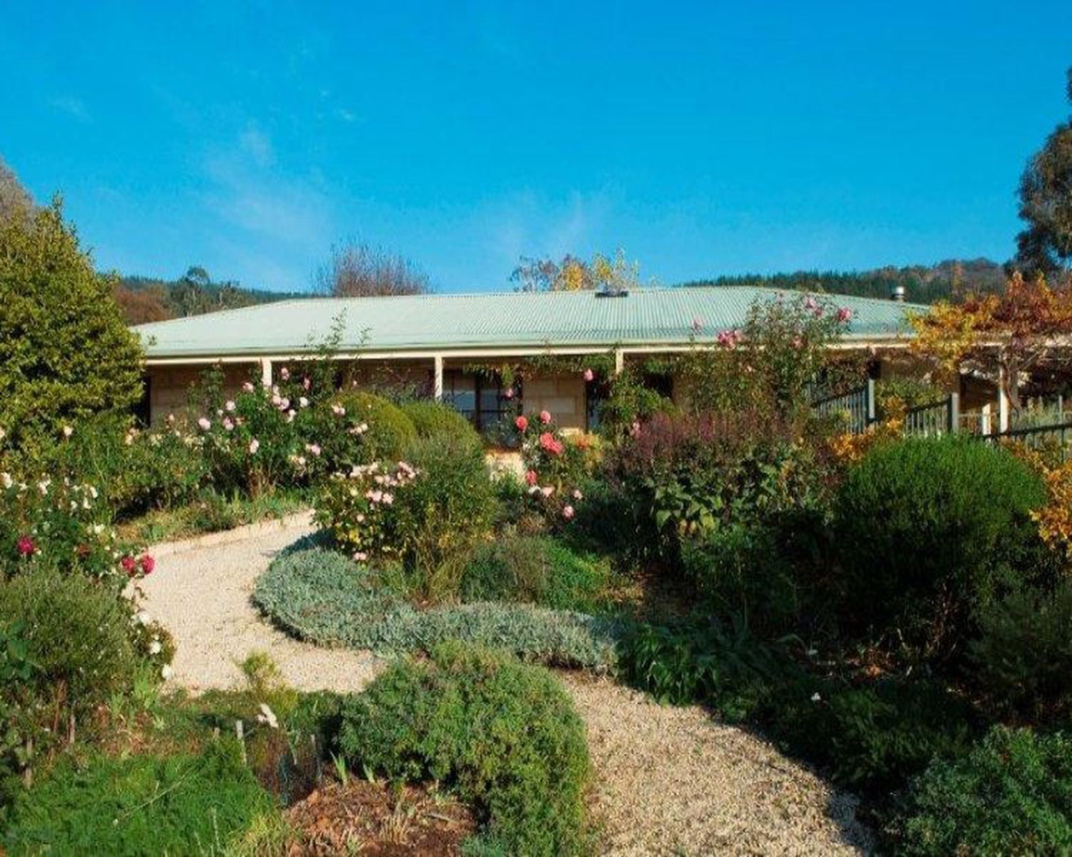 Built with hand chiselled Mt Gambier limestone, this charming homestead is nestled in a delightful garden setting with abundant bird-life and panoramic views across the Delatite Valley to Mt Buller.
