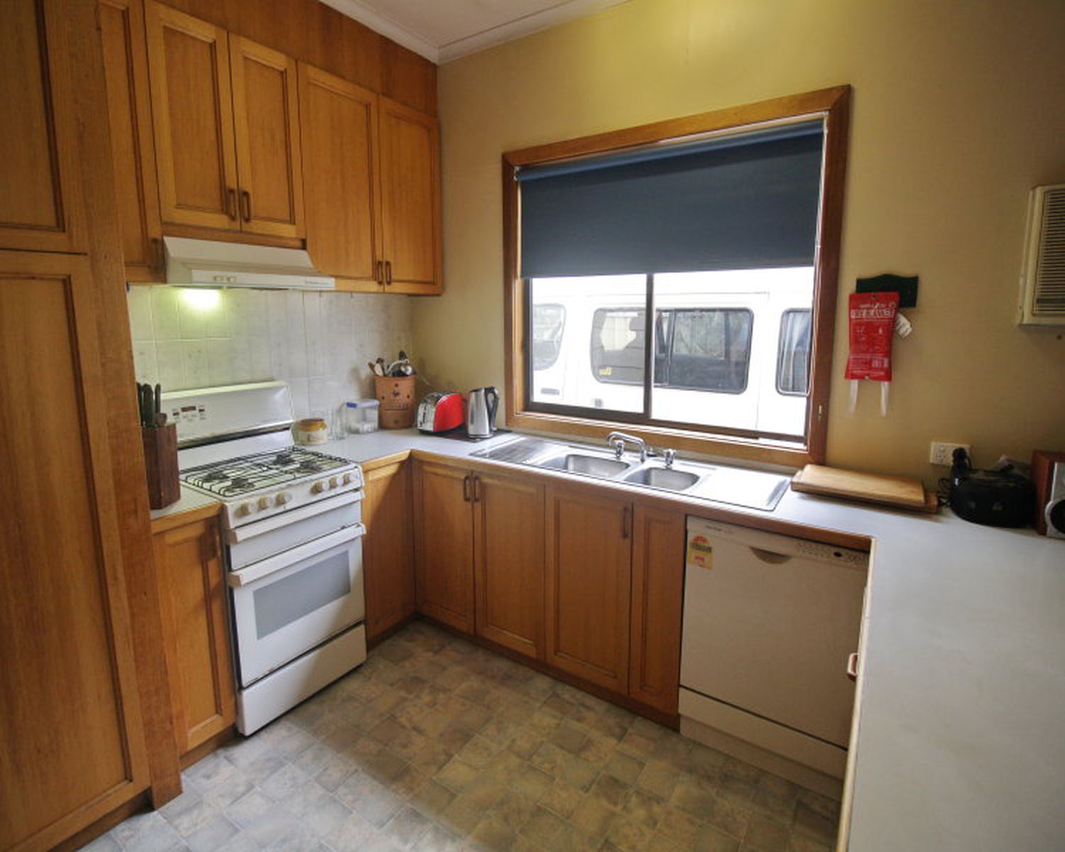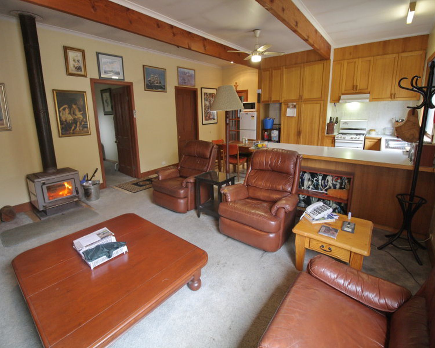 * Combined living/kitchen/meals with split system & Coonara wood heater