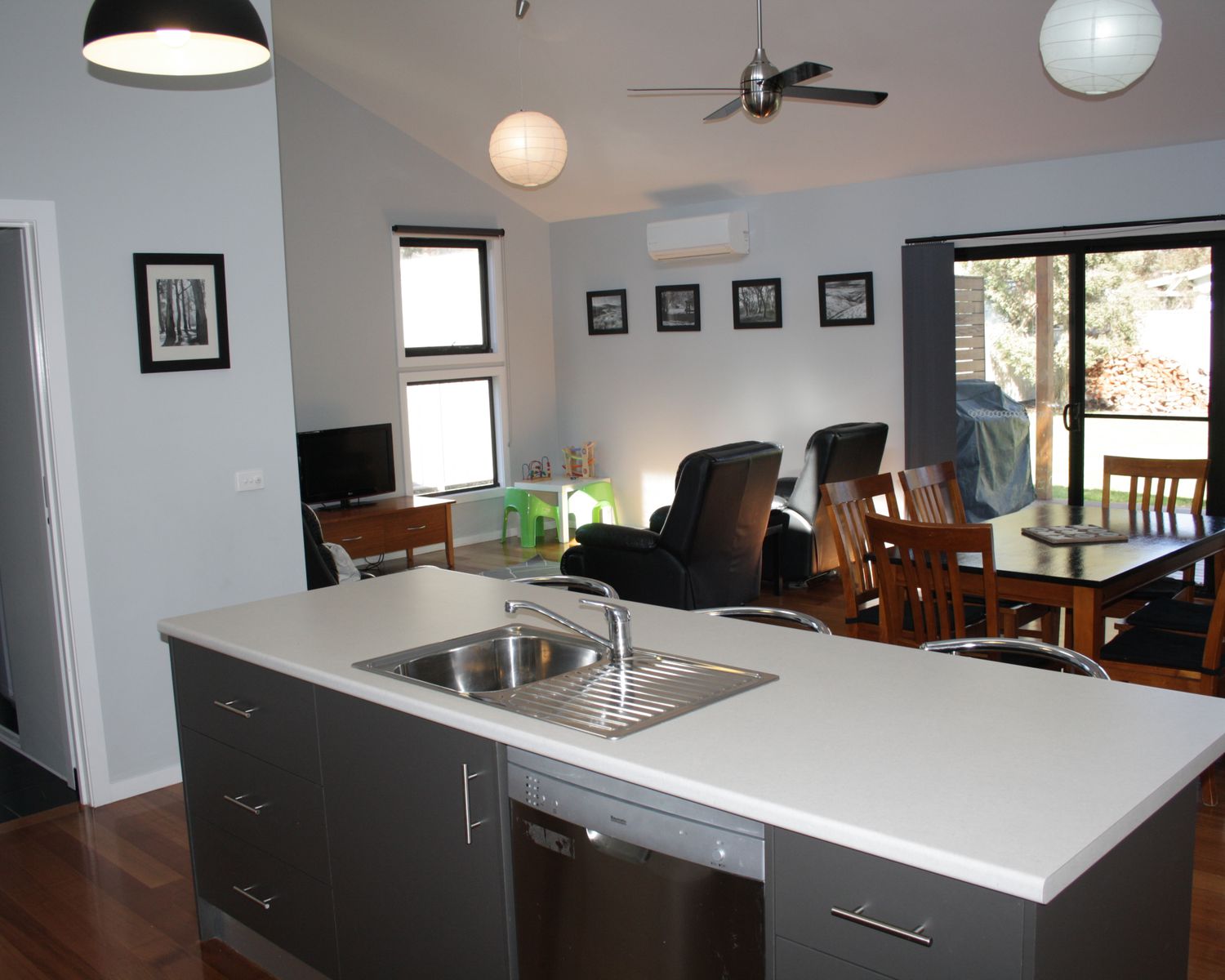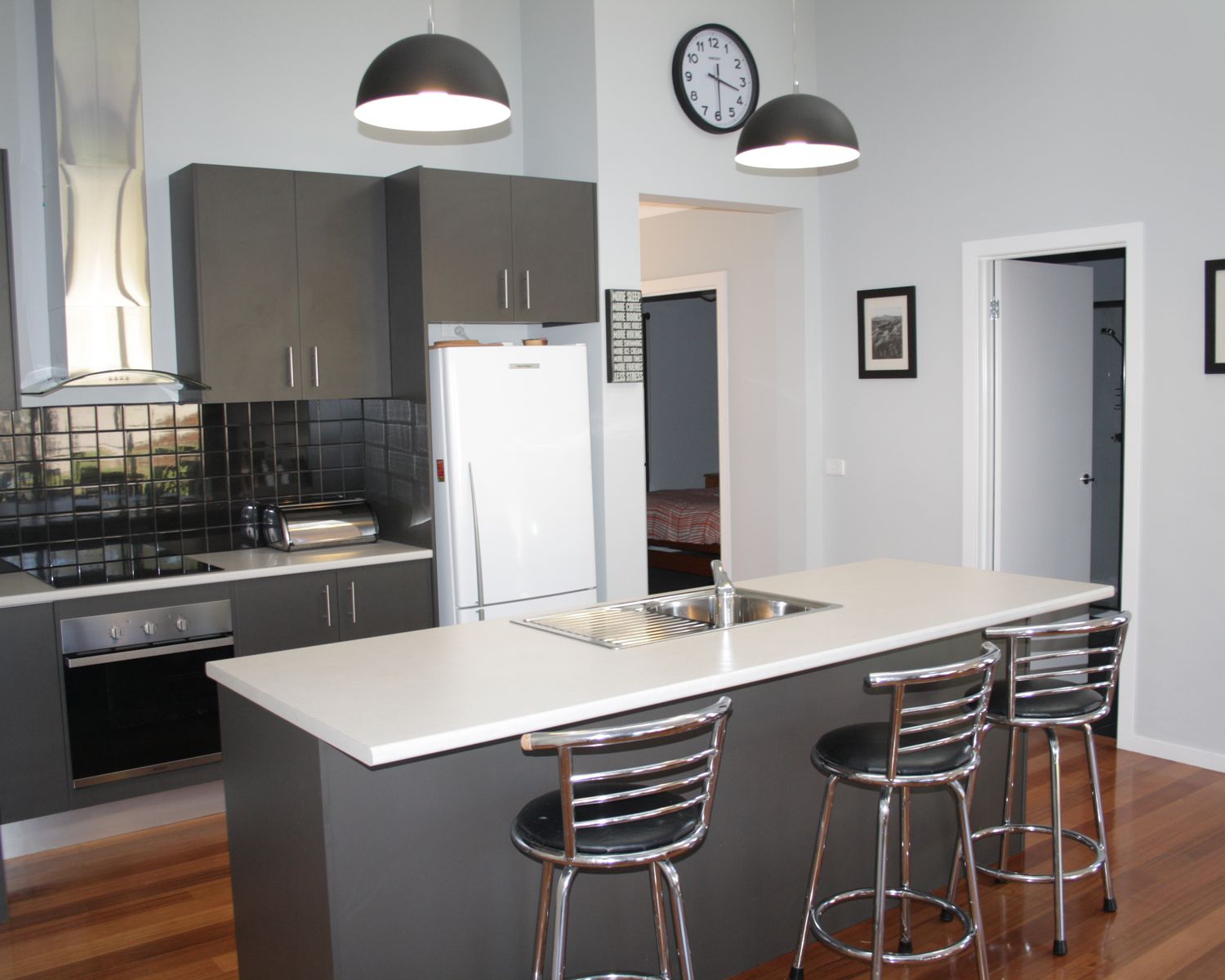 - Large kitchen with island bench and plenty of cupboard space