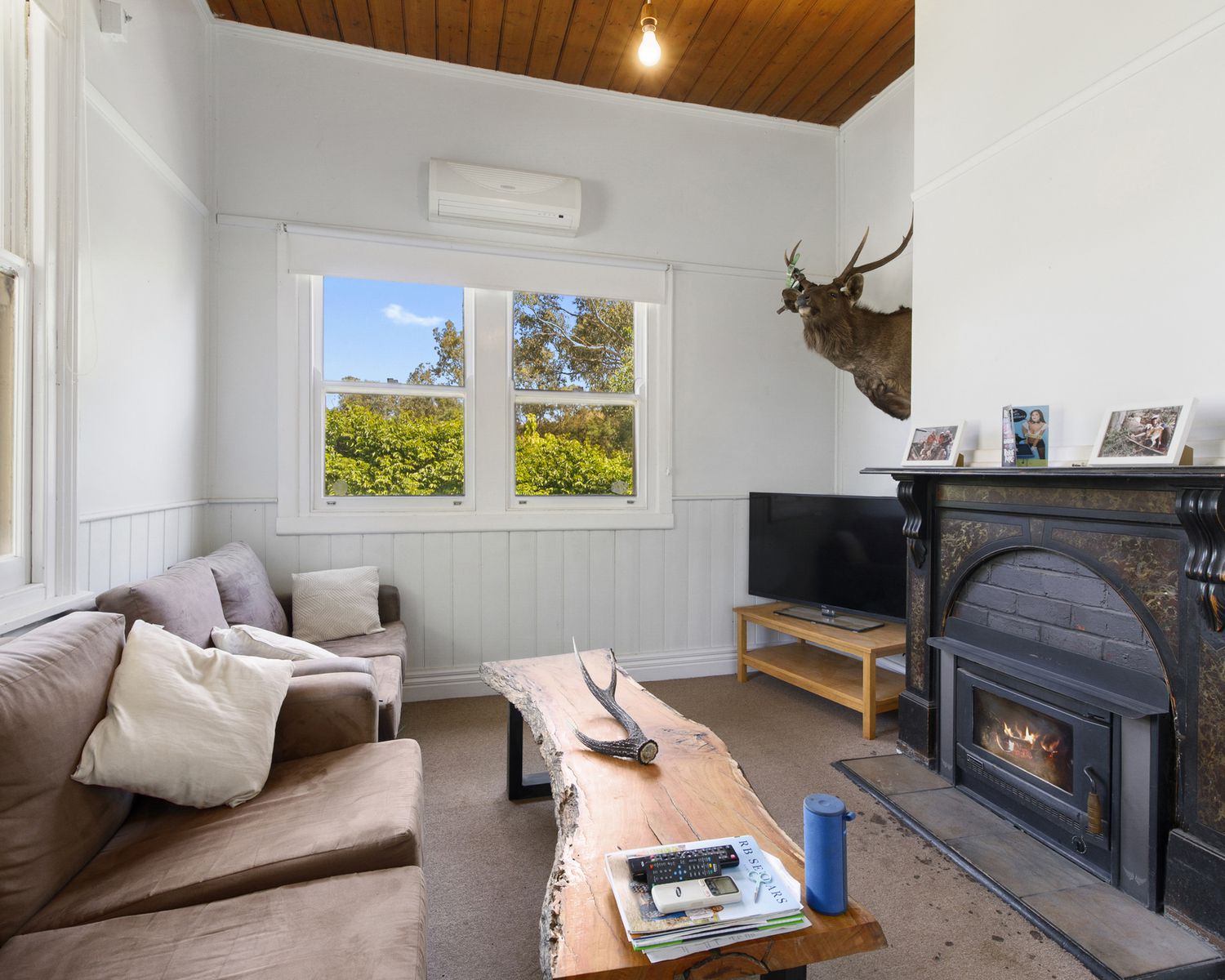 - Lounge with cosy wood fire and reverse cycle air conditioning