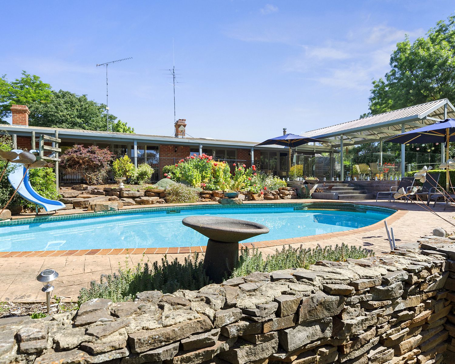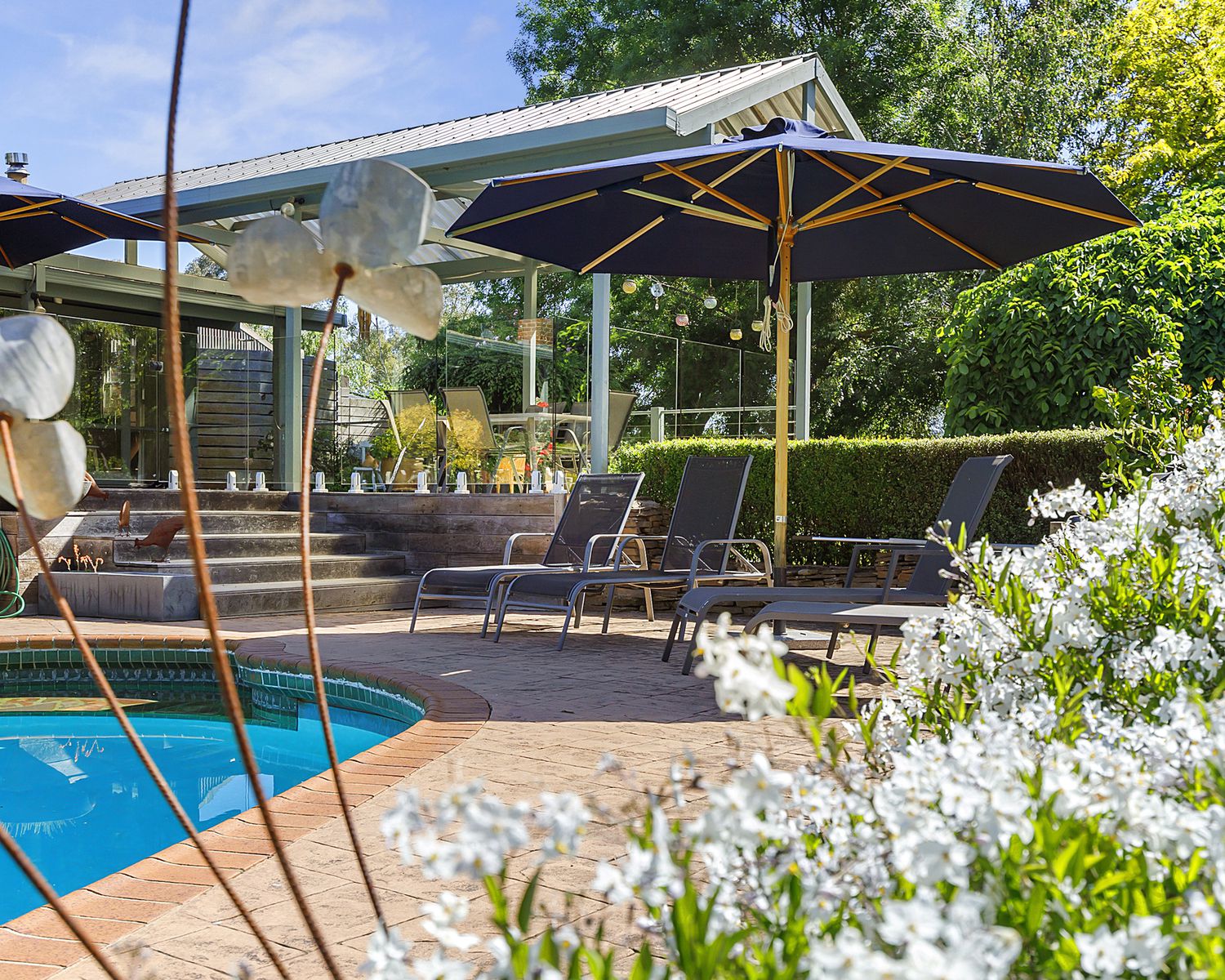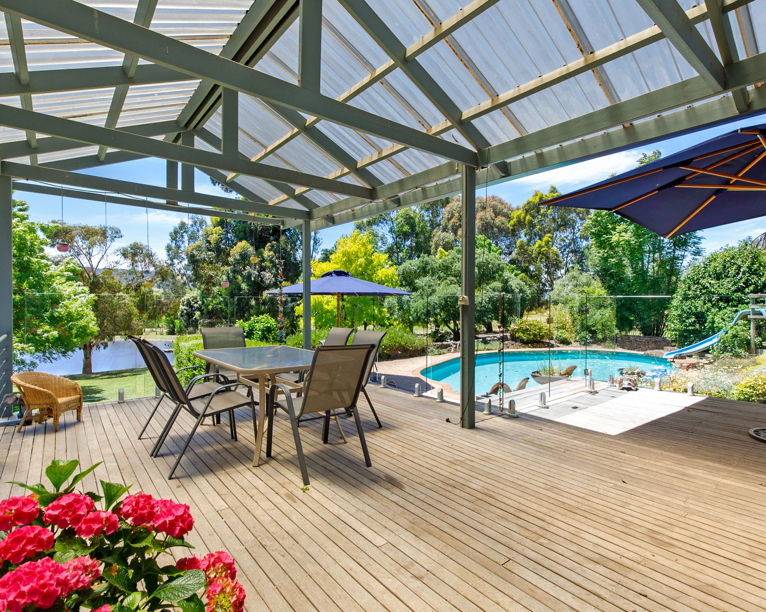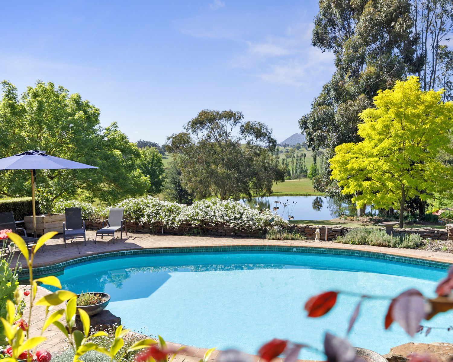 - In ground salt chlorinated pool overlooking the pretty garden and ornamental dam