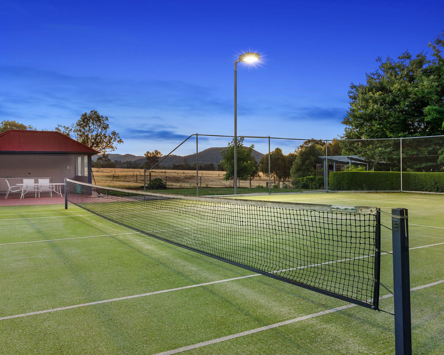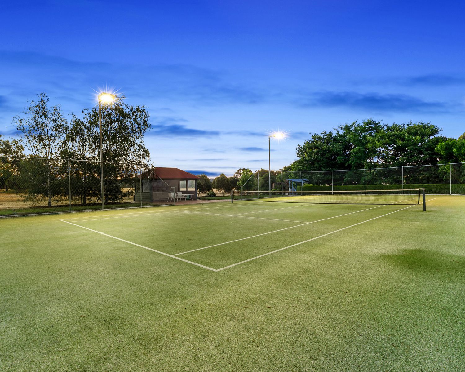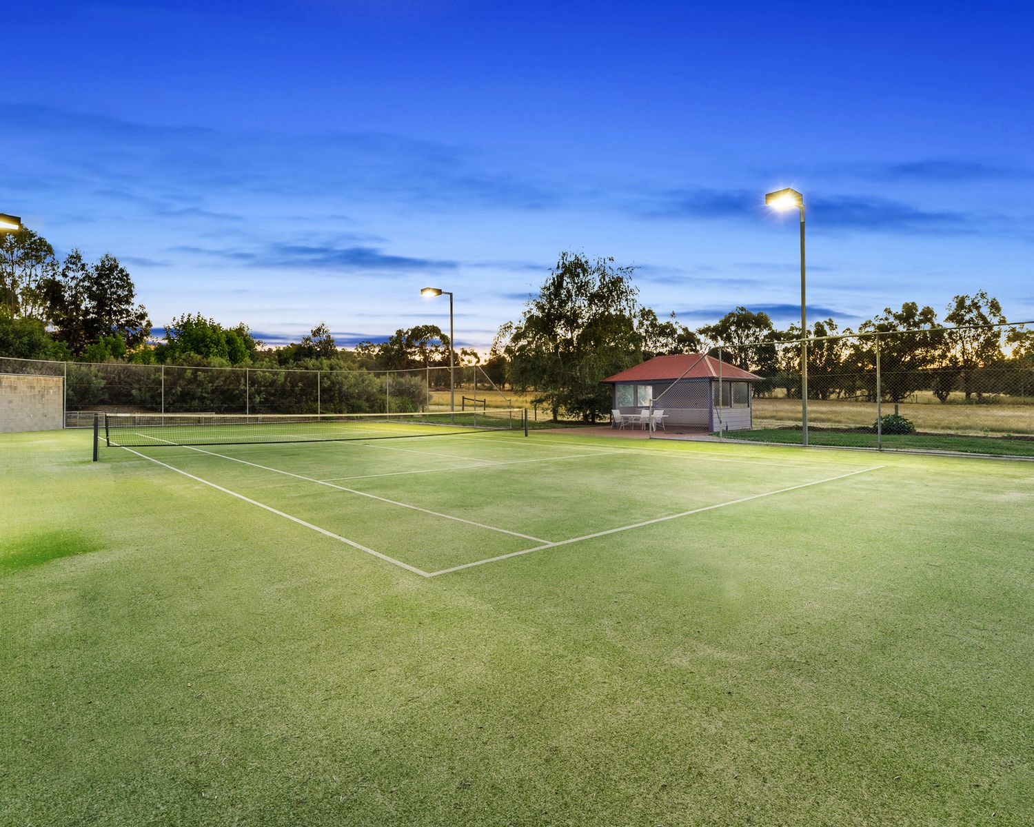 - Mod grass tennis court with flood lights complete with gazebo and kitchenette