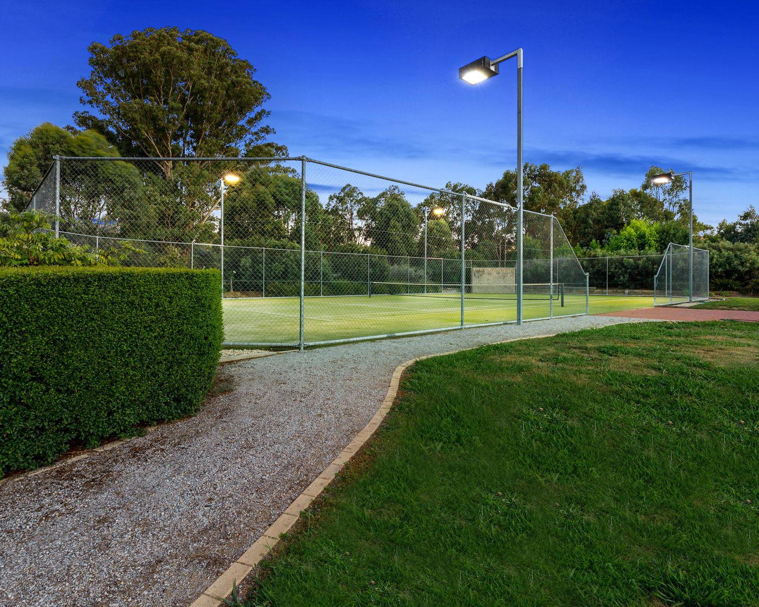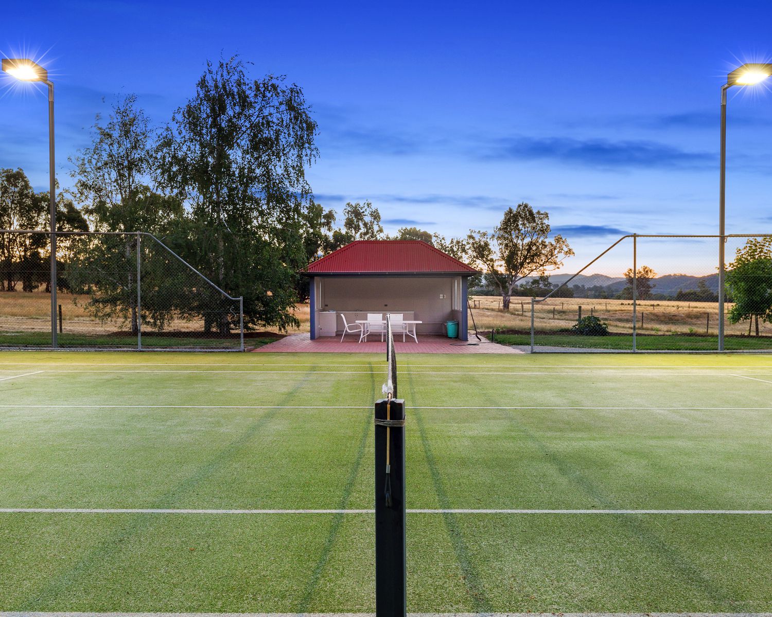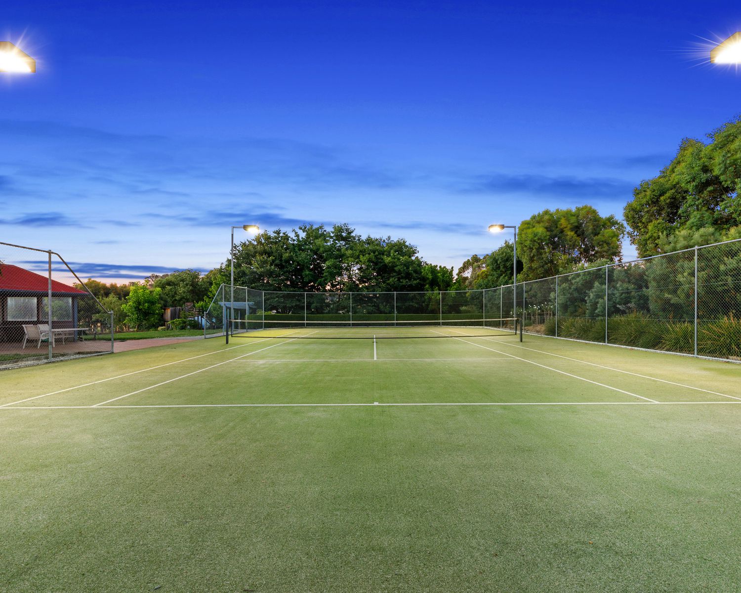 - Mod grass tennis court with flood lights complete with gazebo and kitchenette