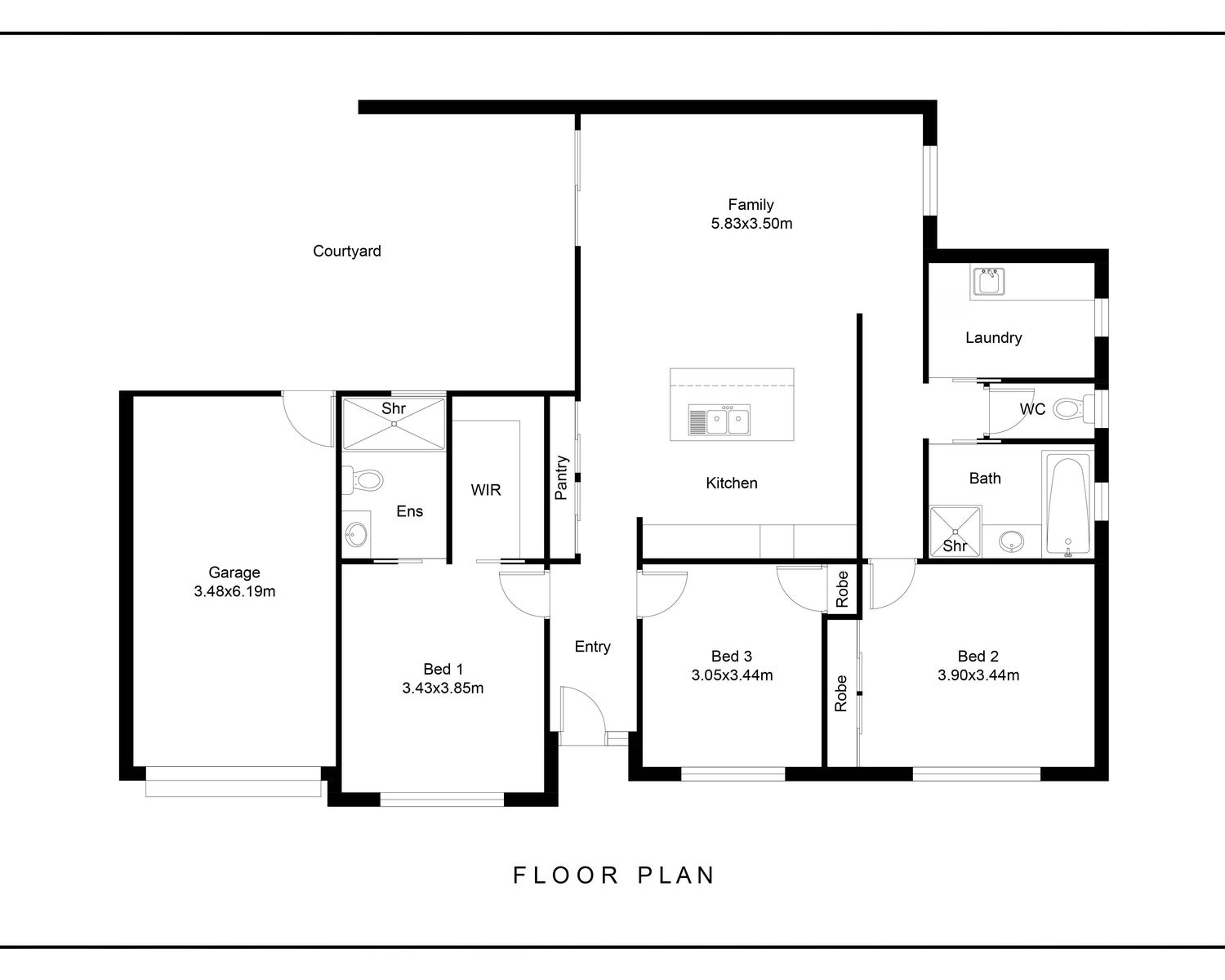 The master bedroom features a spacious walk-in robe and a modern ensuite for your convenience. The two additional bedrooms also come equipped with built-in robes, ensuring ample storage space for the whole family.