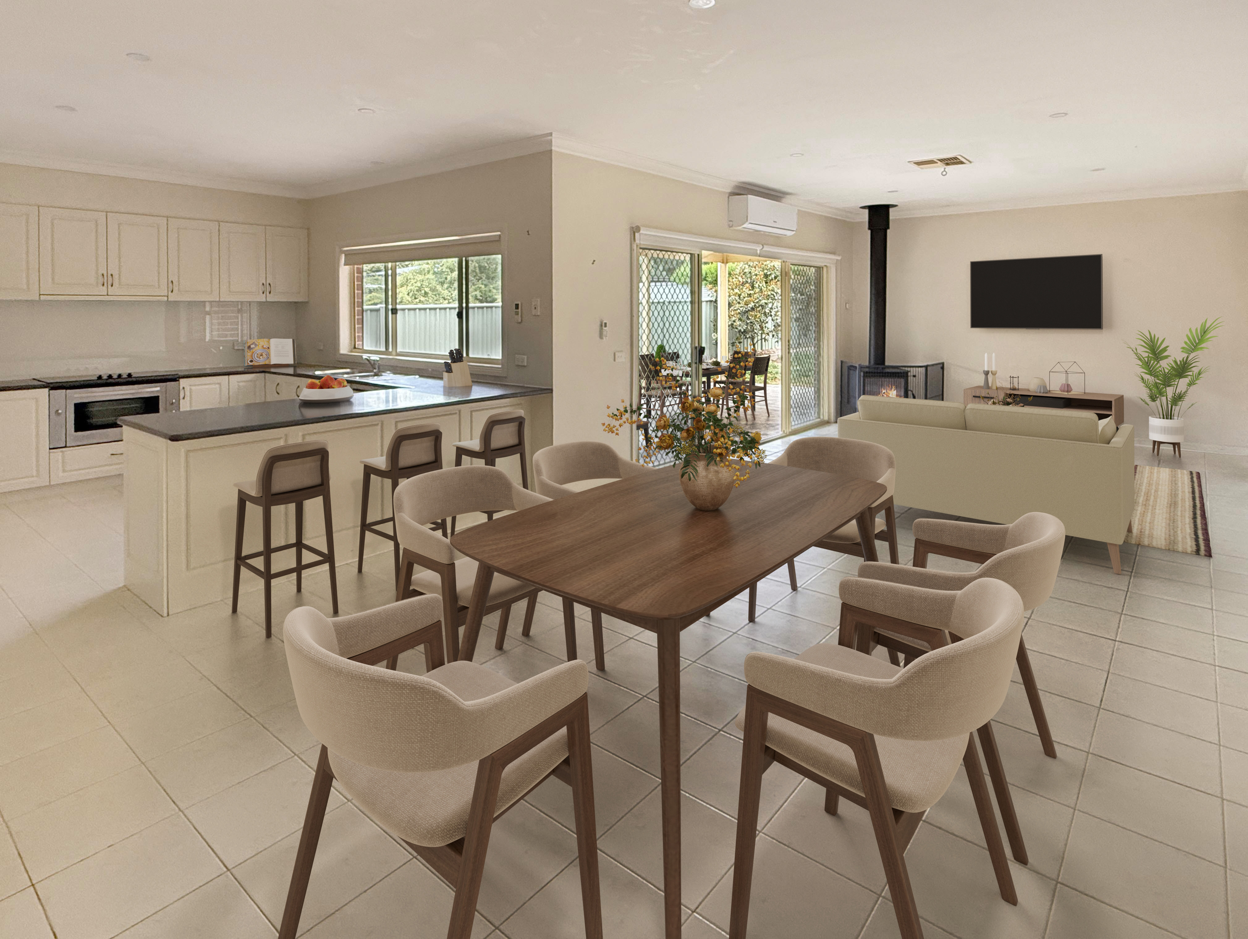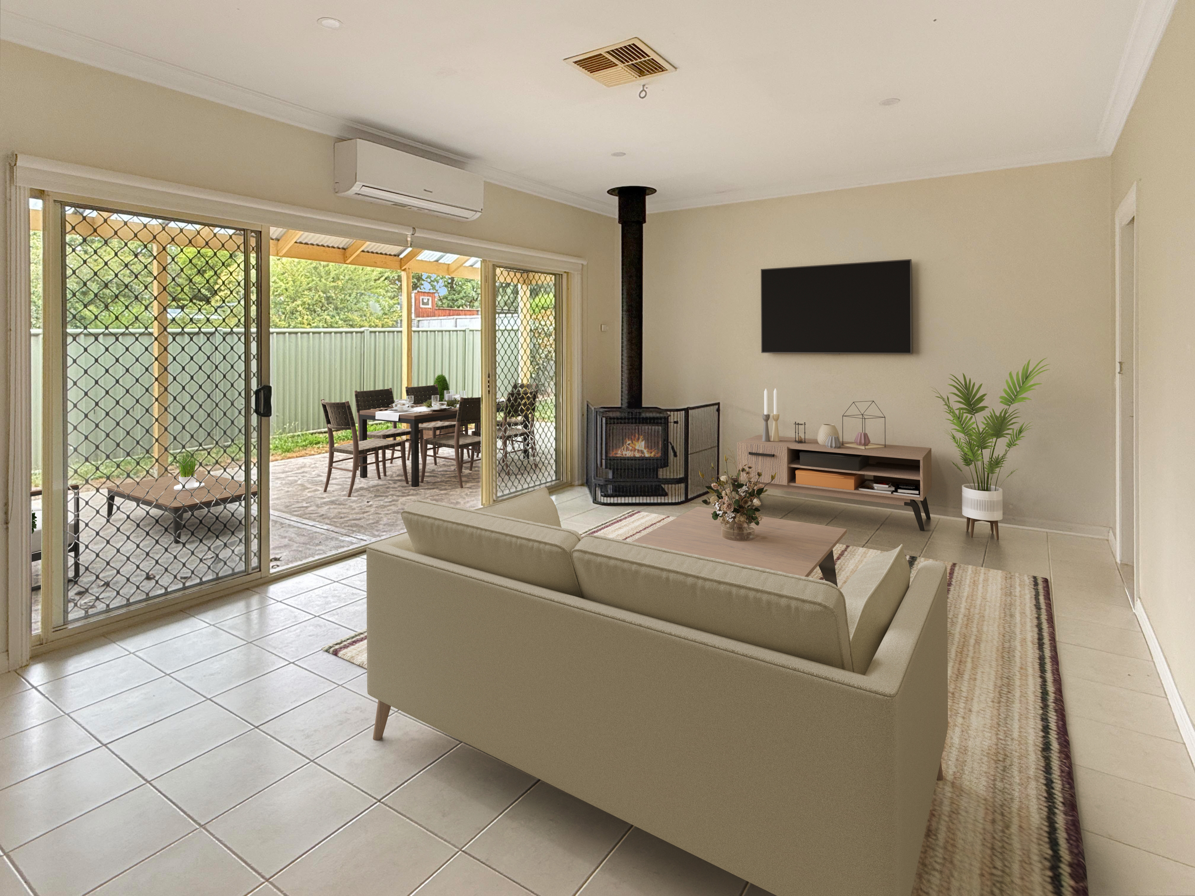 The property features 4 generous bedrooms, 2 bathrooms, and 2 separate living areas, providing plenty of room for the entire family. The modern open-plan kitchen is a chef's delight, equipped with a double oven and a 900mm electric cooktop. Stay comfortable year-round with ducted evaporative cooling, two reverse-cycle split systems in the living spaces, and a freestanding wood fire for cozy winters. Zoned floor heating thrown in the mix and you're fully covered for warm winter evenings.