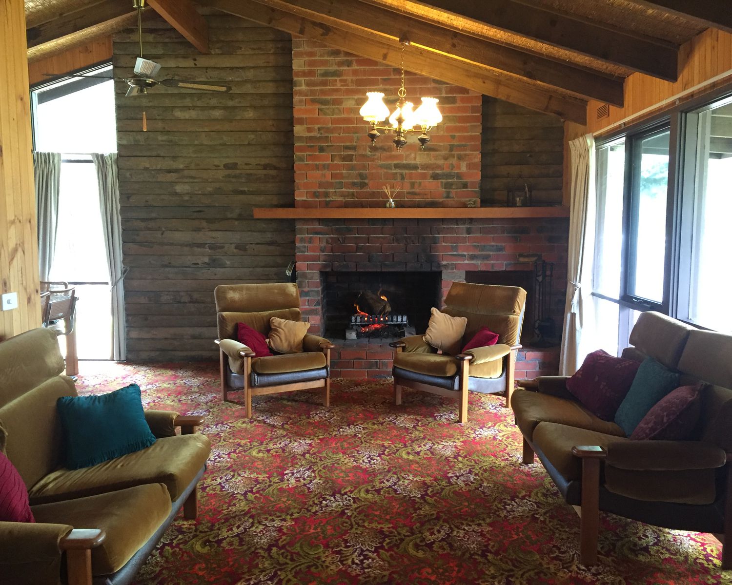 Open plan lounge/ dining room with open fire place and ceiling fan. Ducted heating and evaporative cooling throughout.