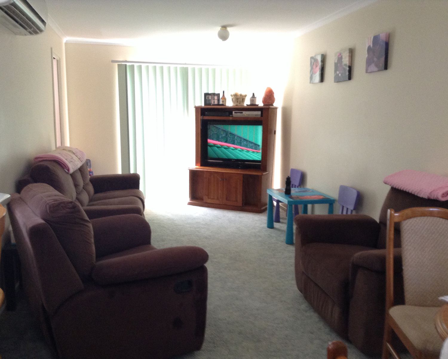 Open plan kitchen/ living room with split system heating and cooling
