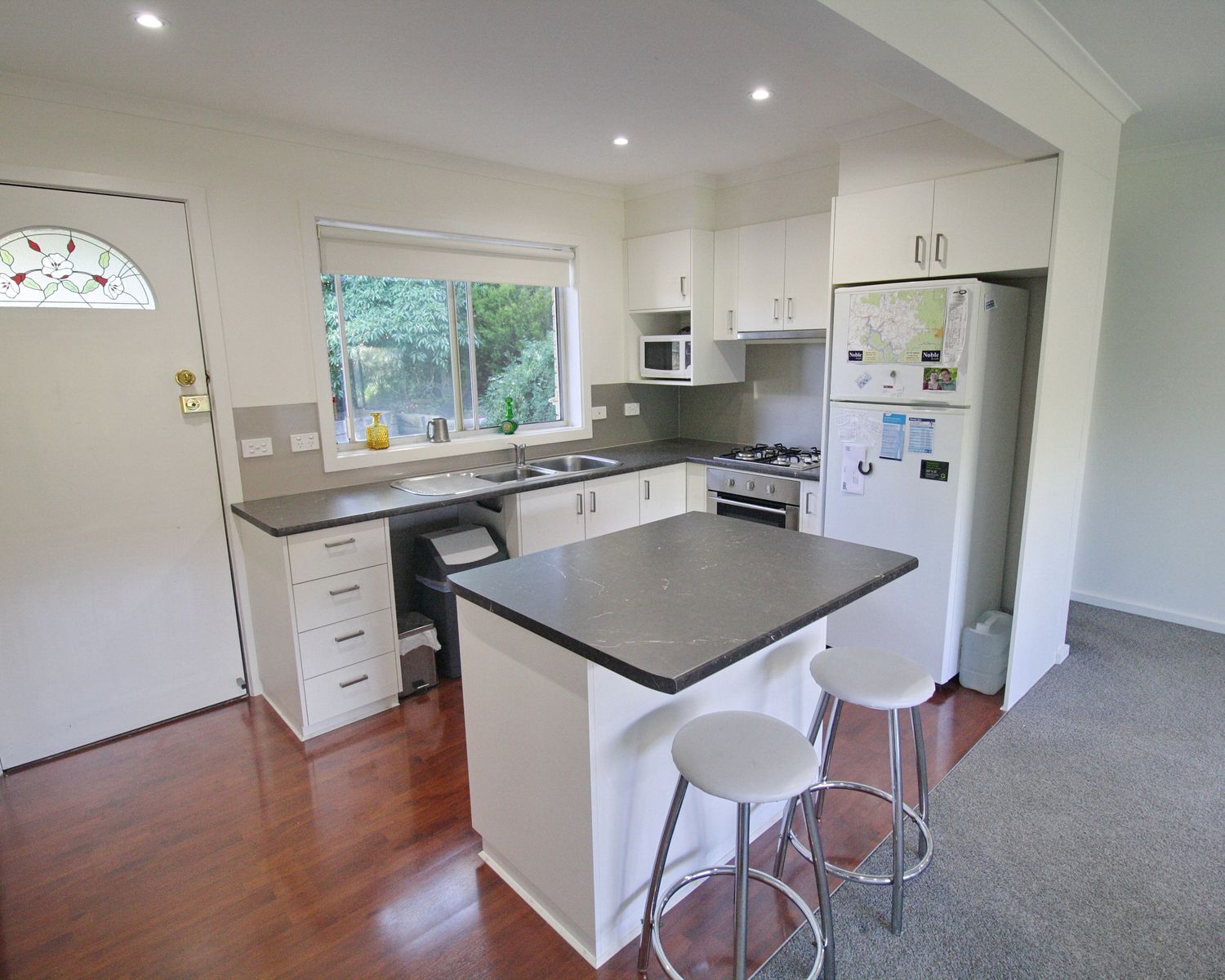 Open plan kitchen and living area with access to the balcony for great mountain views.