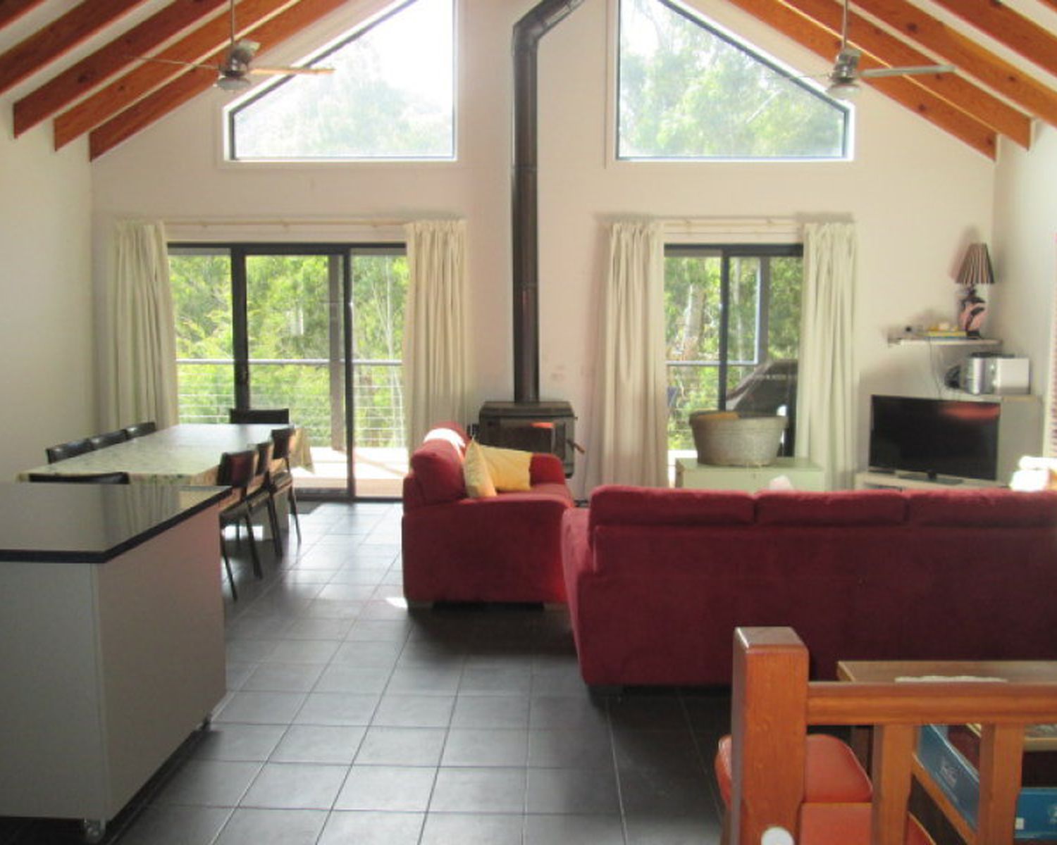 Comfortably furnished with lovely treed views.