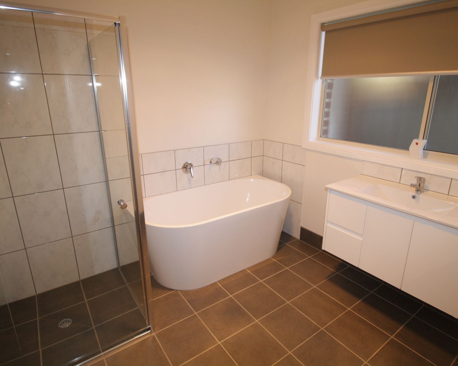 Fully renovated bathroom with separate shower and deep freestanding bath