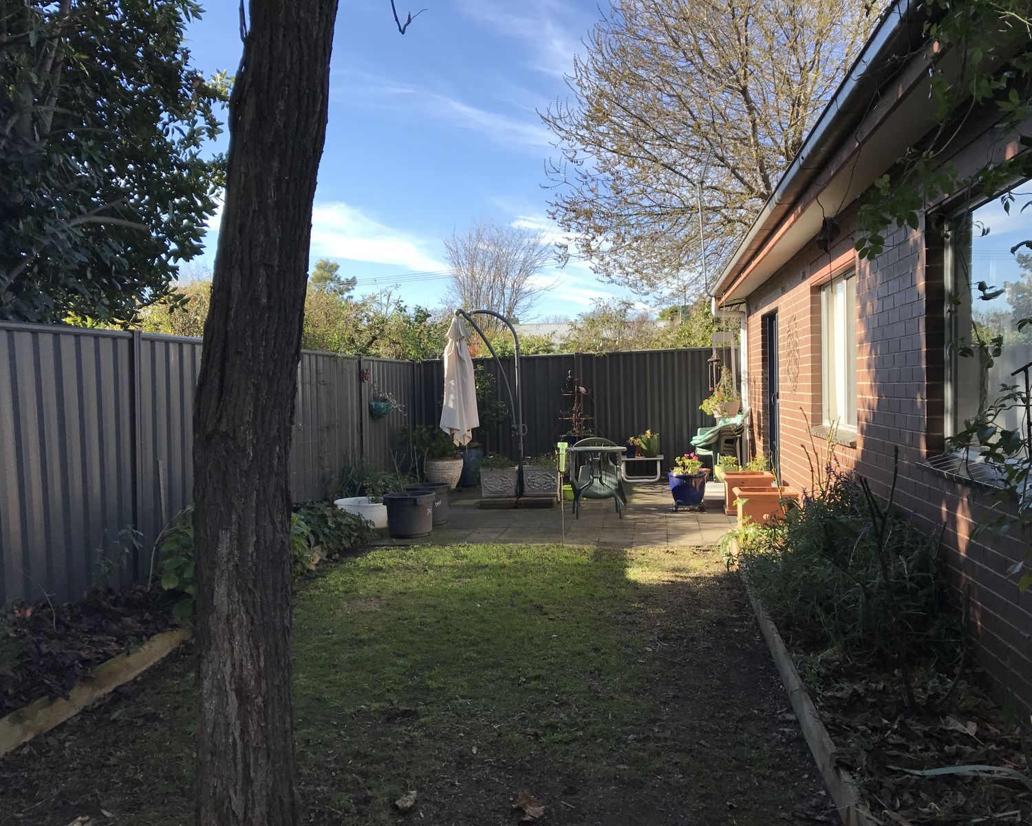 Large rear yard with lock up shed.