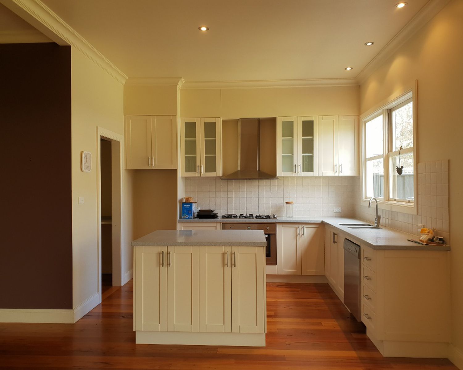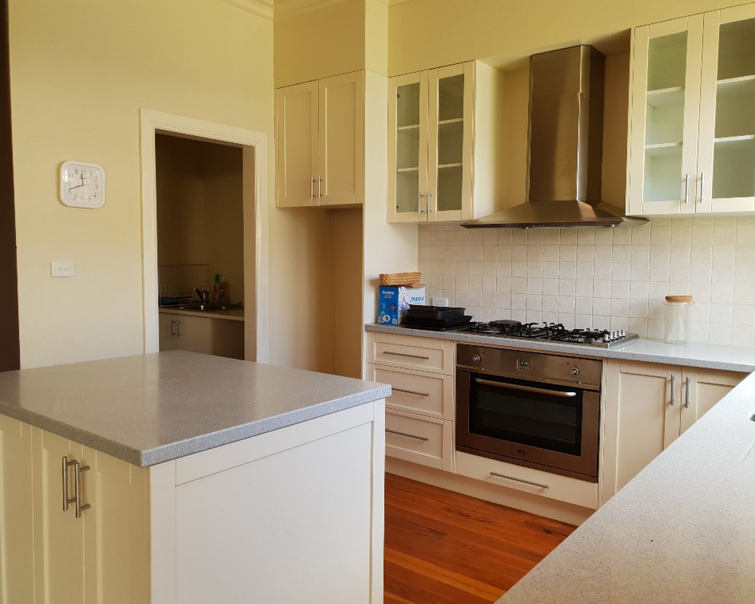 Kitchen features an island bench, gas cooking, dishwasher and walk in pantry