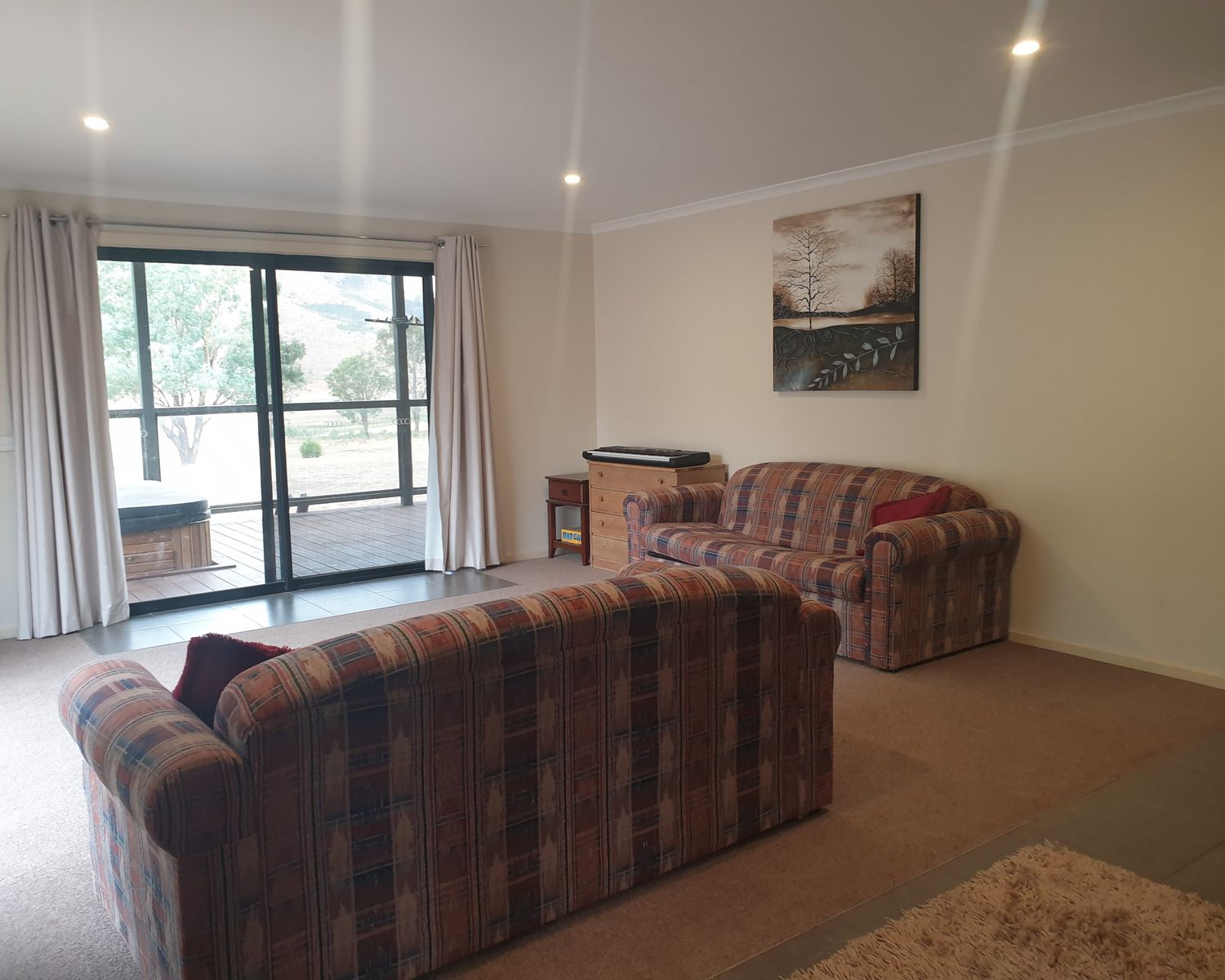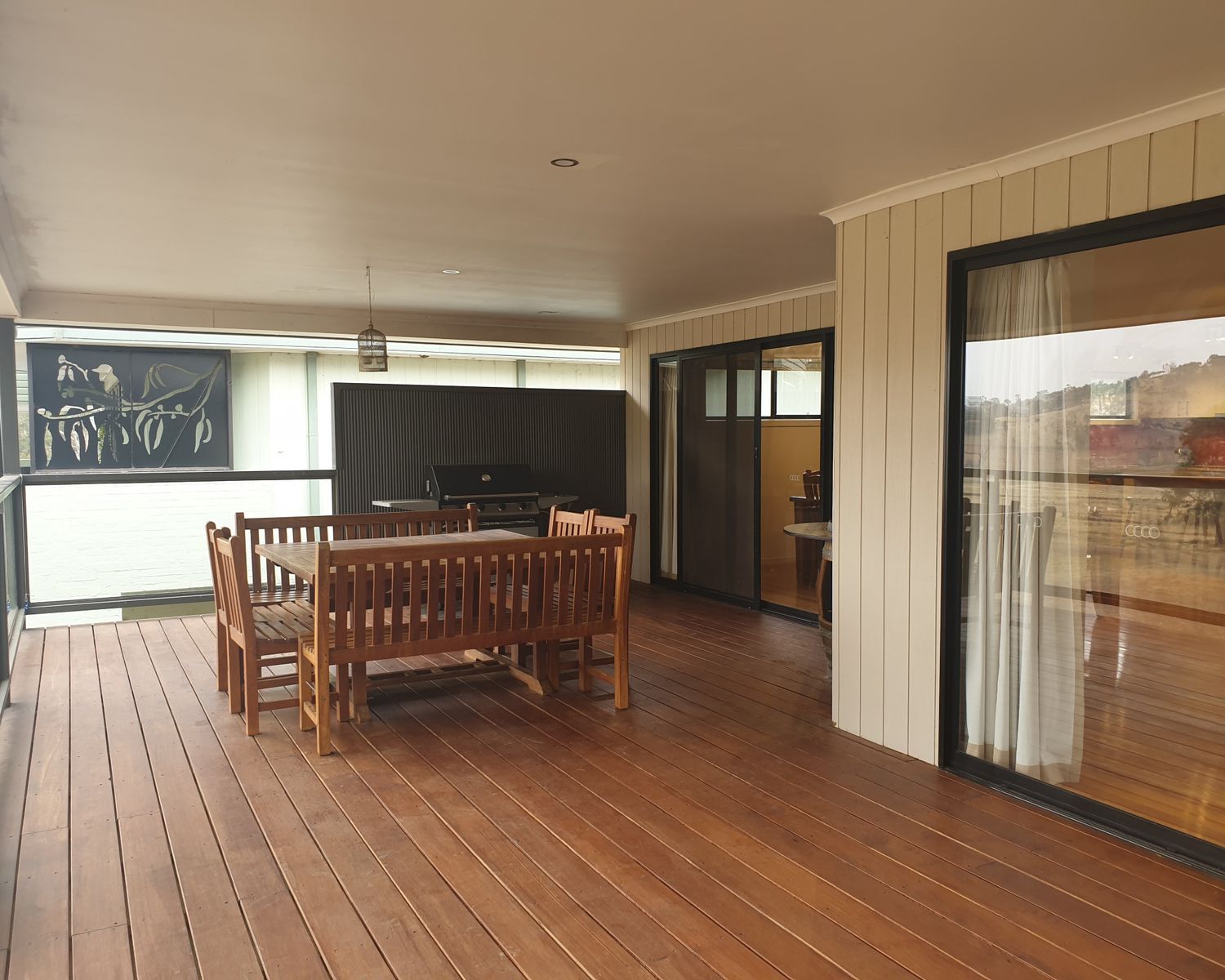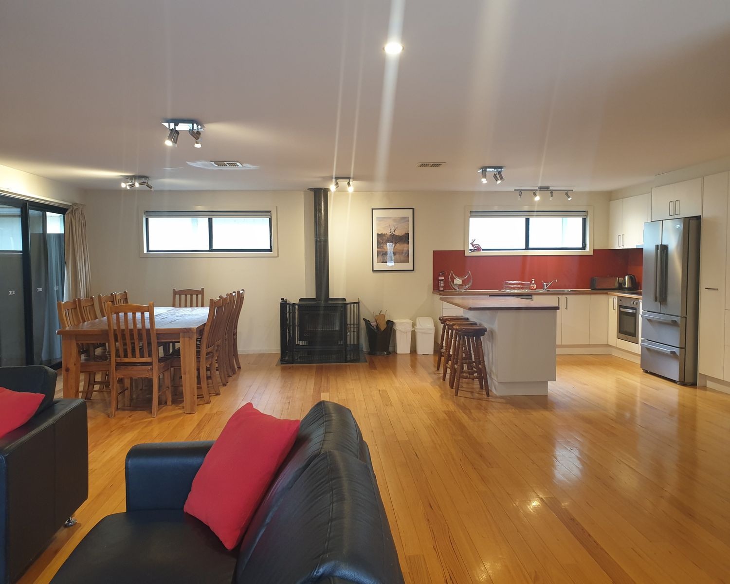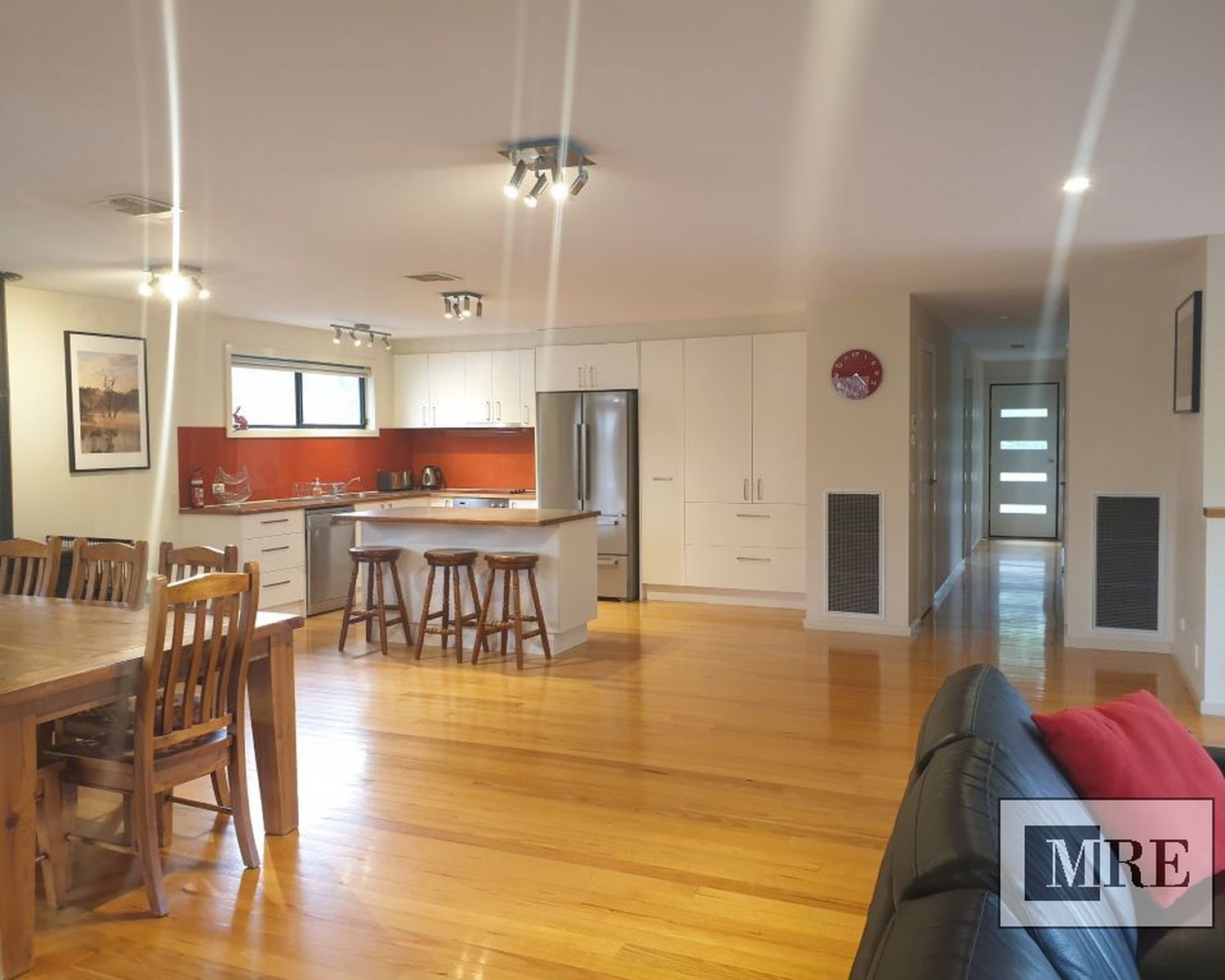 Upstairs with large open plan kitchen, living and dining opening up onto entertaining deck with lovely rural views.