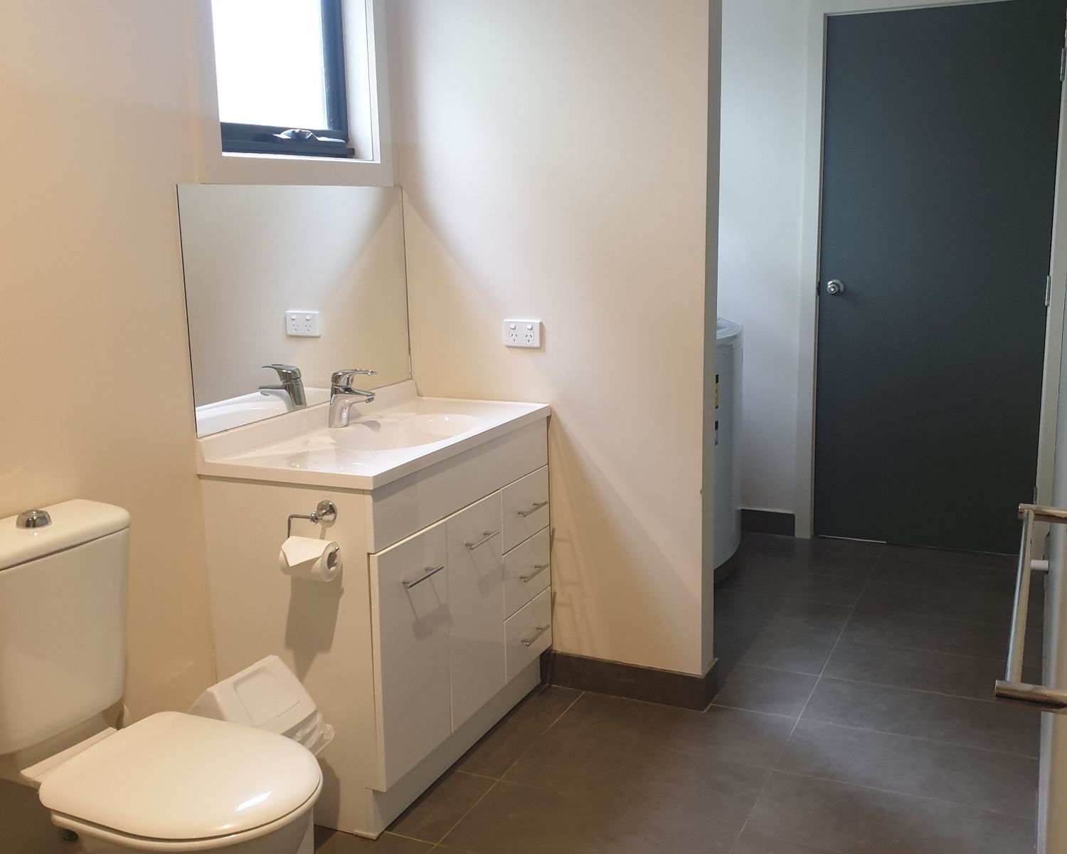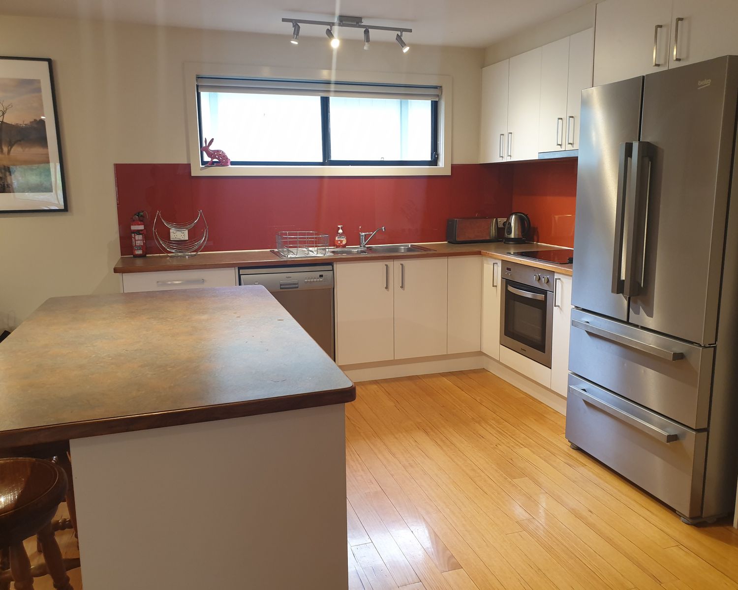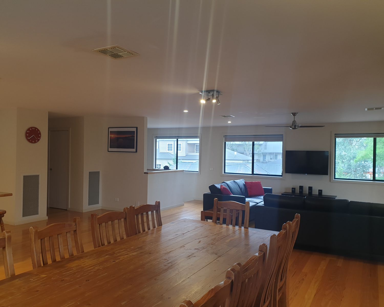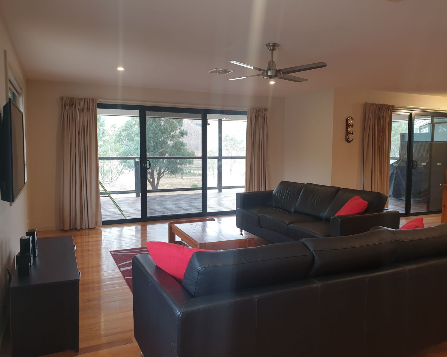 Upstairs with large open plan kitchen, living and dining opening up onto entertaining deck with lovely rural views.