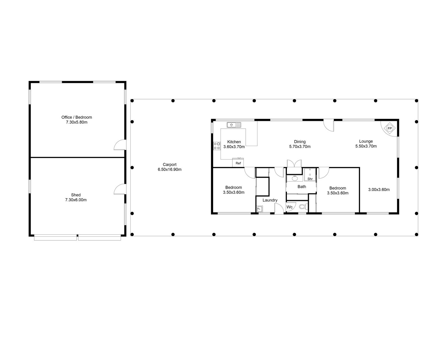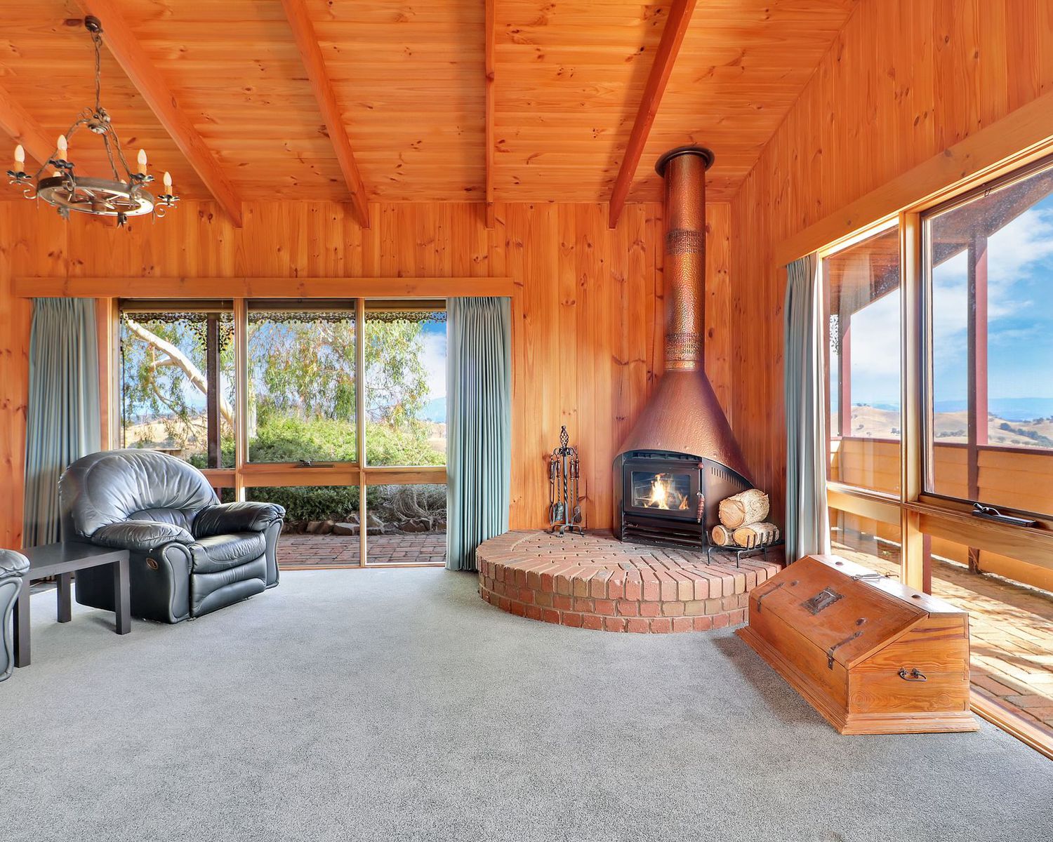 The open plan kitchen, dining, and lounge room create a warm and inviting space. Feature wood heater plus split system ensures comfort throughout the year.