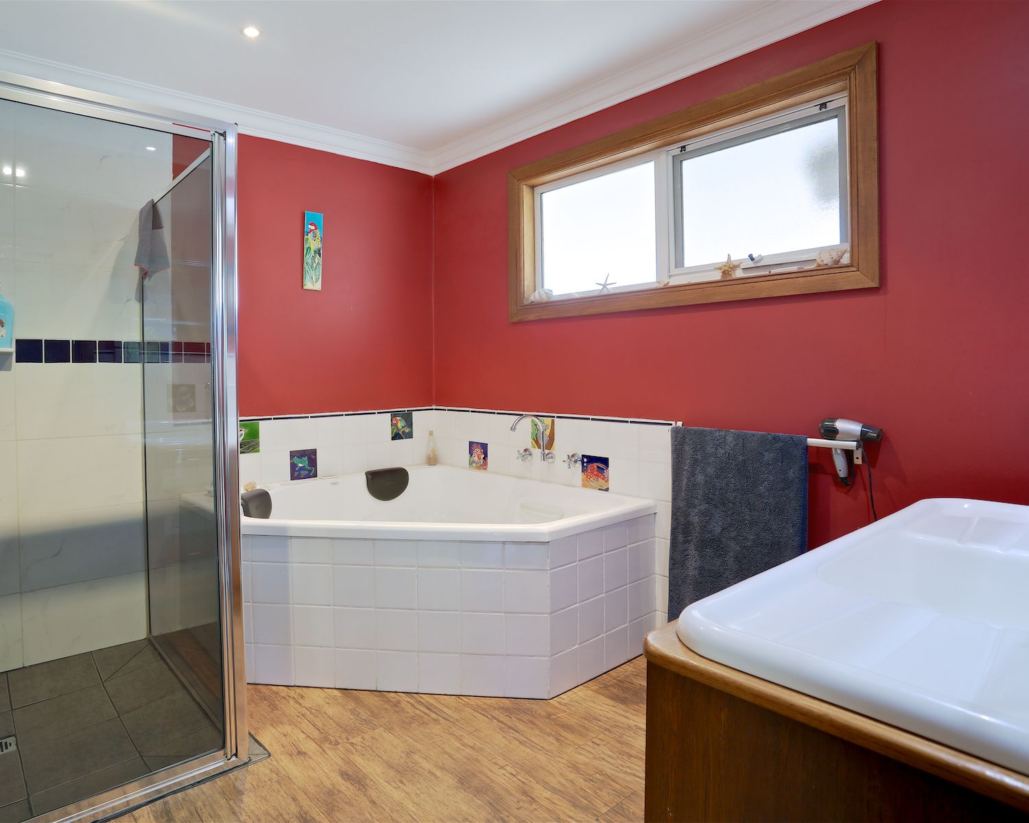 * The main bathroom has been designed with comfort in mind, and showcases a beautiful corner spa