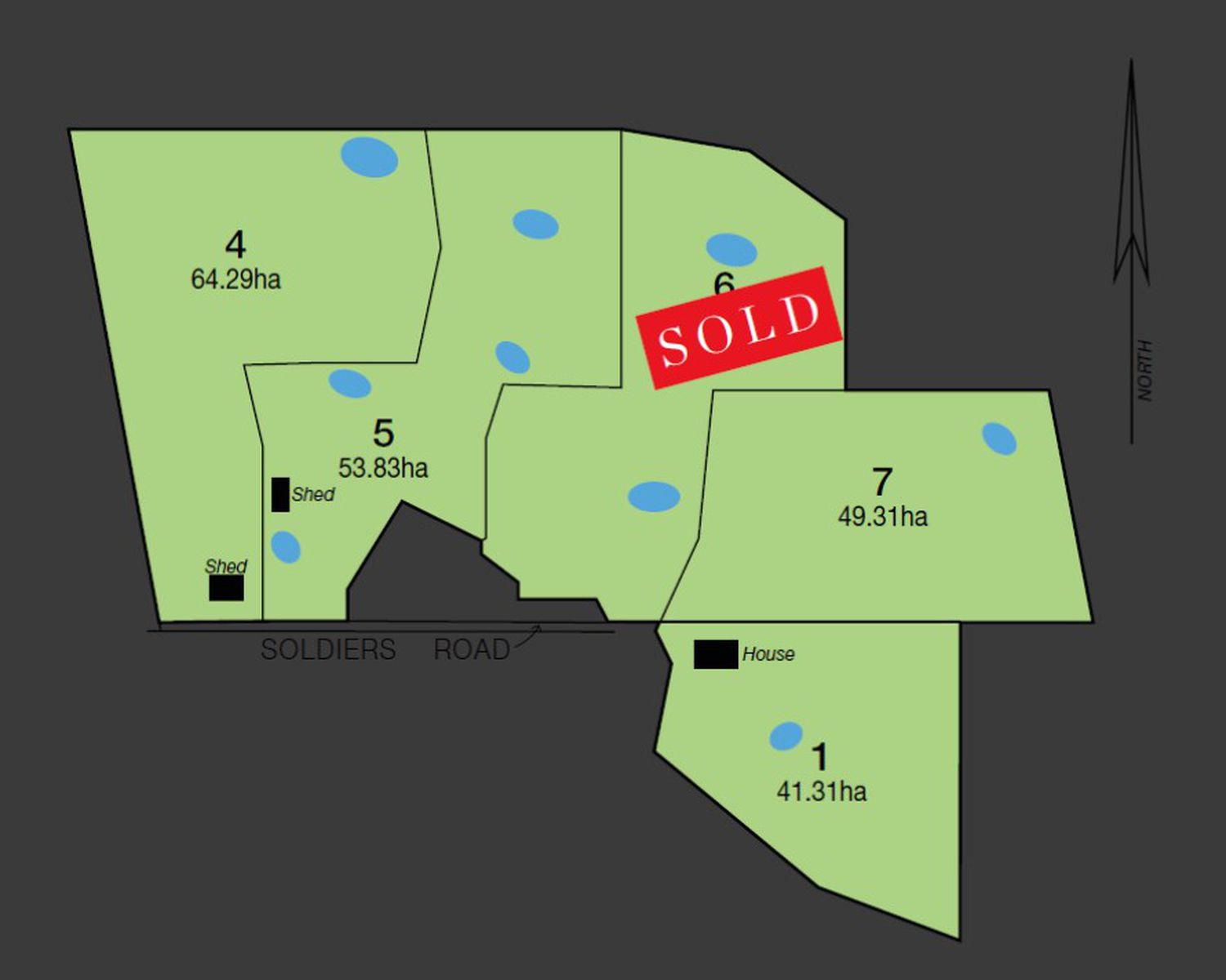 LOT 7 - A balance of undulating to gently rising country. Fully fenced, dam. Superb views from numerous house sites. Electricity available. Strong fertilizer history. SOLD