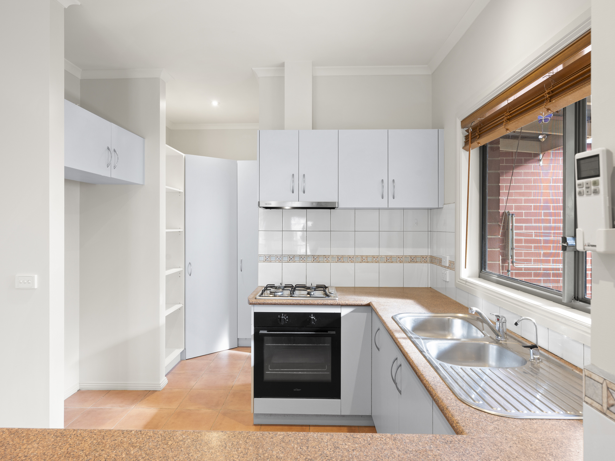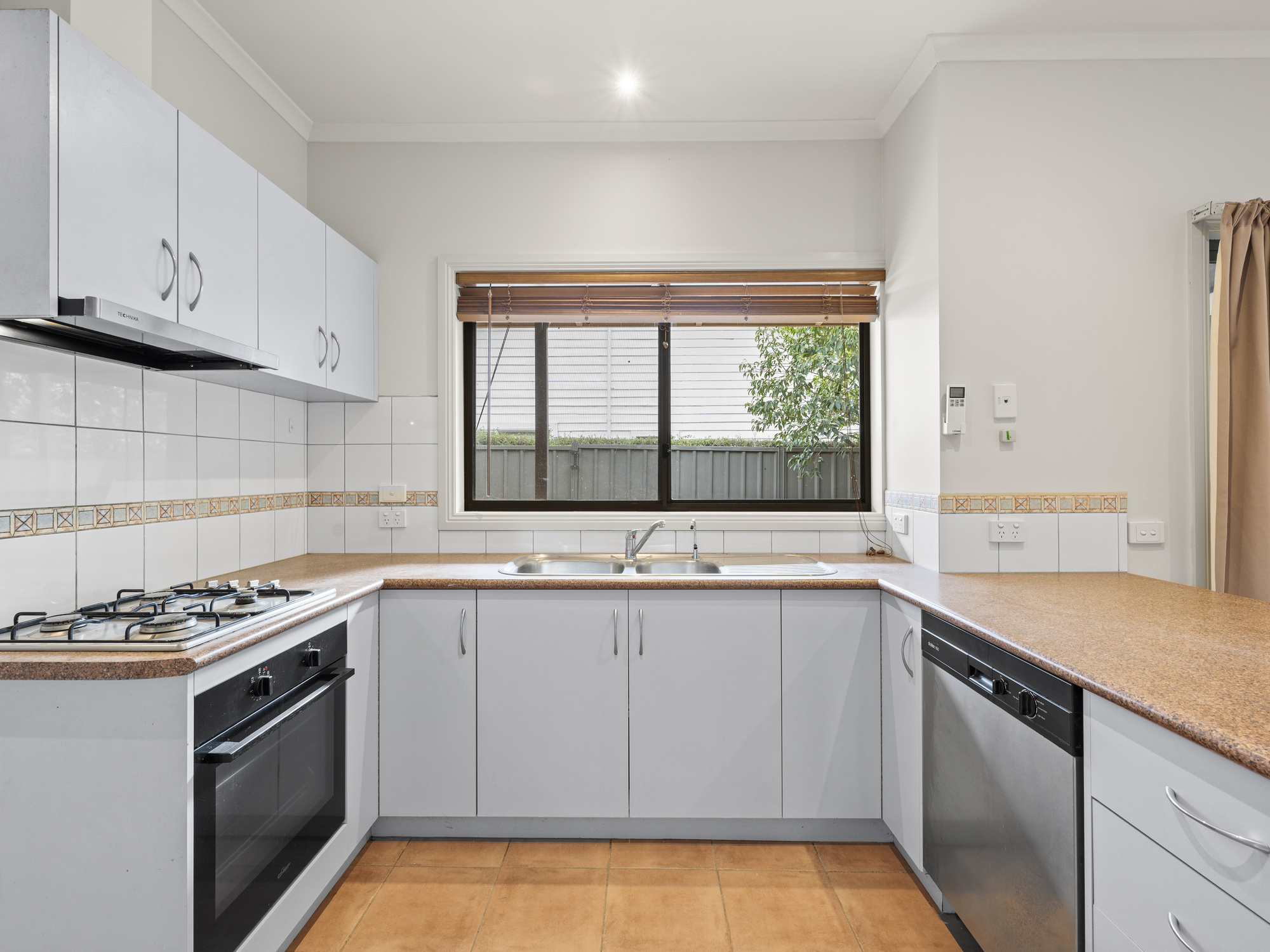 - Functional kitchen with gas cooking, pantry and dishwasher