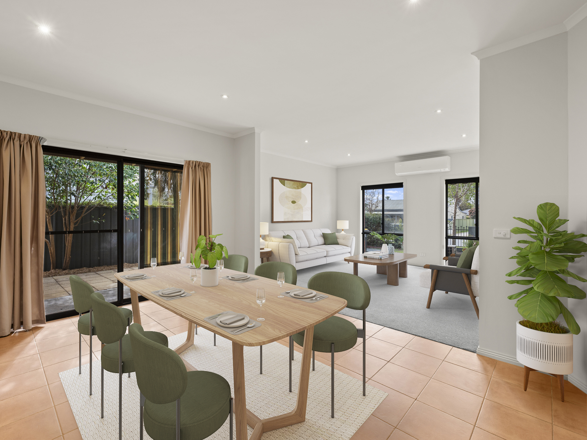 - Light filled open plan living, dining and kitchen