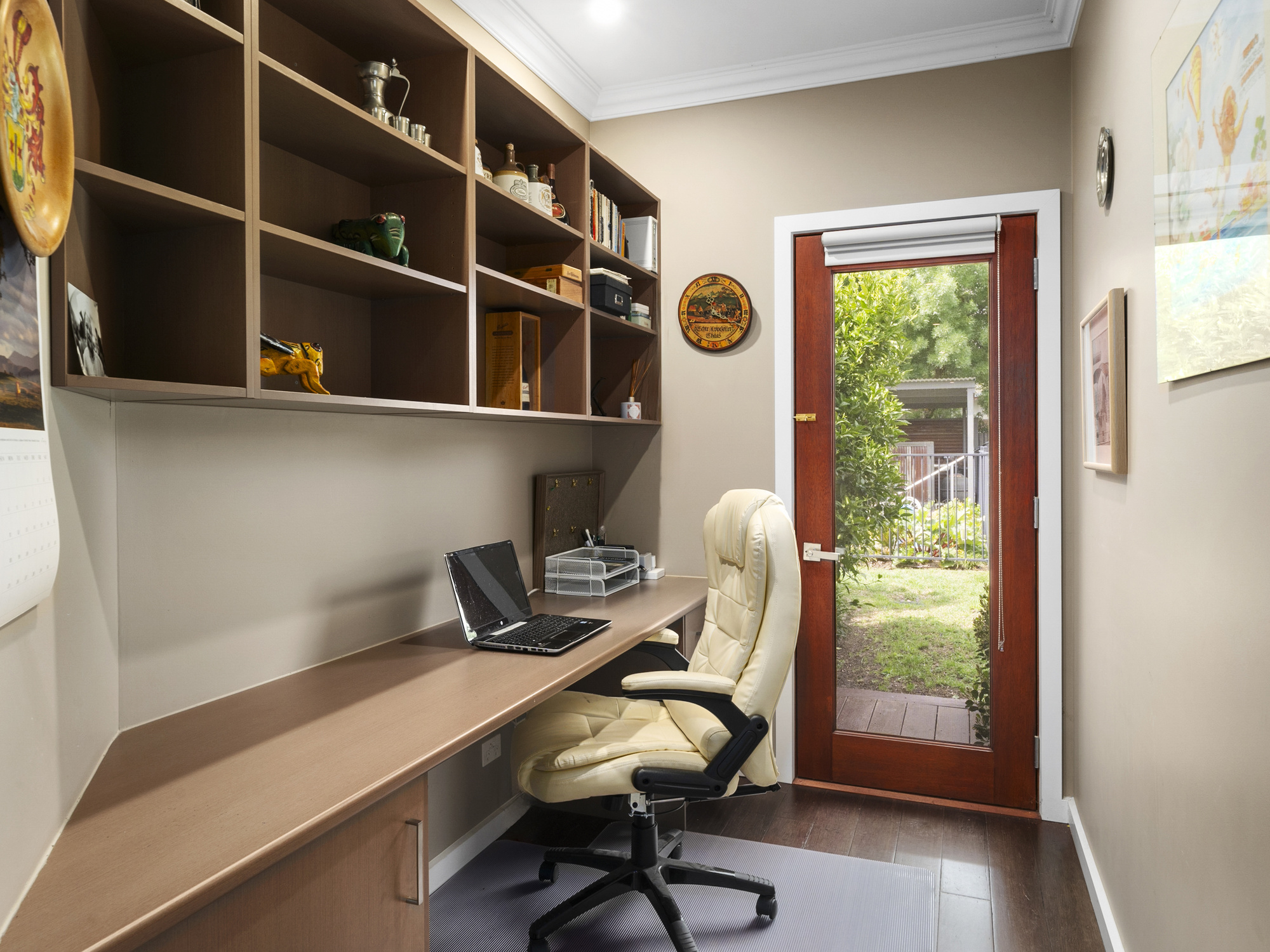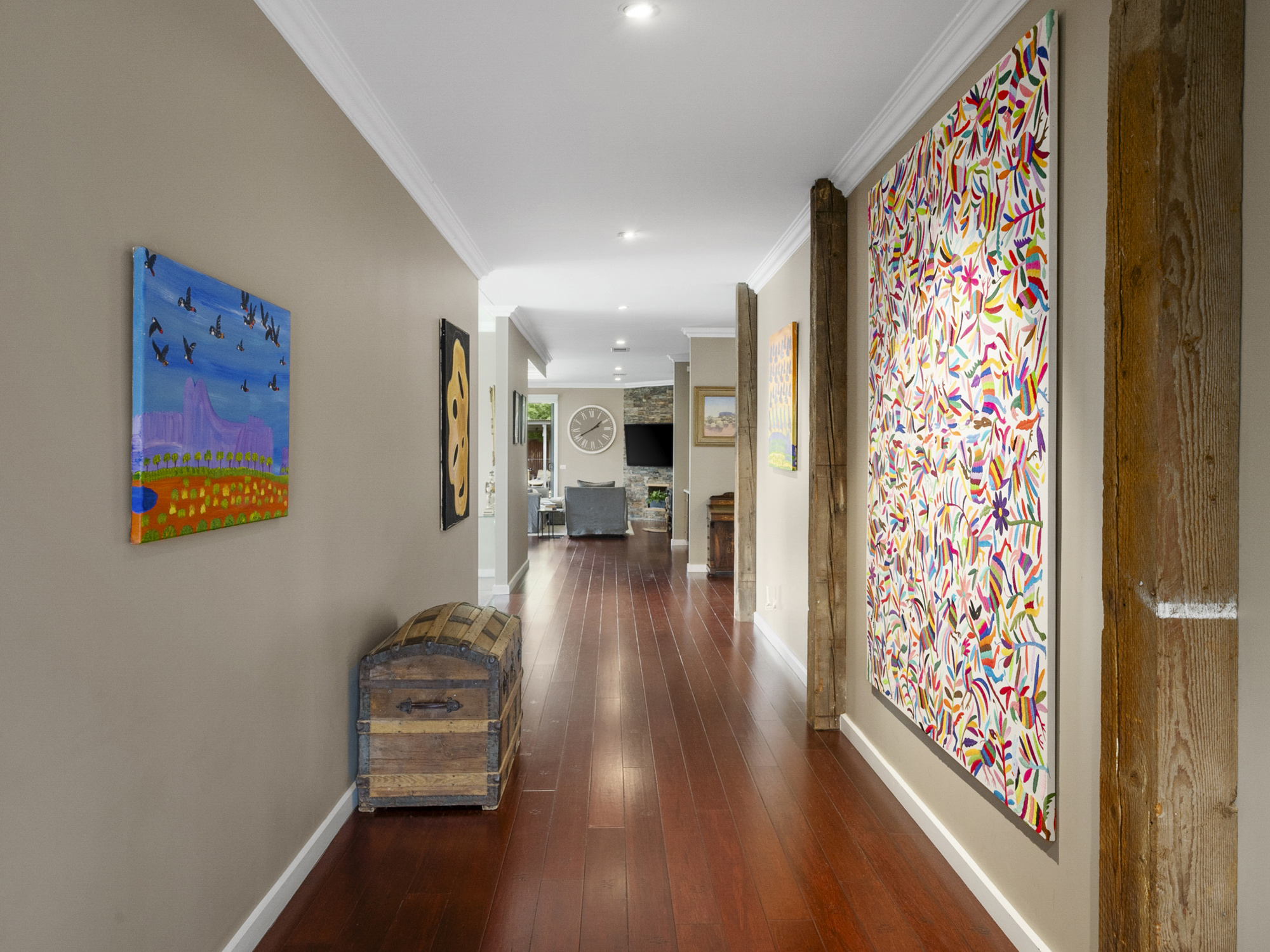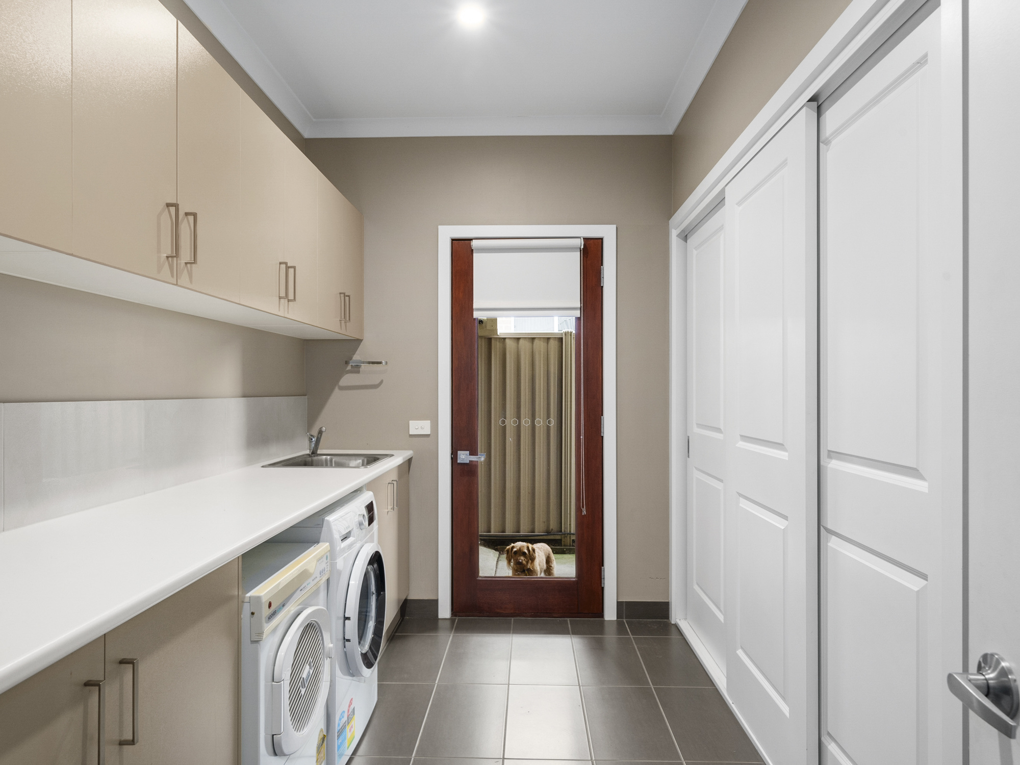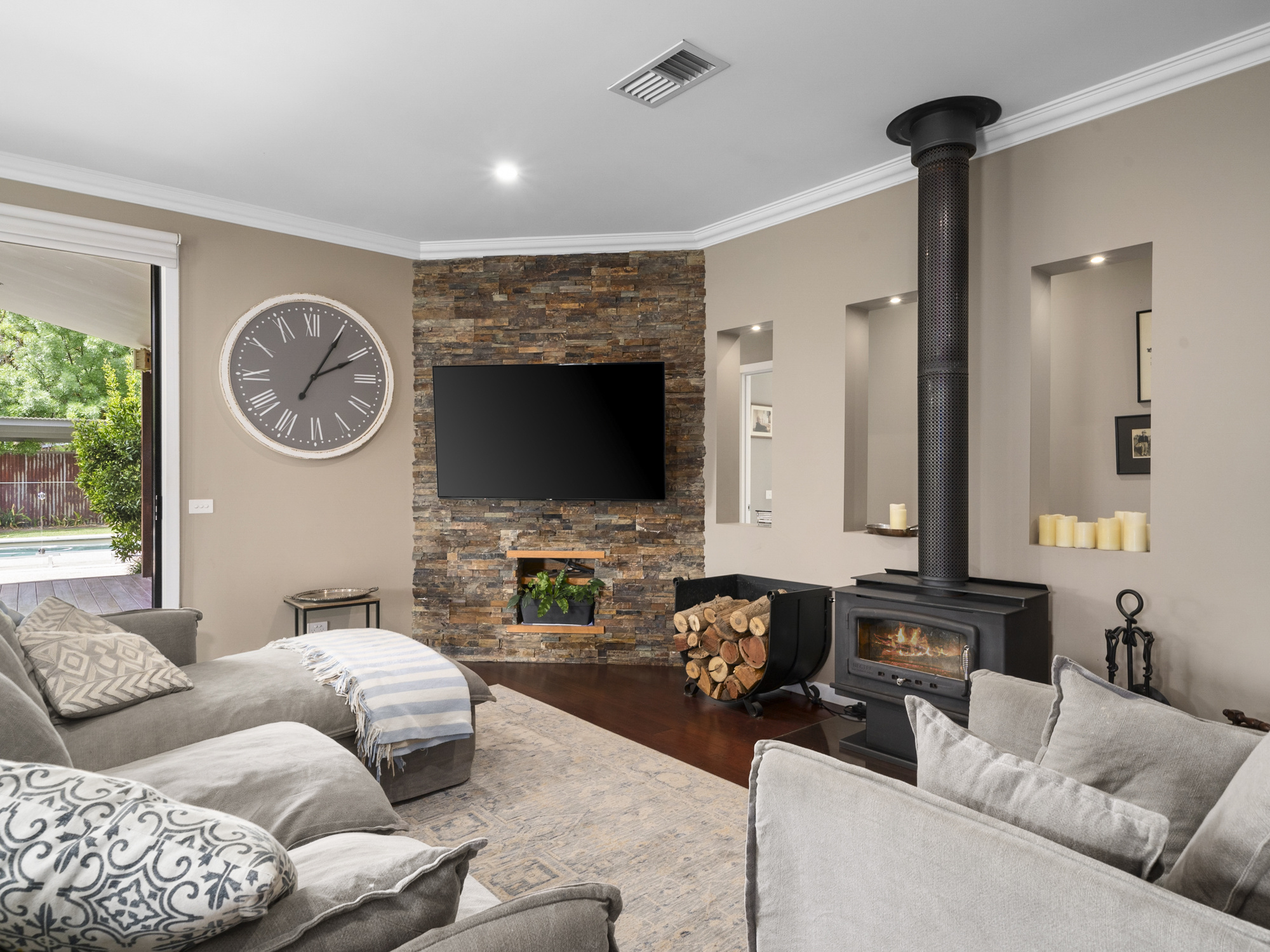 Ducted reverse-cycle air conditioning and a wood heater for year-round comfort.