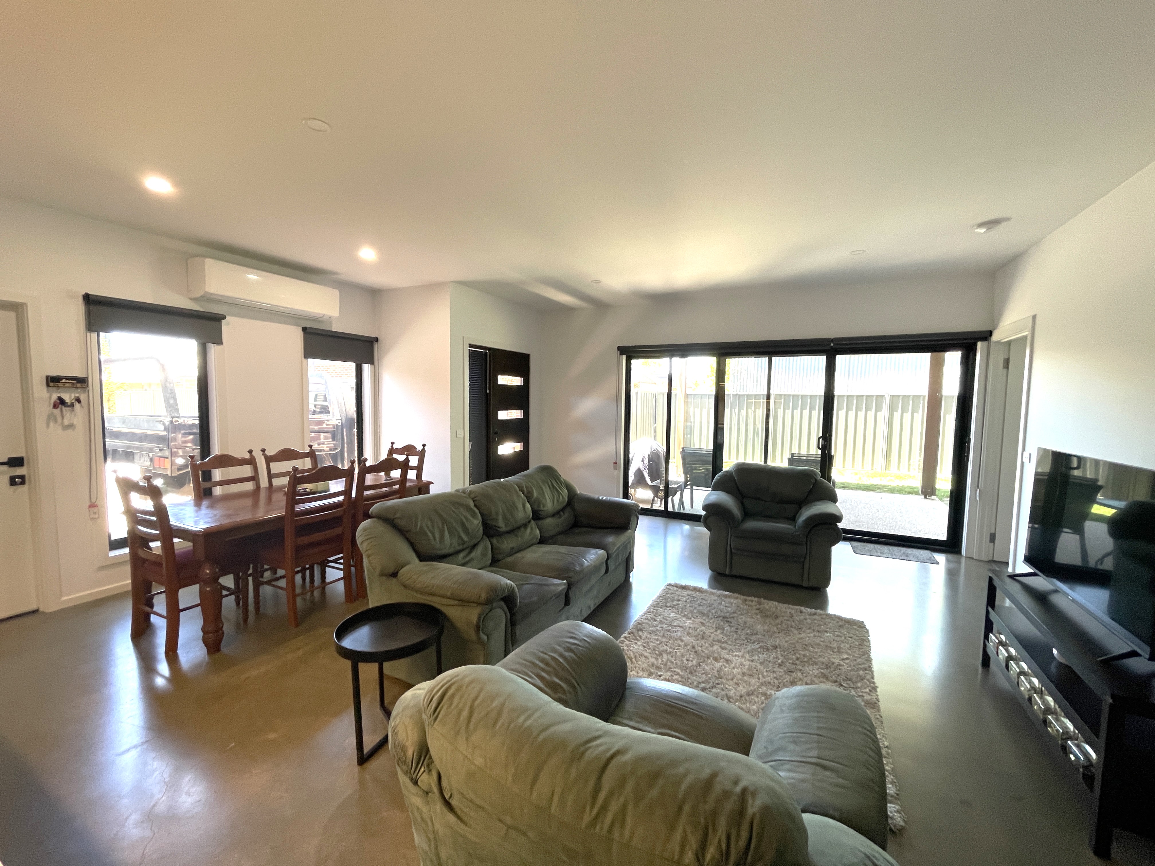 Open-plan living and dining area with split system heating and cooling for year-round comfort.