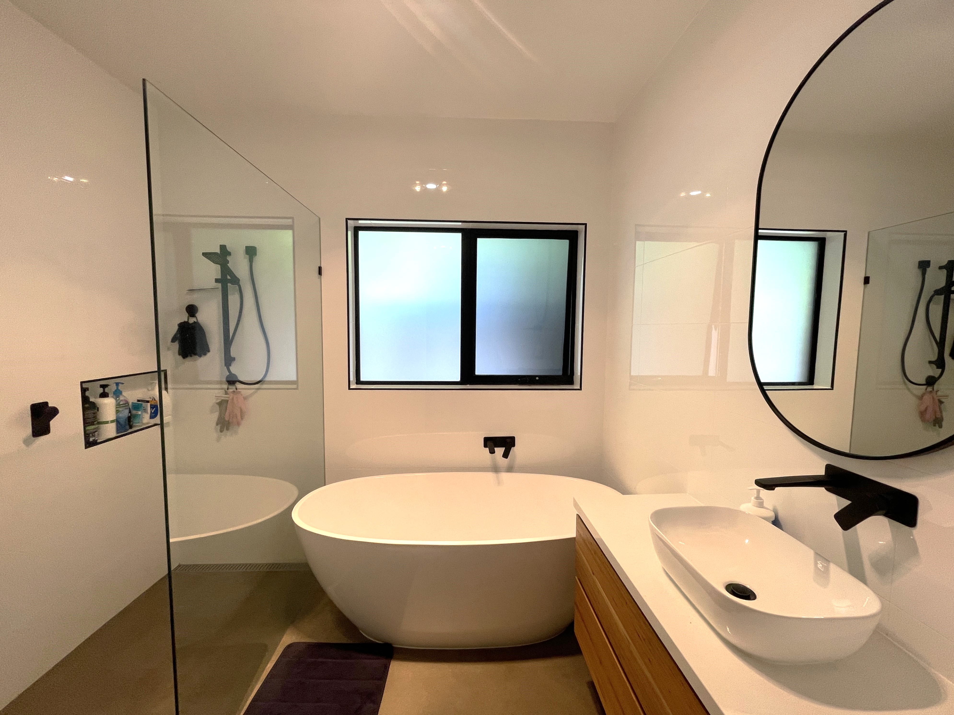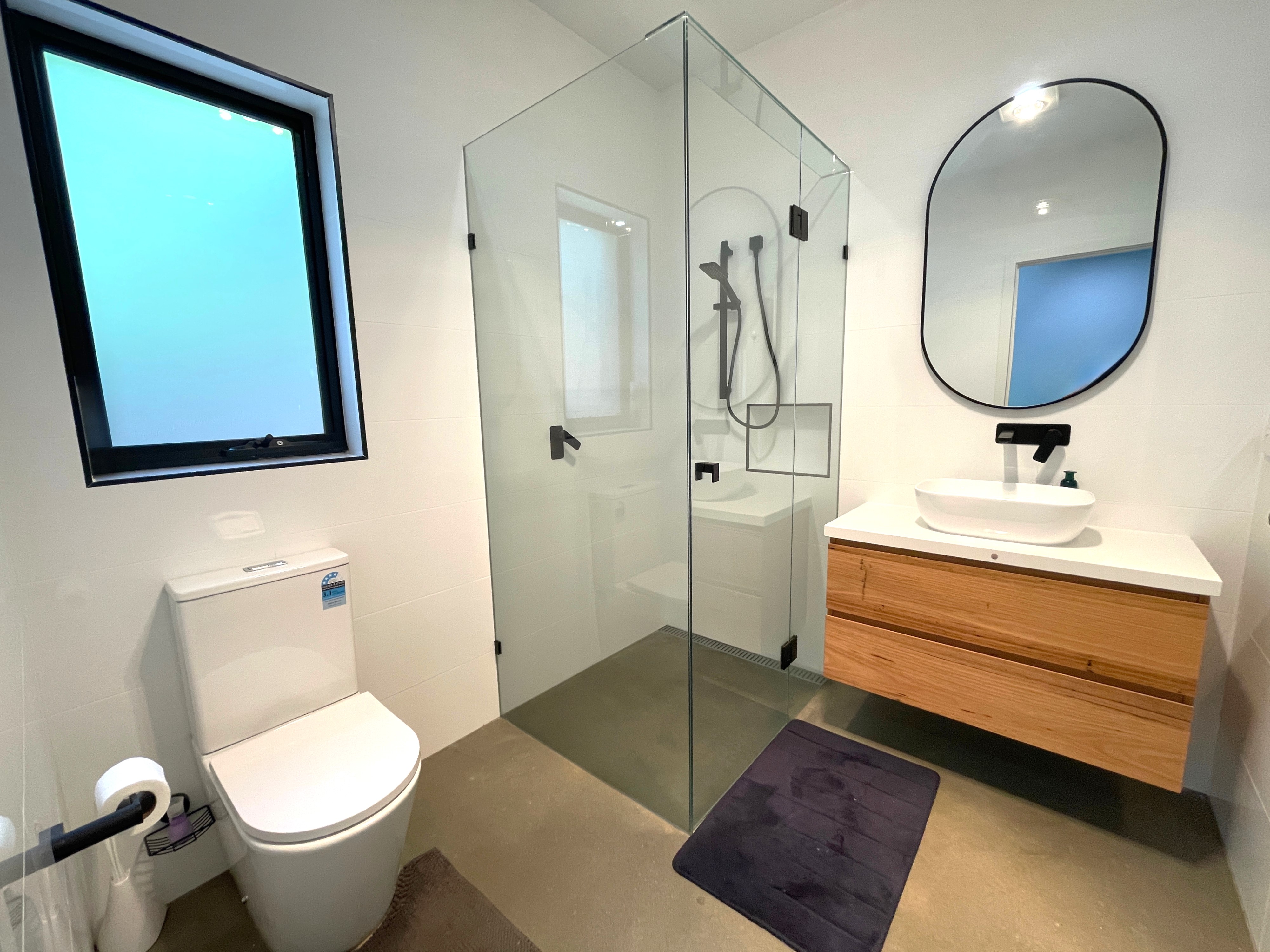 Master bedroom with a walk-in robe and a sleek modern ensuite.