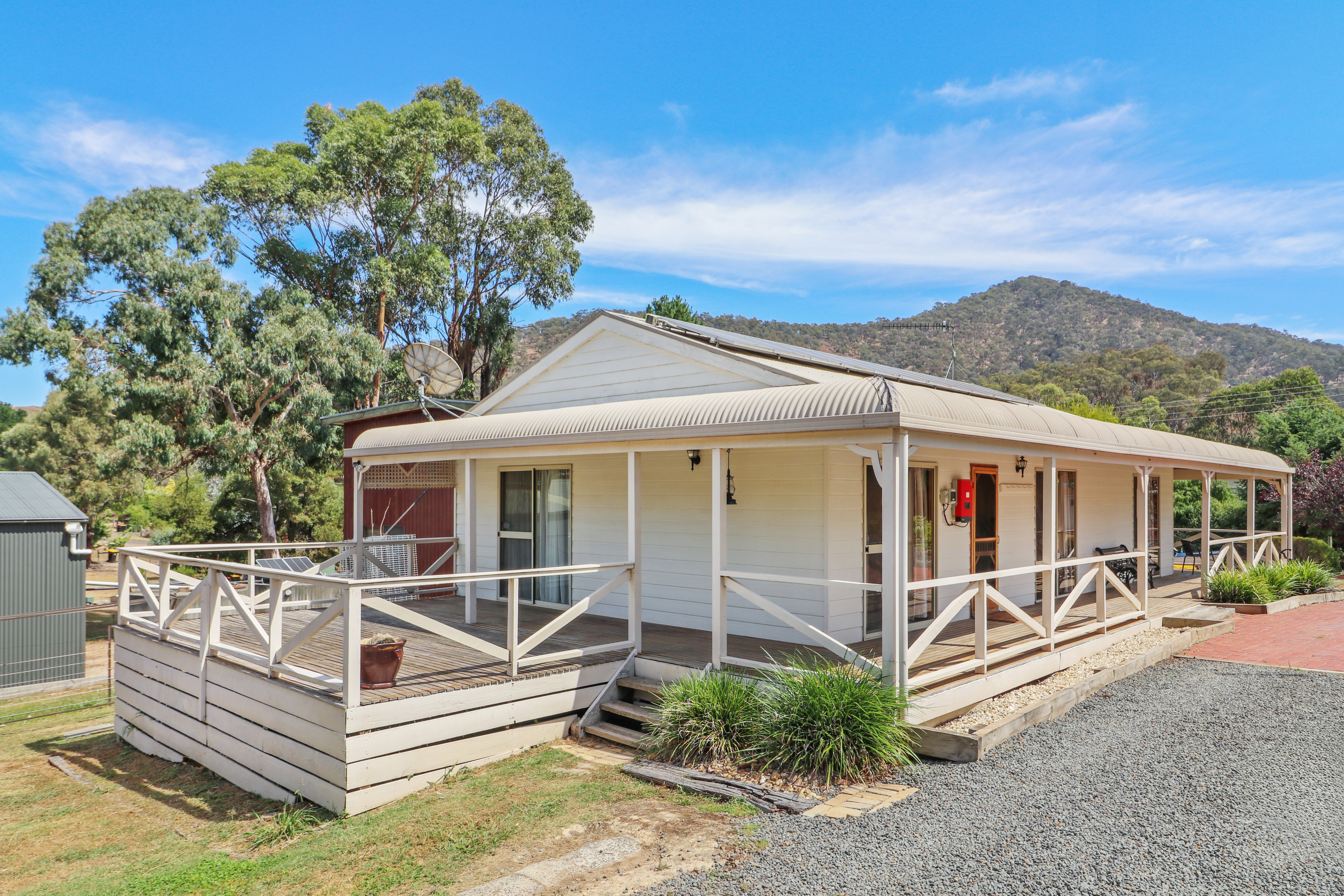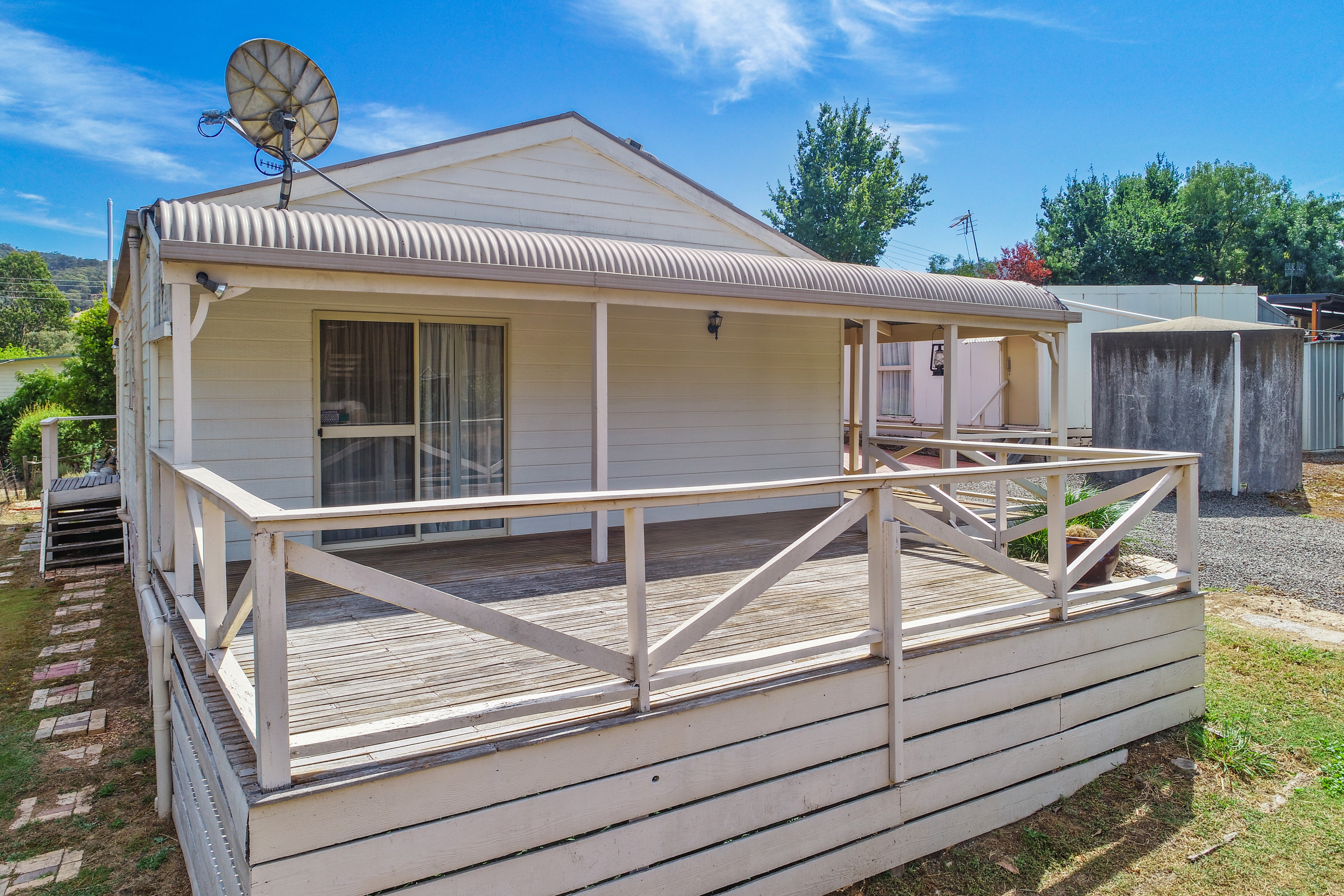 This lovely three bedroom weatherboard cottage is an ideal weekender, investment, or permanent home only moments from Lake Eildon. Walk in and be greeted by the open planned living, dining and kitchen area complete with split system and ceiling fan, ensuring comfort year round. There are also three good sized bedrooms, a centrally located bathroom, separate WC and laundry. The pine wall panelling and timber ceiling throughout the house has been meticulously maintained, and whilst we love it as is, there are plenty of options to put your own stamp on this home.
