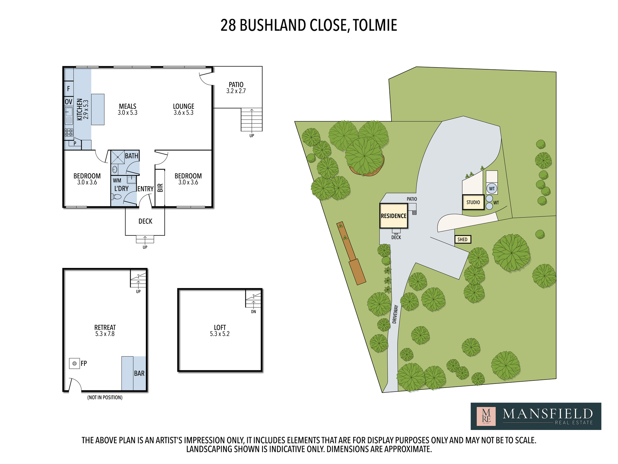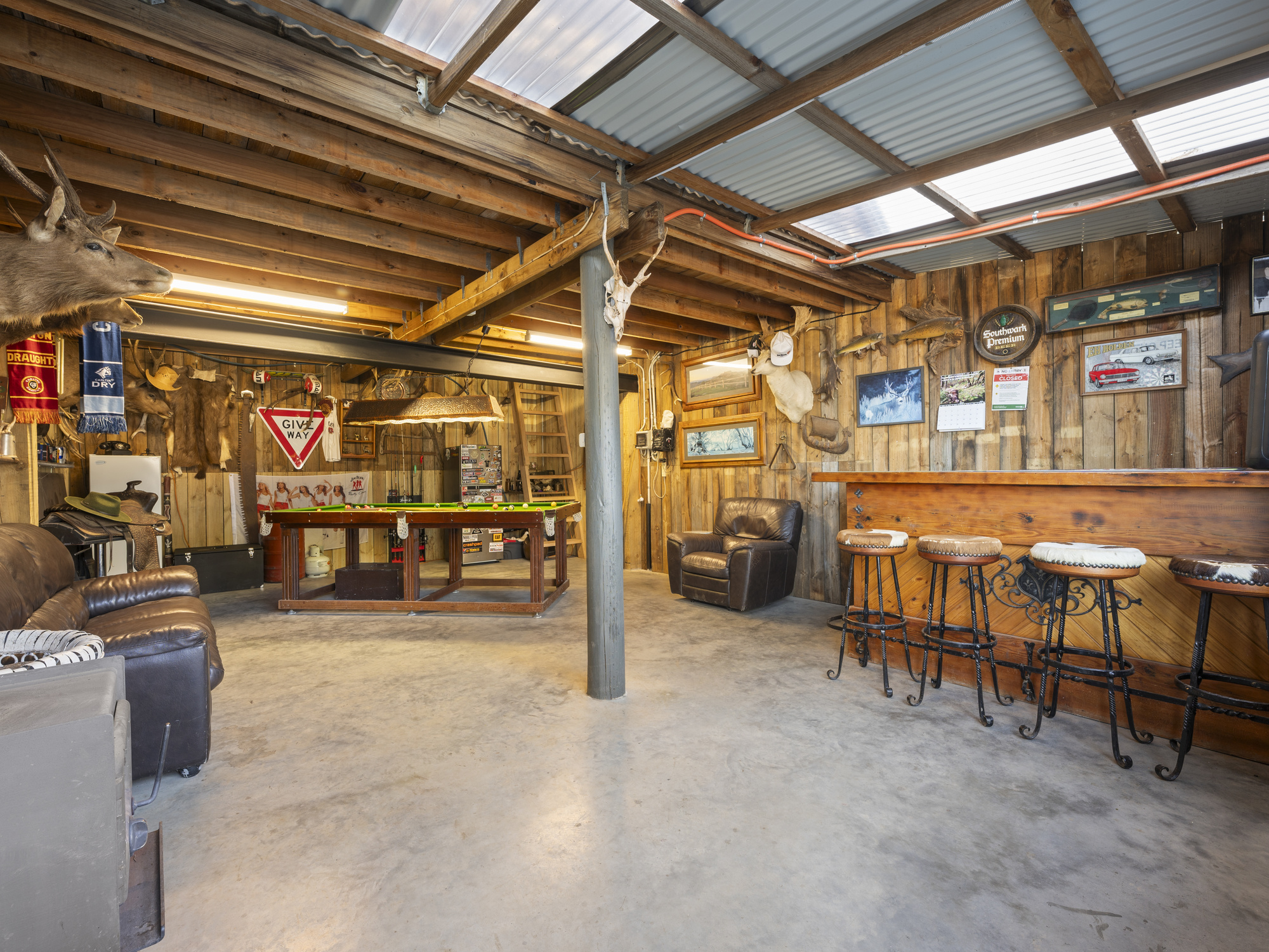 * Man-cave style shed with power, fireplace & loft