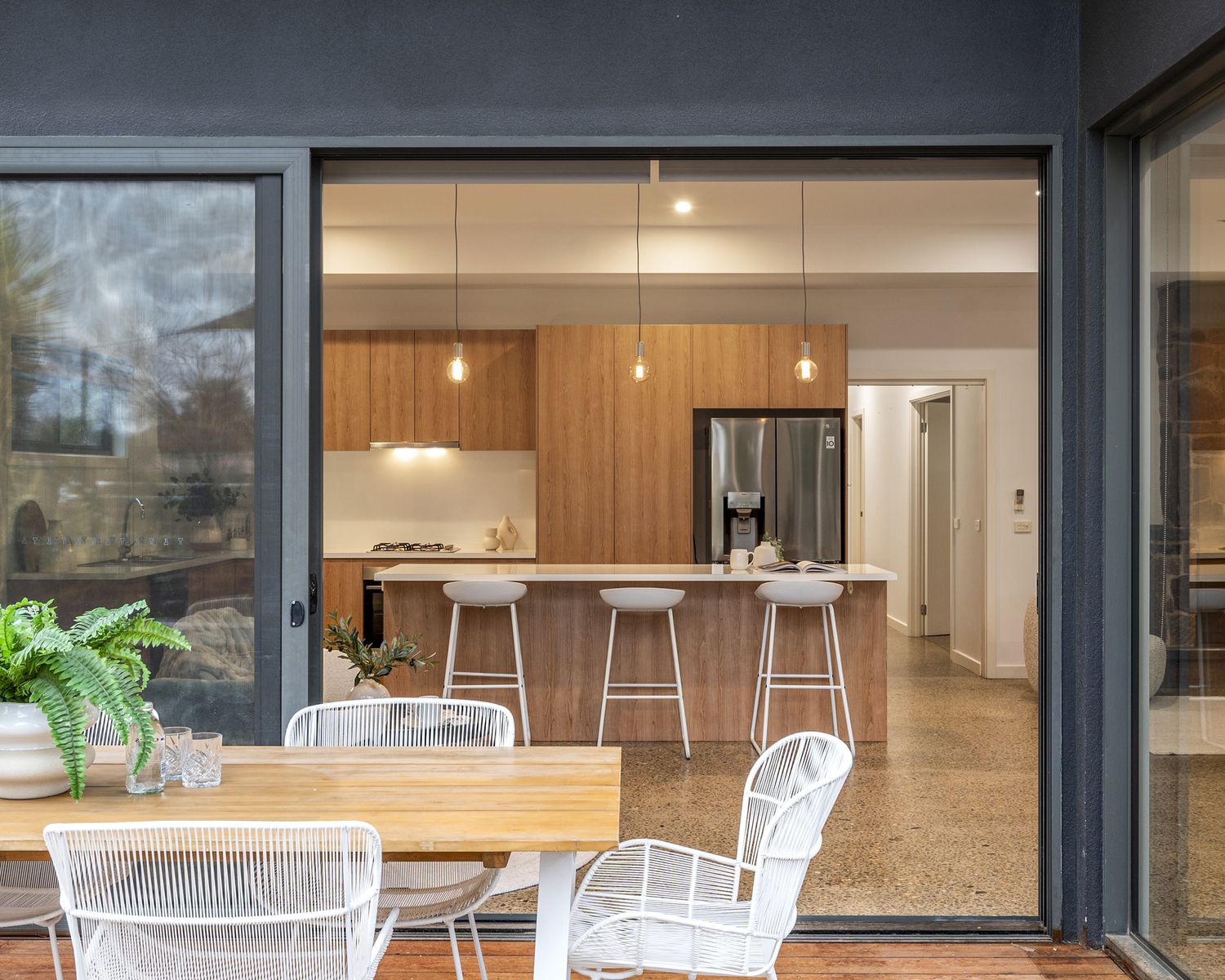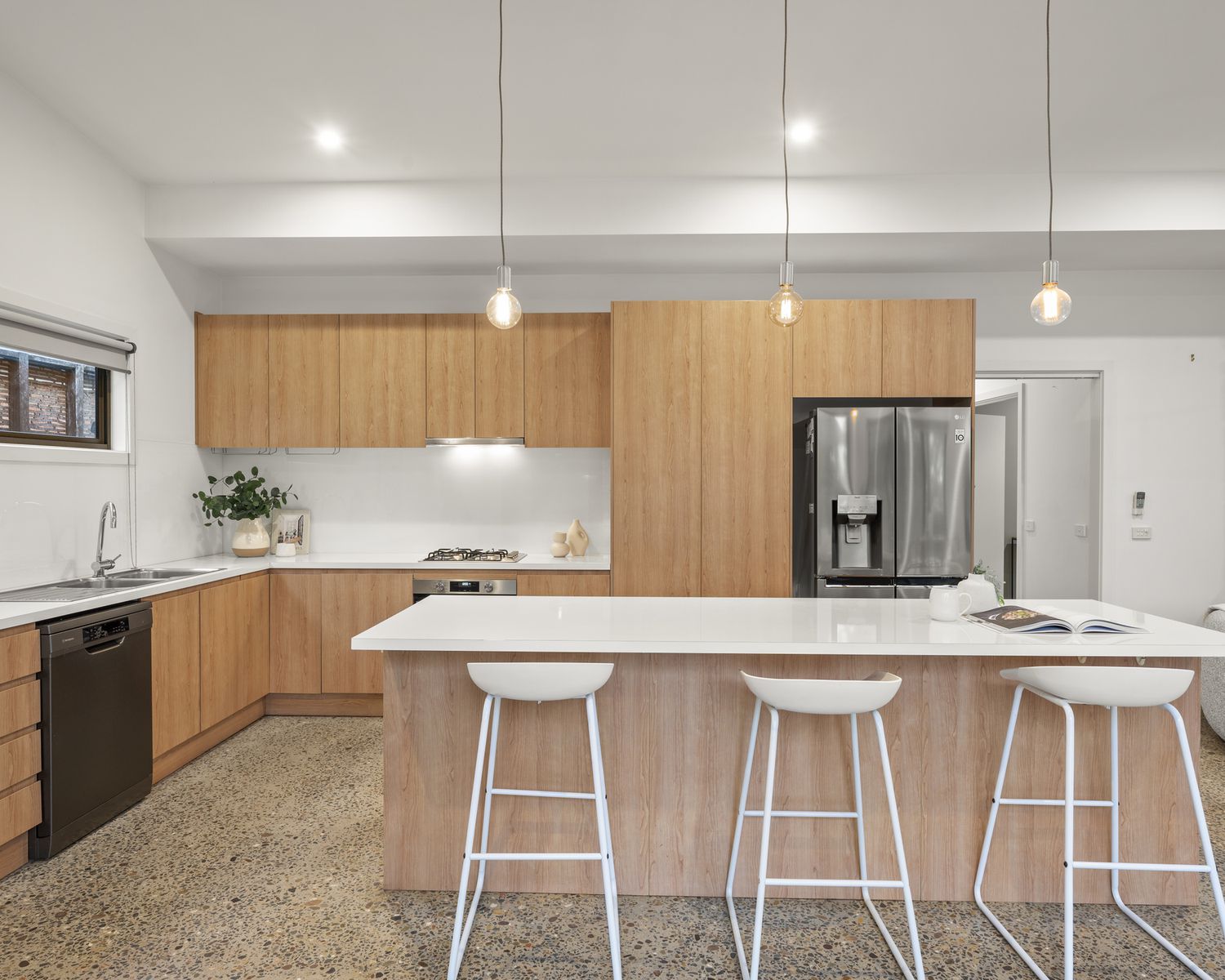 The light-filled open-plan kitchen, living and dining area is the true heart of the home. From the moment you walk in, you’ll be drawn to the warmth of the space, the quality of the finishes, and the effortless indoor-outdoor connection. Large sliding doors open to a private rear deck, perfect for entertaining or simply relaxing, with a leafy and low-maintenance backyard beyond.