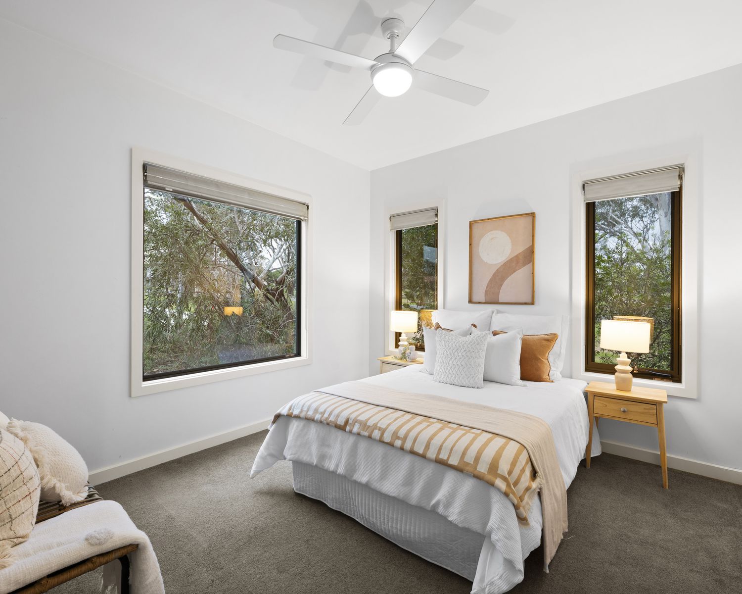 - Two additional bedrooms with built-in robes, ceiling fans and soft carpeting
