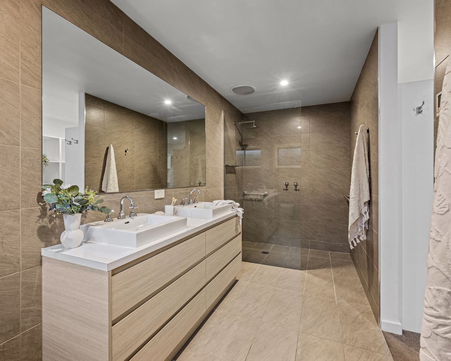 - Spacious master suite with new split system, custom walk-through robes, and ensuite boasting underfloor heating, double vanity and double shower