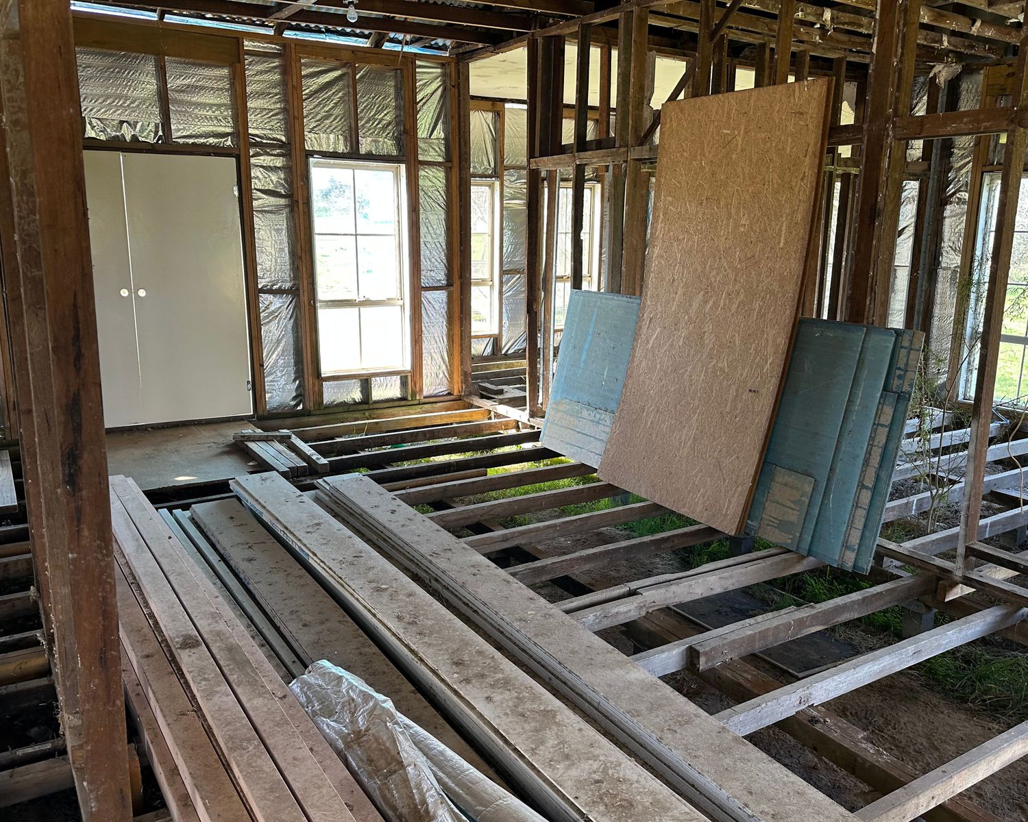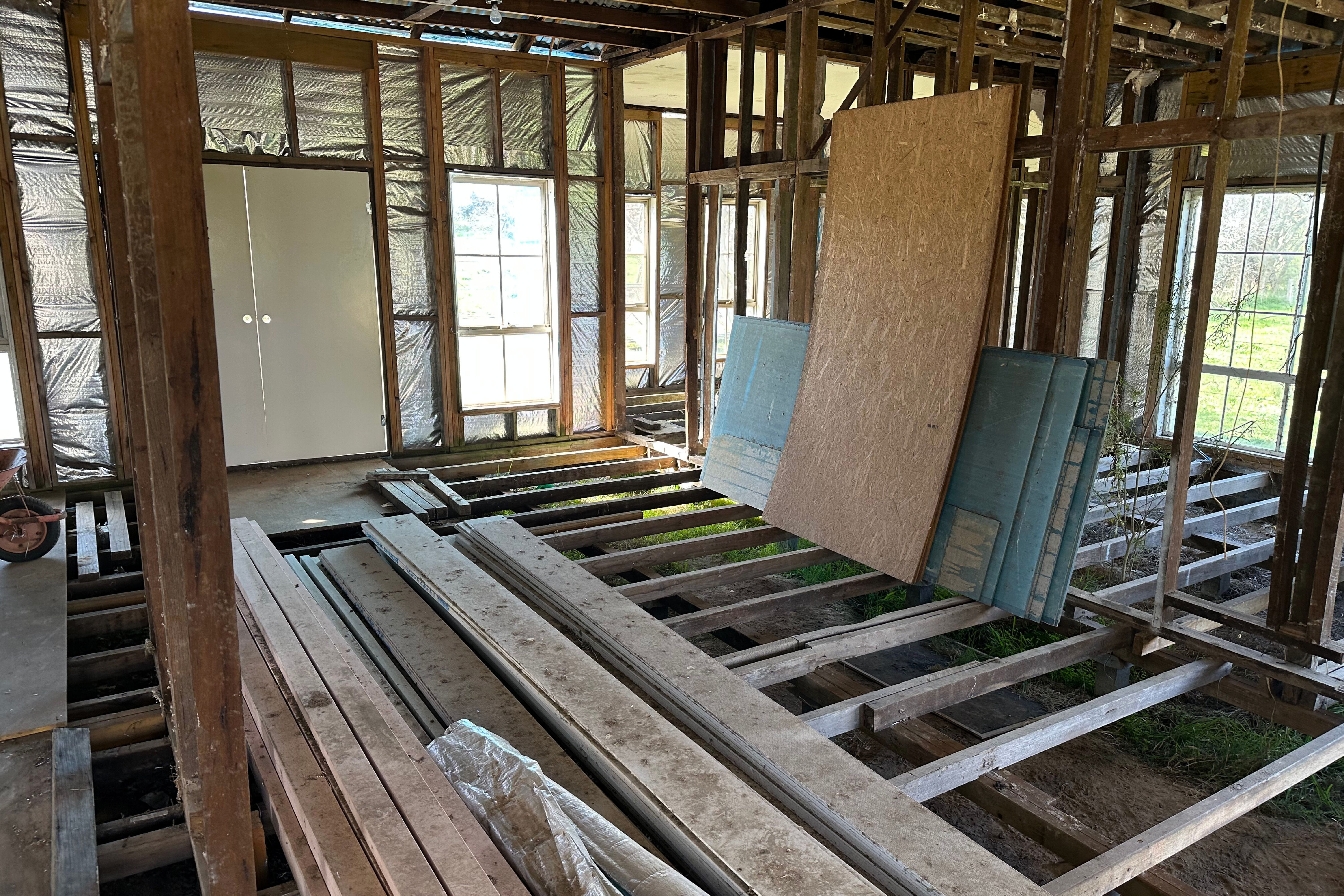 The home is essentially a frame, and provides the perfect canvas for someone ready to take on a rewarding project. Original brick features remain in place, including the chimney, giving a nod to the home’s character and history. Some improvements have already been made, with concrete stumps providing stability and new aluminium windows installed, ensuring a solid foundation and a head start for the next stage of construction. The current floorplan is set up as a 3 bedroom/2 bathroom home, but the lucky new owner will be able to finish it to their required specifications (subject to council approval).