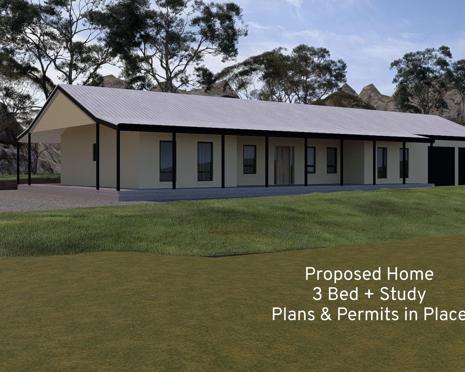 * Current planning and building permit in place for a 3 bedroom plus study, 2 bathroom home plus shed