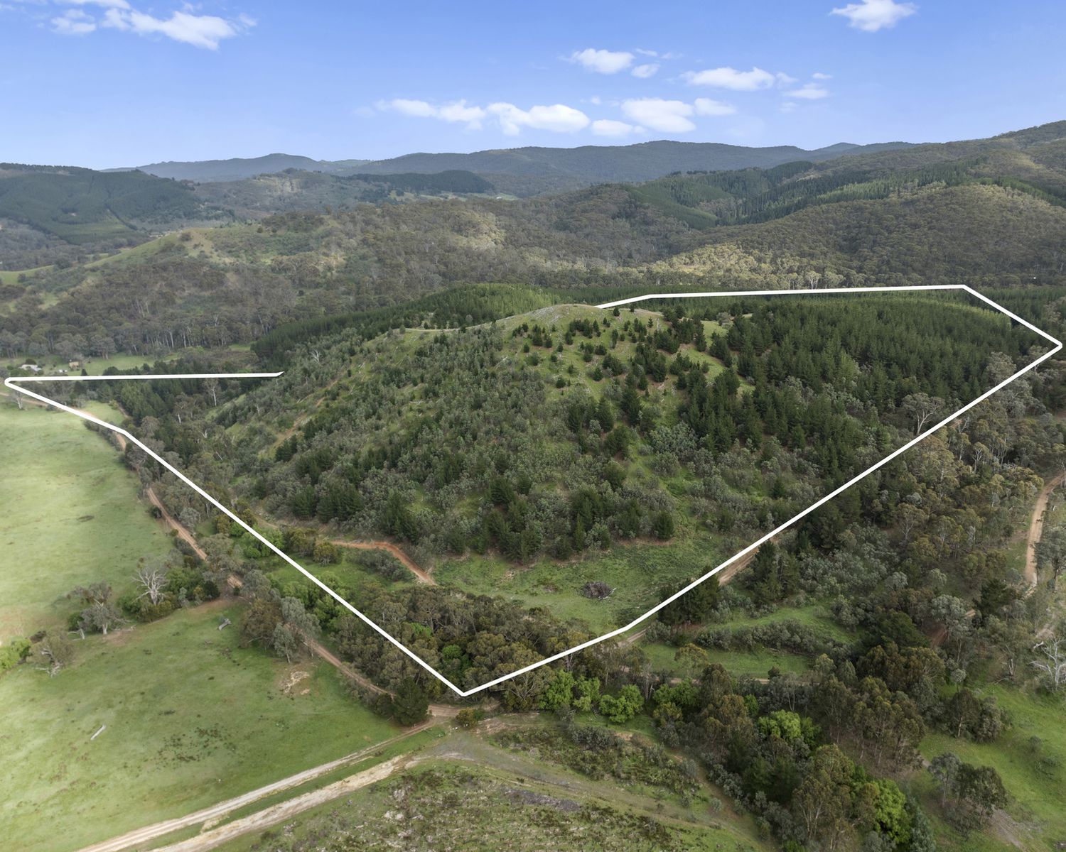 A mixture of pine plantation and native bushland forms a diverse landscape of rolling hills and open clearings, criss-crossed by well-defined internal tracks that make exploring easy. A large dam and seasonal creek add to the property’s appeal, while the nearby State Forest and Lake Eildon open up endless recreational options — from bushwalking and trail riding to fishing and boating weekends. Though with this much on offer we doubt you will ever want to leave.