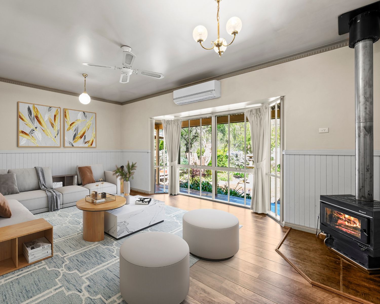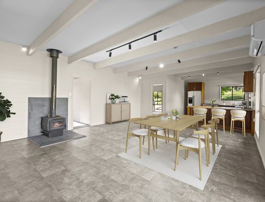 The spacious living area features both reverse-cycle air conditioning and a wood fire, creating the ideal setting for every season. The well-equipped kitchen offers a breakfast bar, abundant storage and a welcoming dining space that naturally draws people together. A central bathroom with bathtub, separate toilet and laundry complete the practical layout.