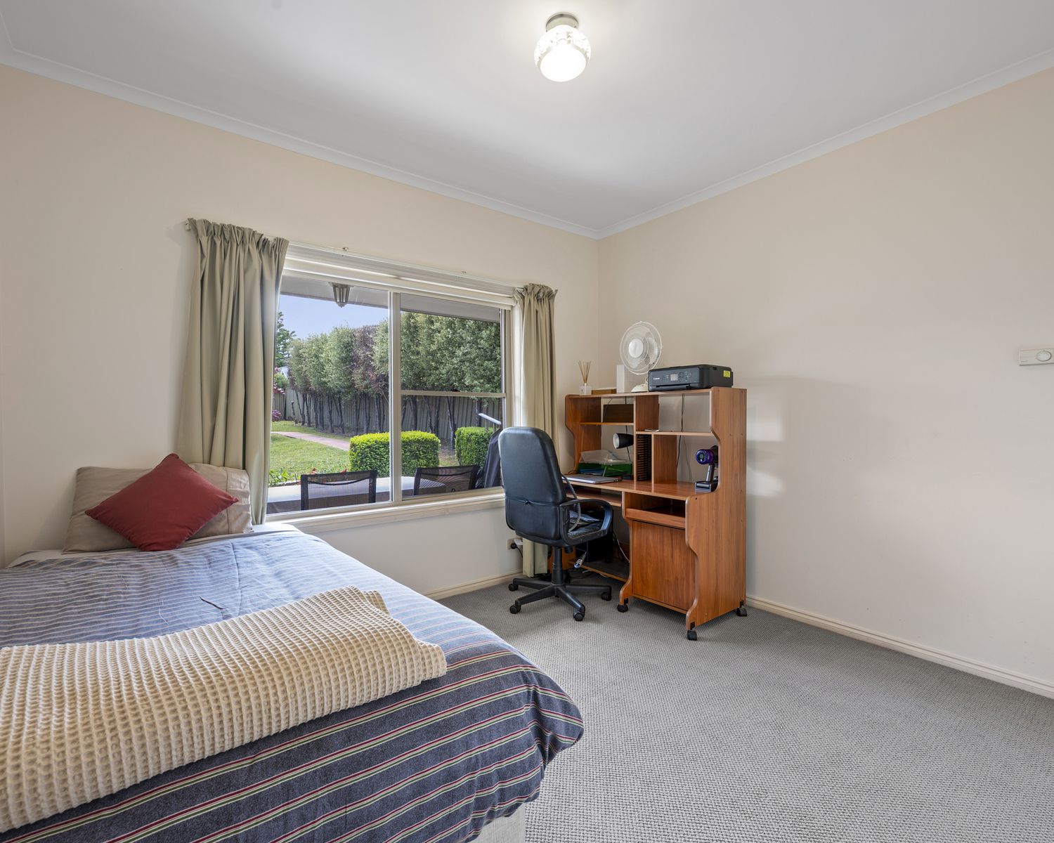 Outside, the large, level block provides secure space for children or pets, along with a powered shed and easy-care gardens—ideal for relaxed country living.