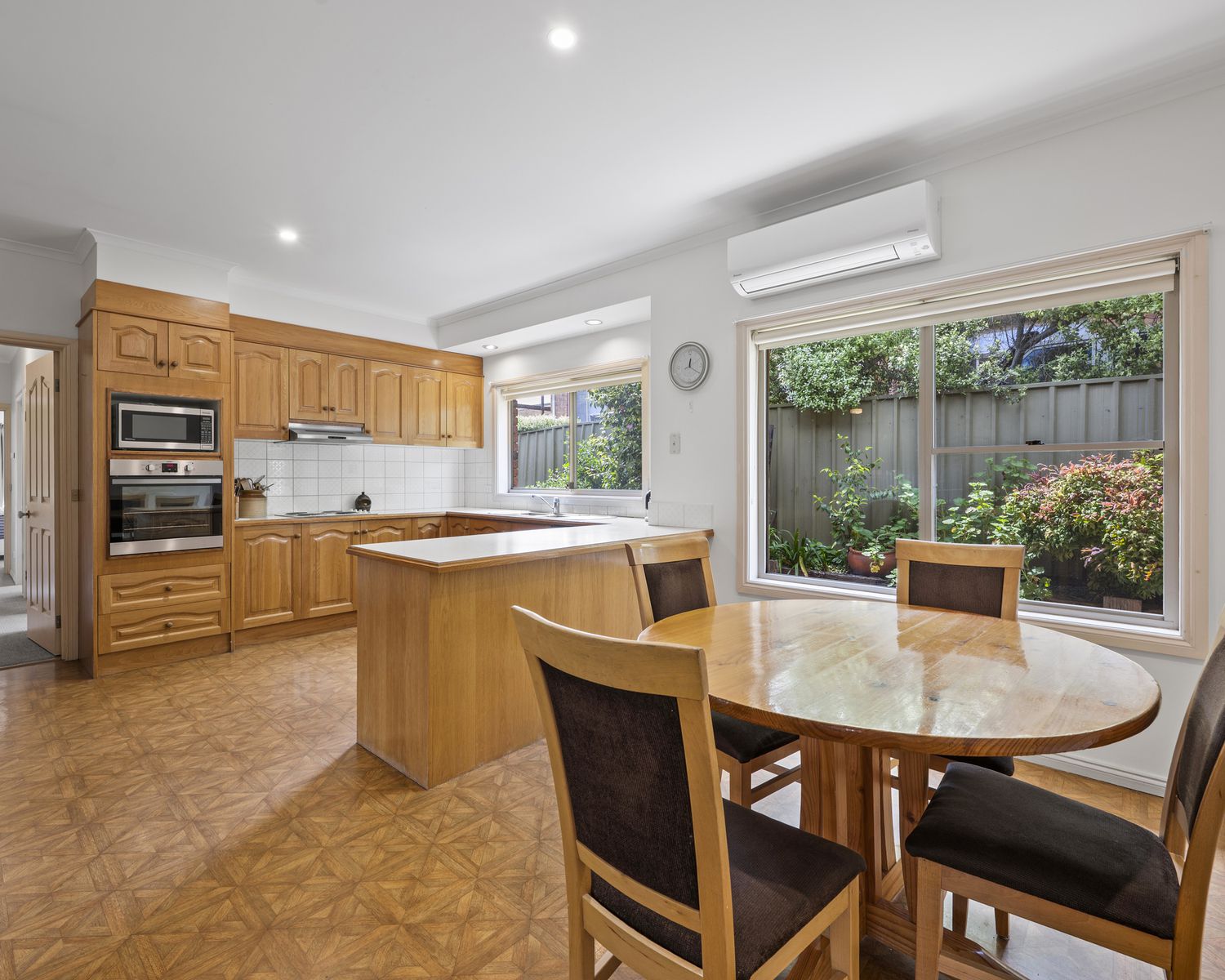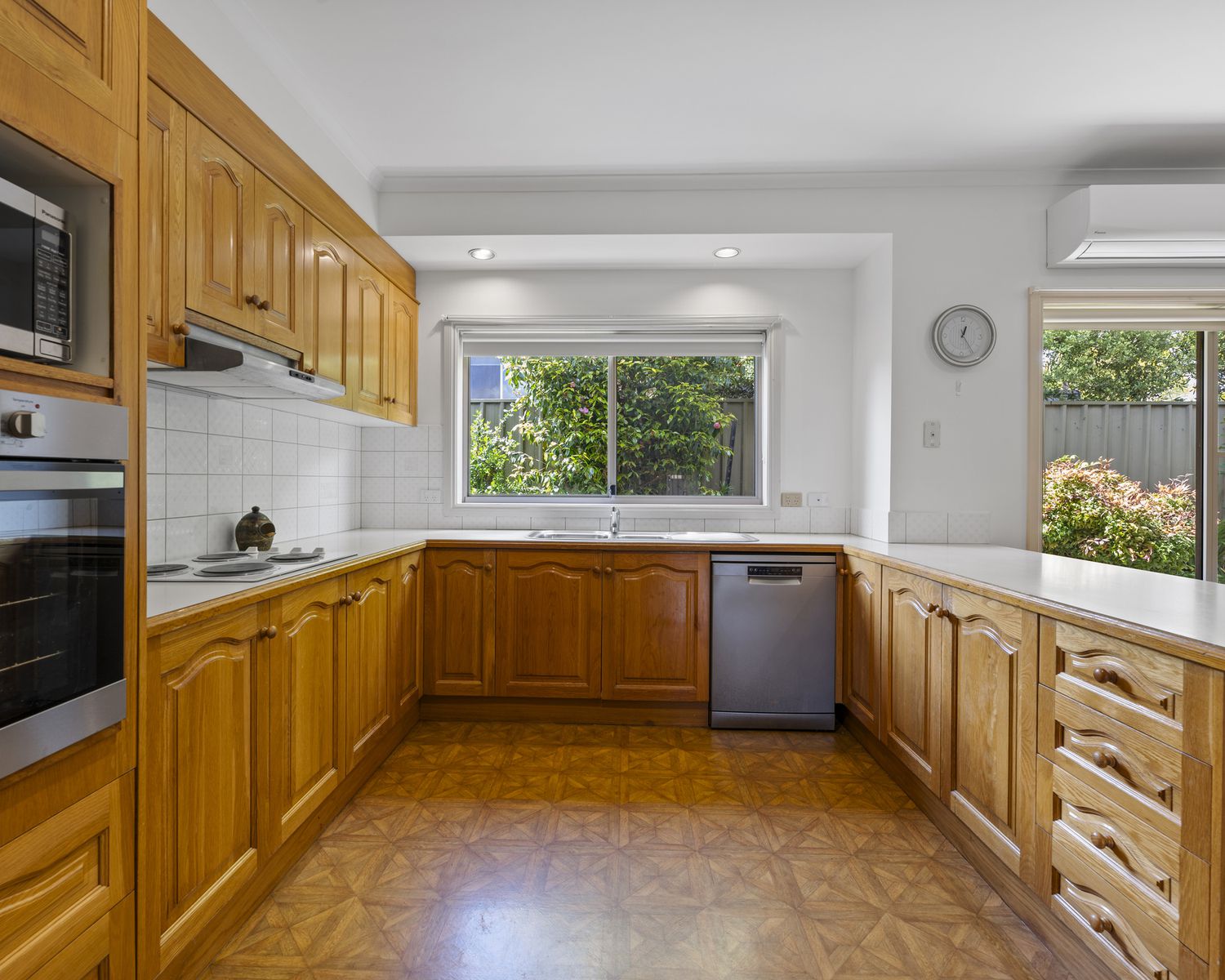 The kitchen is neat and functional, offering electric cooking, a dishwasher, and ample storage—with plenty of scope to modernise in the future if desired.