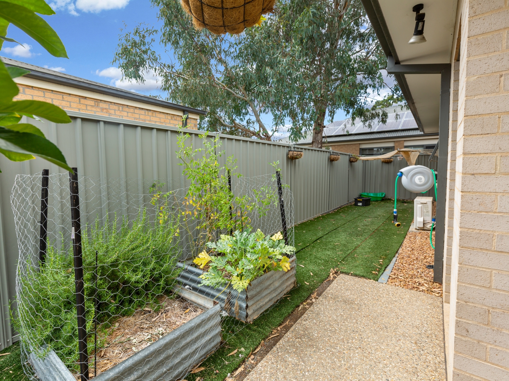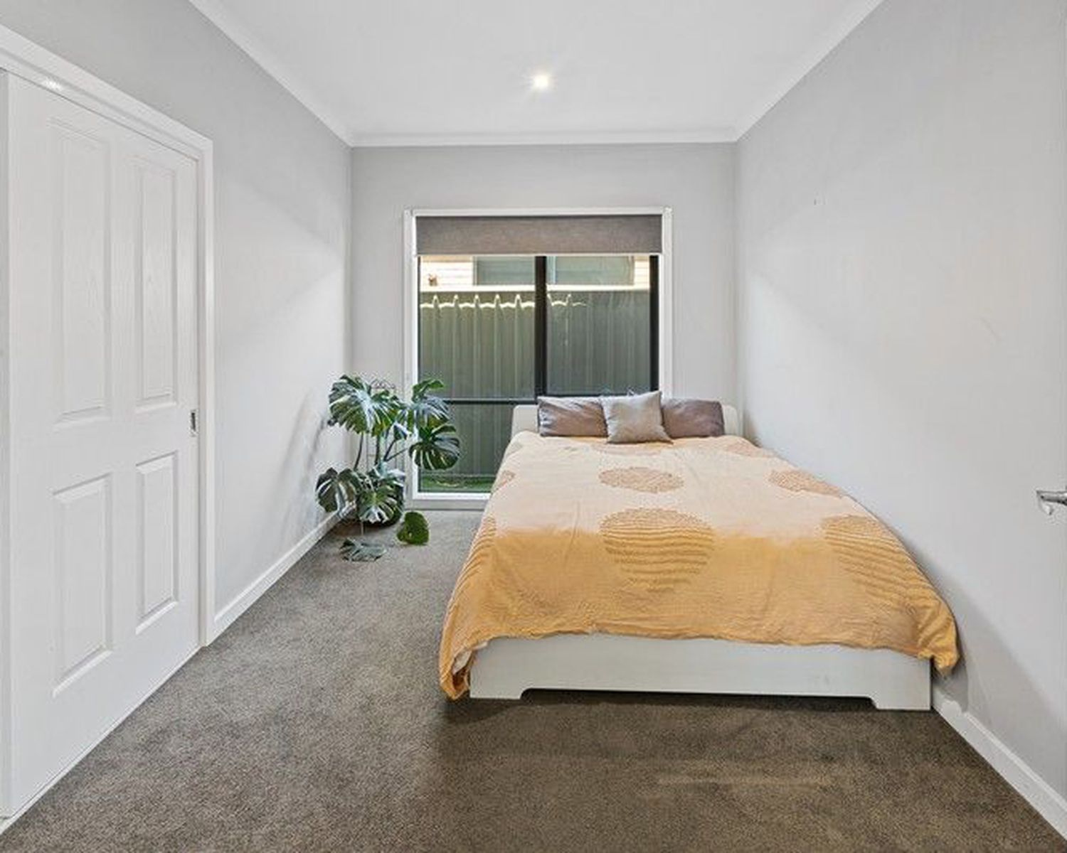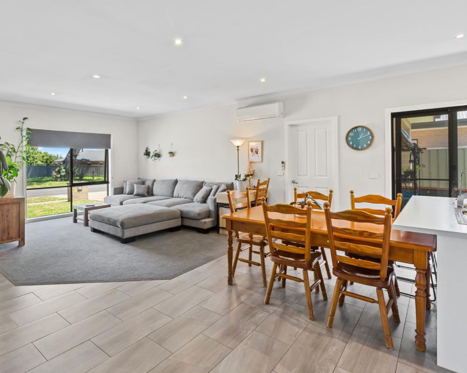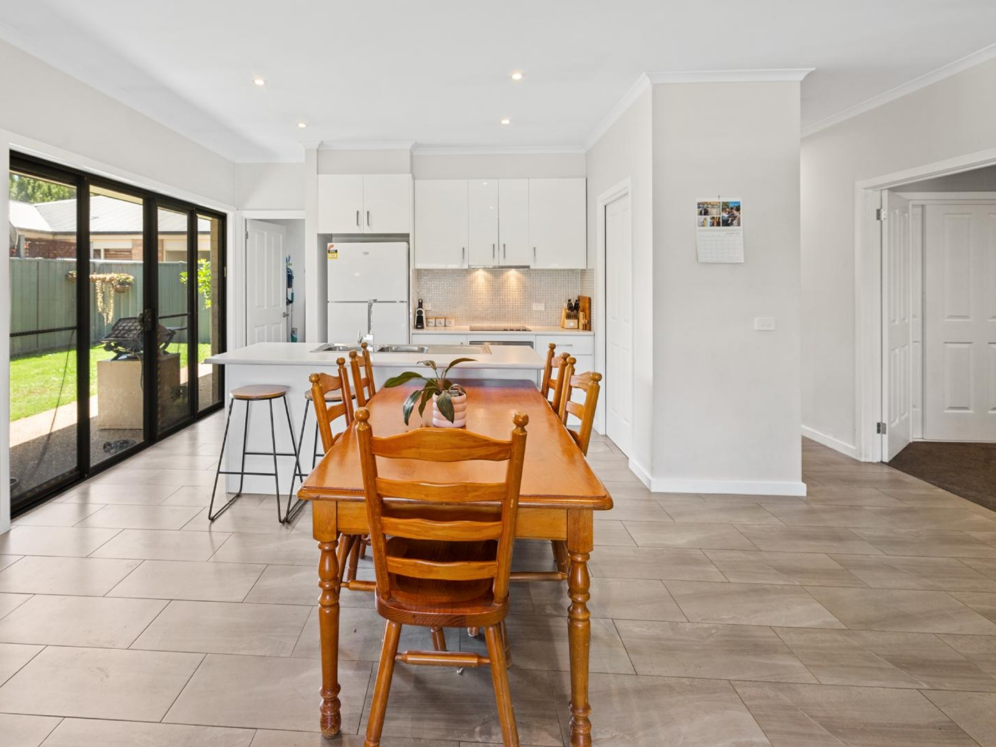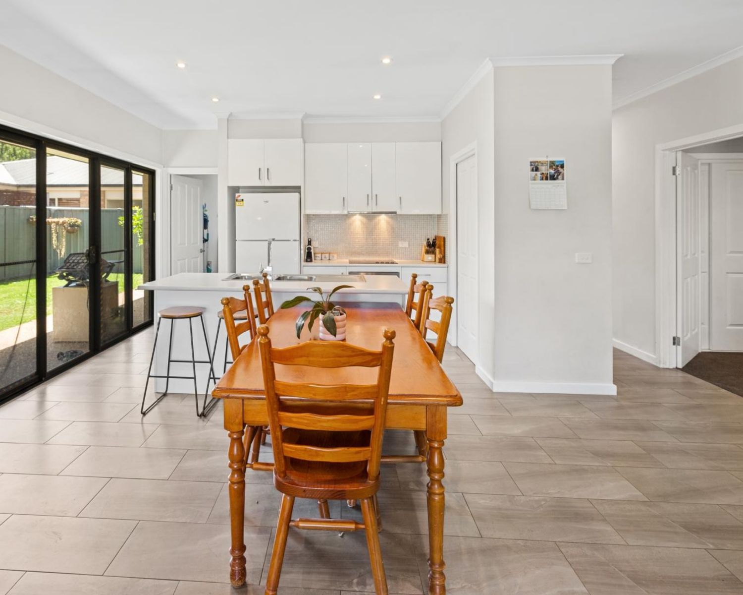 Built by a trusted local builder, the home showcases thoughtful design and low-maintenance appeal. High ceilings and soft downlighting enhance the open plan living and dining area, which flows to a sleek kitchen complete with modern appliances and a compact butler’s pantry.