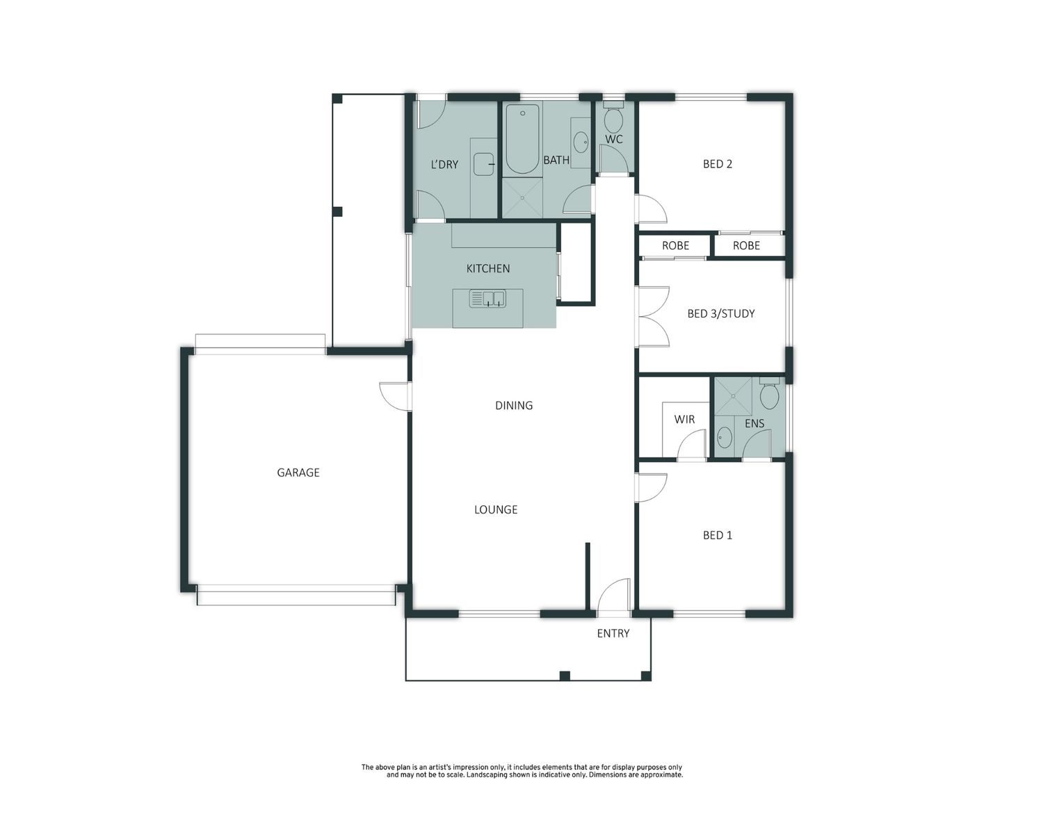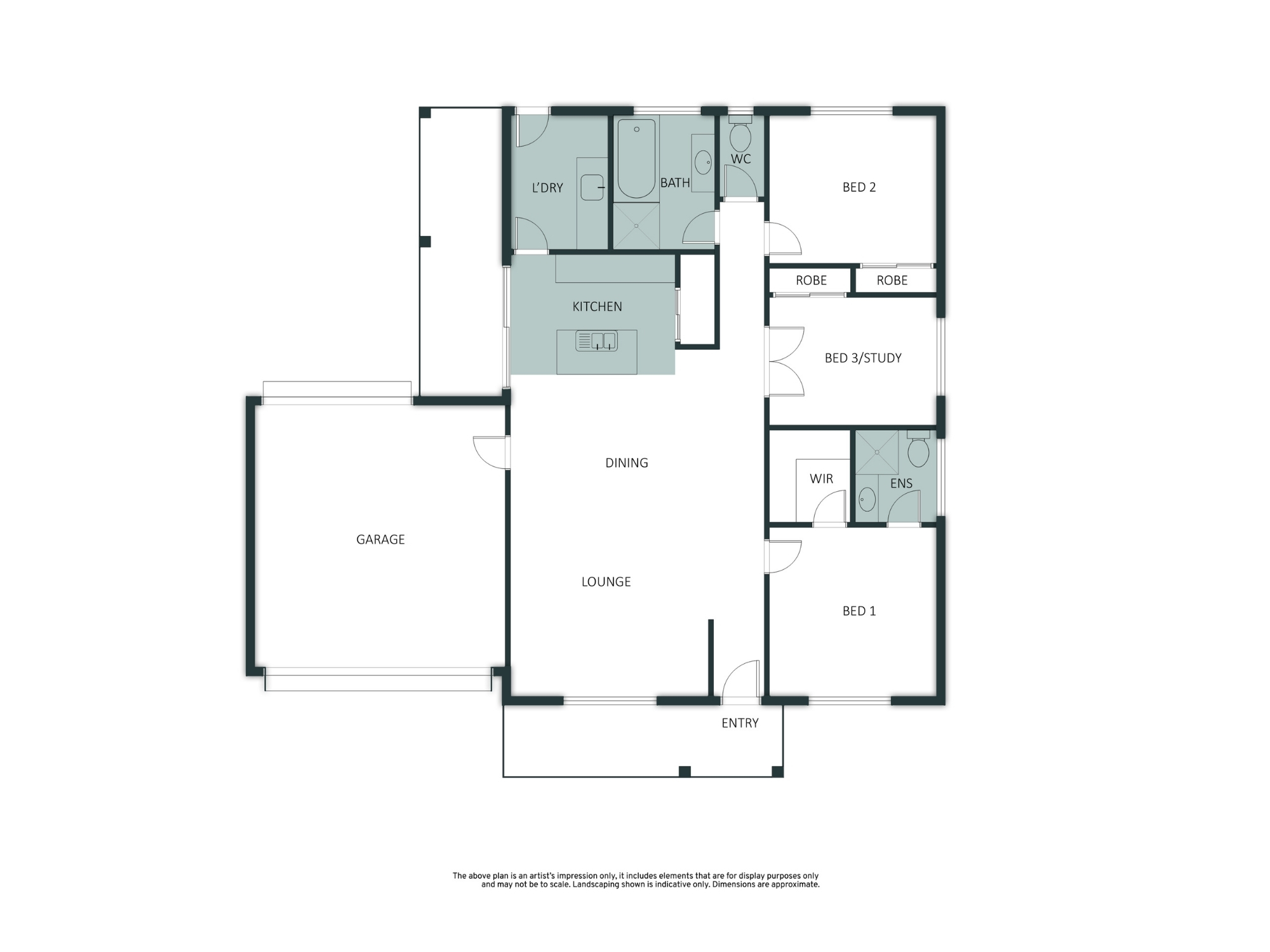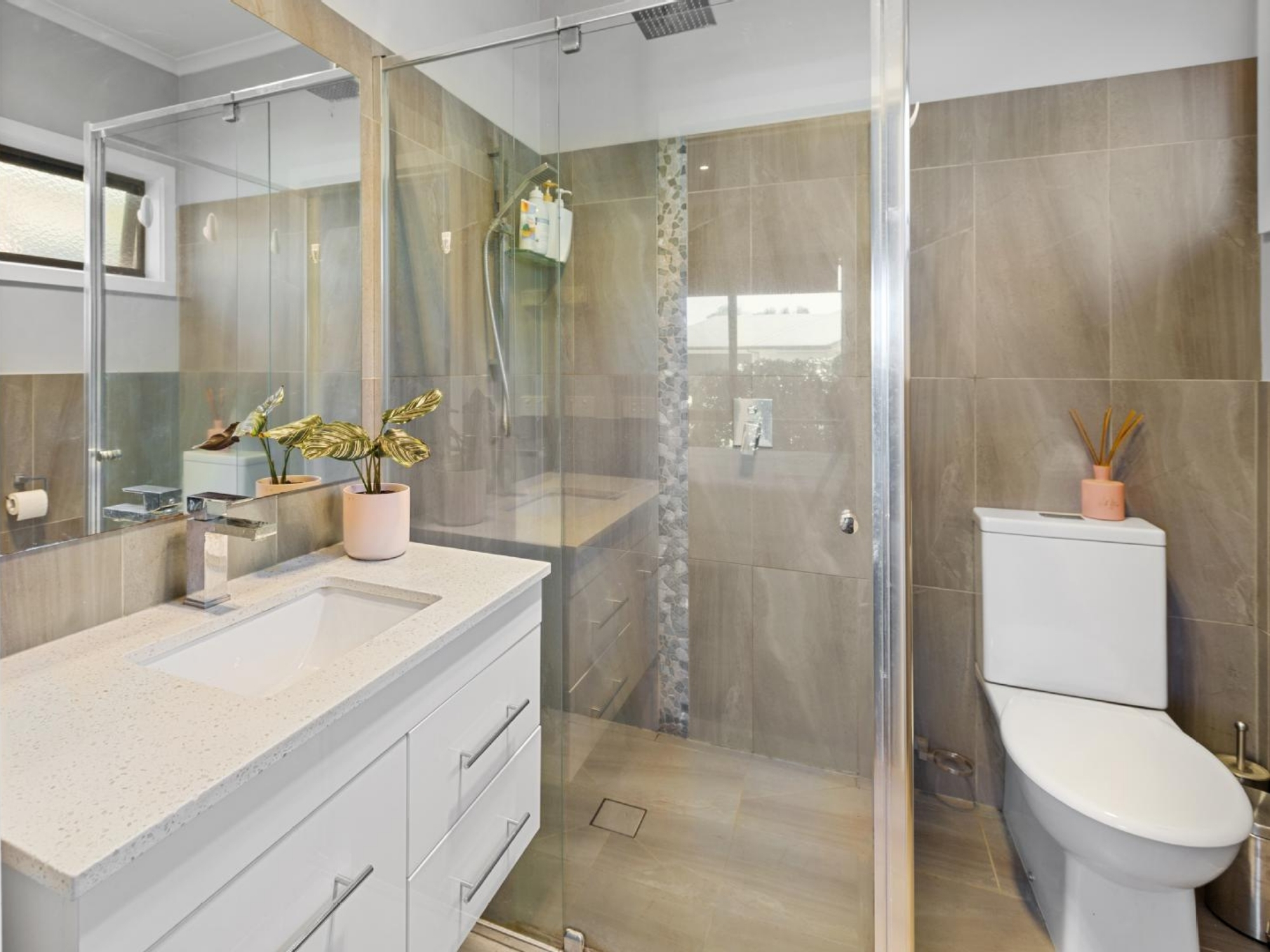 Comfort is assured throughout the seasons with a split system, feature Euro wood fire and underfloor heating in both bathrooms. The three generous bedrooms include a master suite with a stylish ensuite, while the main bathroom features a deep soaking tub. A spacious laundry with outdoor access and a double lock-up garage with rear roller door add practicality to the home’s smart layout.