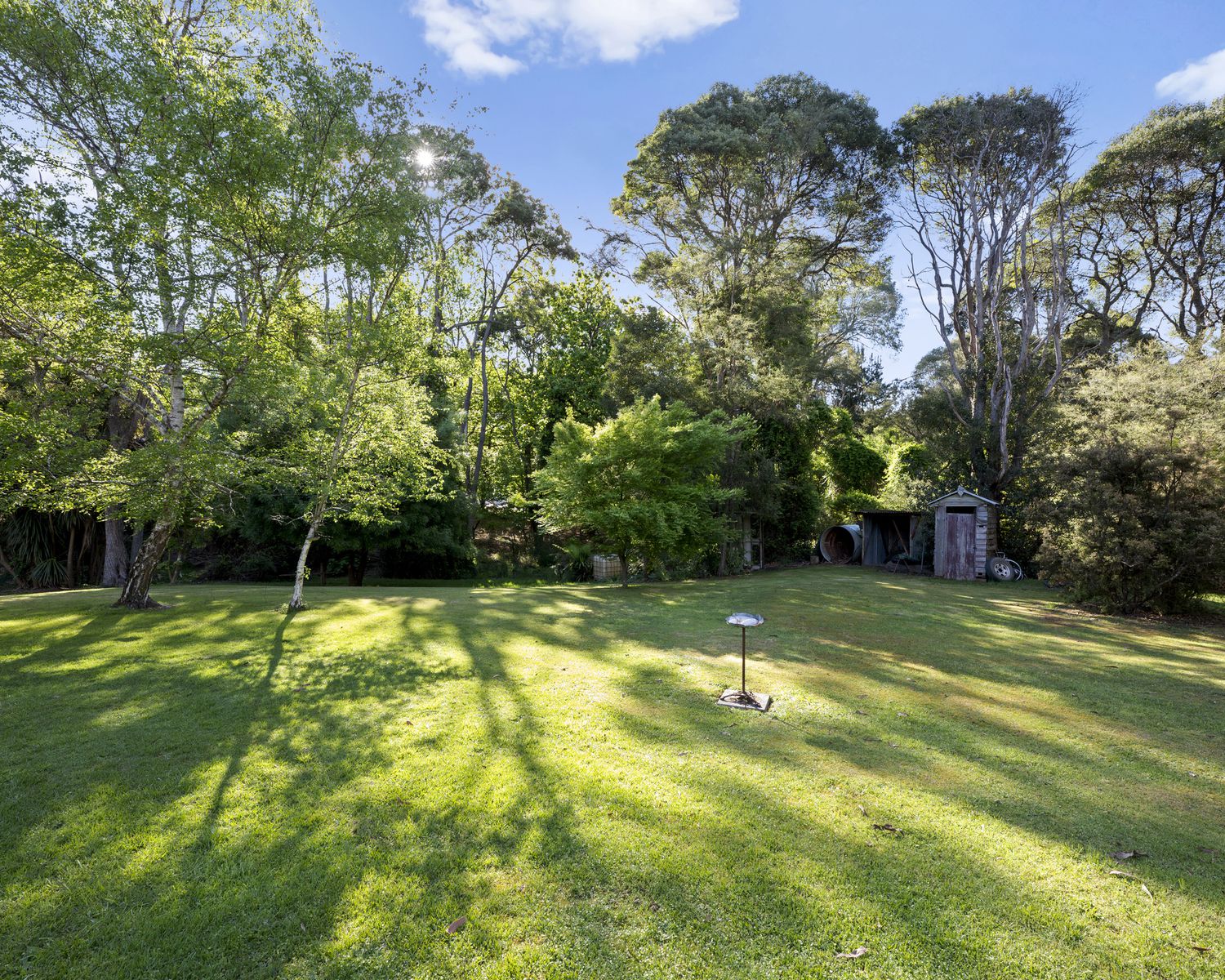 Set on approximately 2427m² (over half an acre), the property offers generous outdoor space with leafy outlooks in every direction. There’s a large open plan living and dining area with wood fire, practical kitchen, two oversized bedrooms (with the option to reconfigure and potentially create a third), and a combined bathroom and laundry. Front and rear verandahs capture the natural surrounds, perfect spots to sit and take in the peaceful setting.