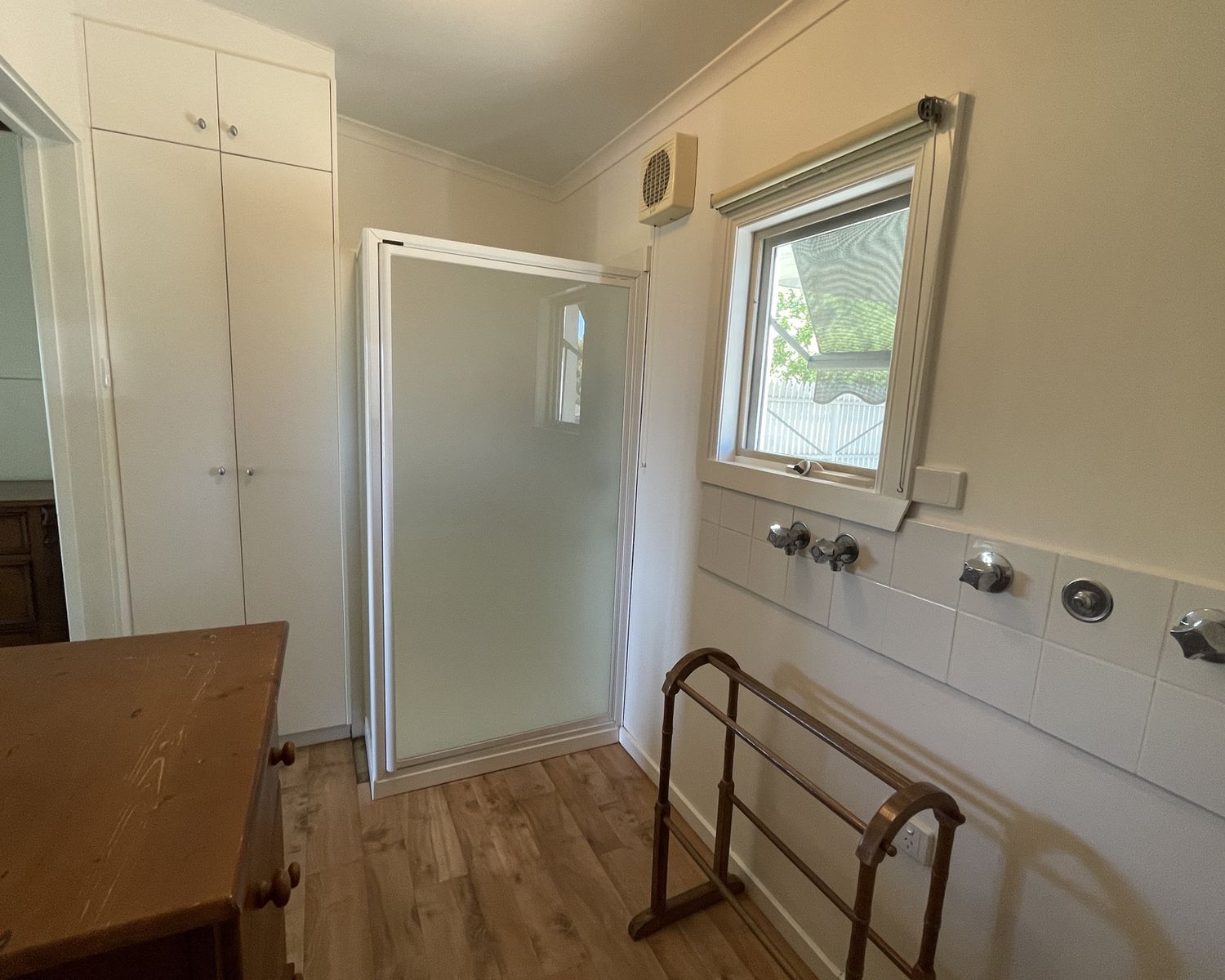 Bedroom with built-in-robe, separate bathroom/laundry with further storage.