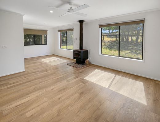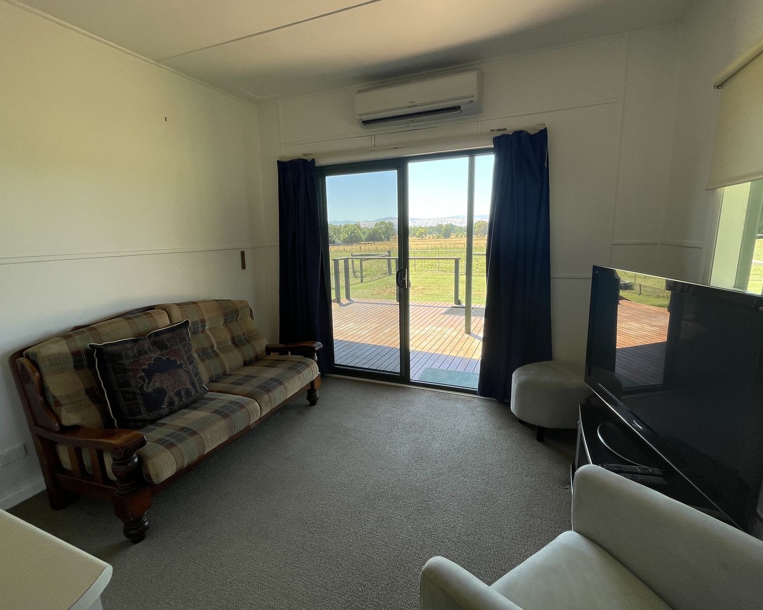 Cosy open plan kitchen and living looking out onto paddocks and mountains.