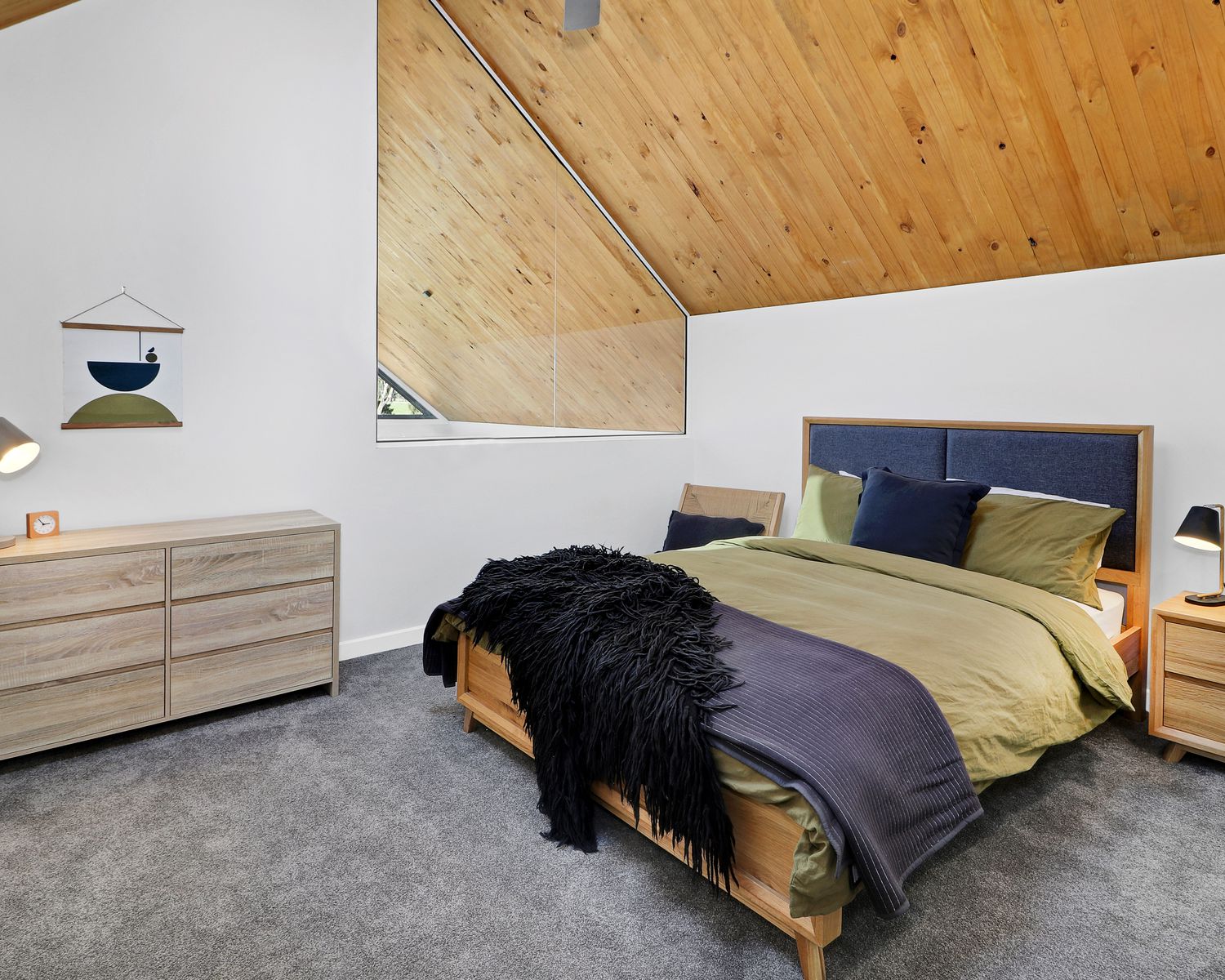 A striking gabled form, cedar shingle accents and expansive glazing give the home an immediate sense of presence. Inside, the vaulted timber lined ceilings and floor to ceiling windows fill the living spaces with natural light while framing uninterrupted views of the countryside.
