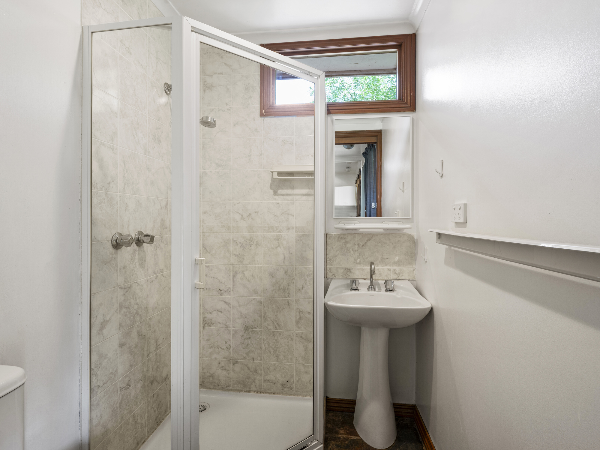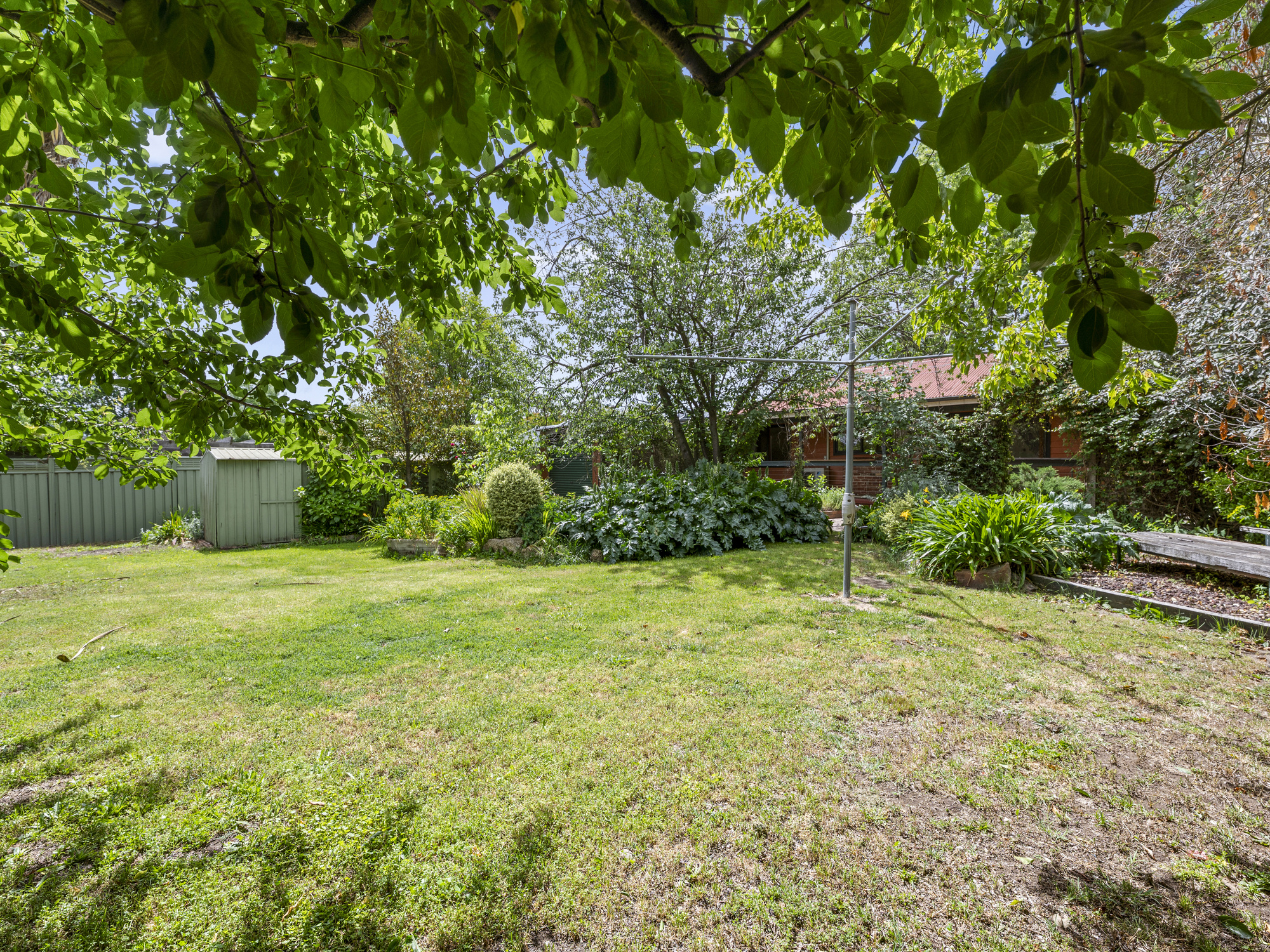 Outdoors, mature gardens and leafy surrounds create privacy and a peaceful outlook, while a garden shed with power and concrete floor provides practical storage. The allotment enjoys a broad frontage and near-level contours, making it well suited for future upgrades or redevelopment.