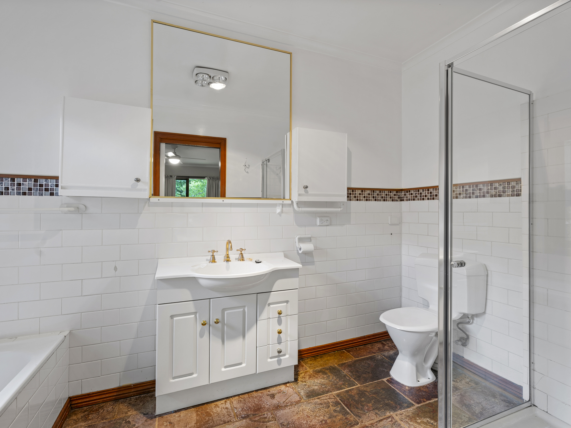 The home features three bedrooms, two bathrooms and an inviting living area with split system heating and cooling. The master suite is generously proportioned, complete with a spacious ensuite including separate bath, shower, toilet and vanity. The family bathroom is compact but functional, with scope for improvement. A light-filled kitchen with gas cooking adjoins the meals area, providing a comfortable base for everyday living.