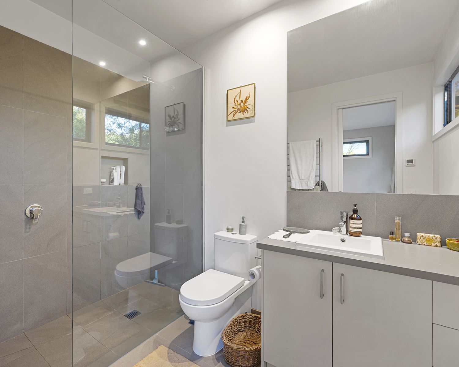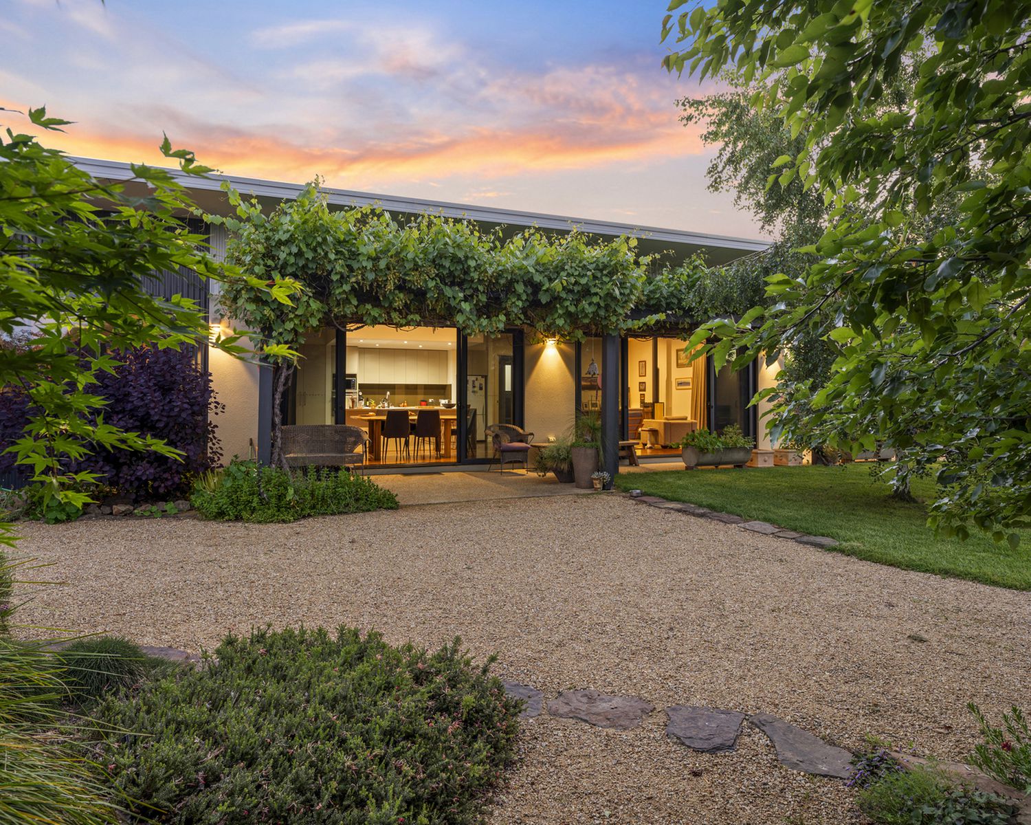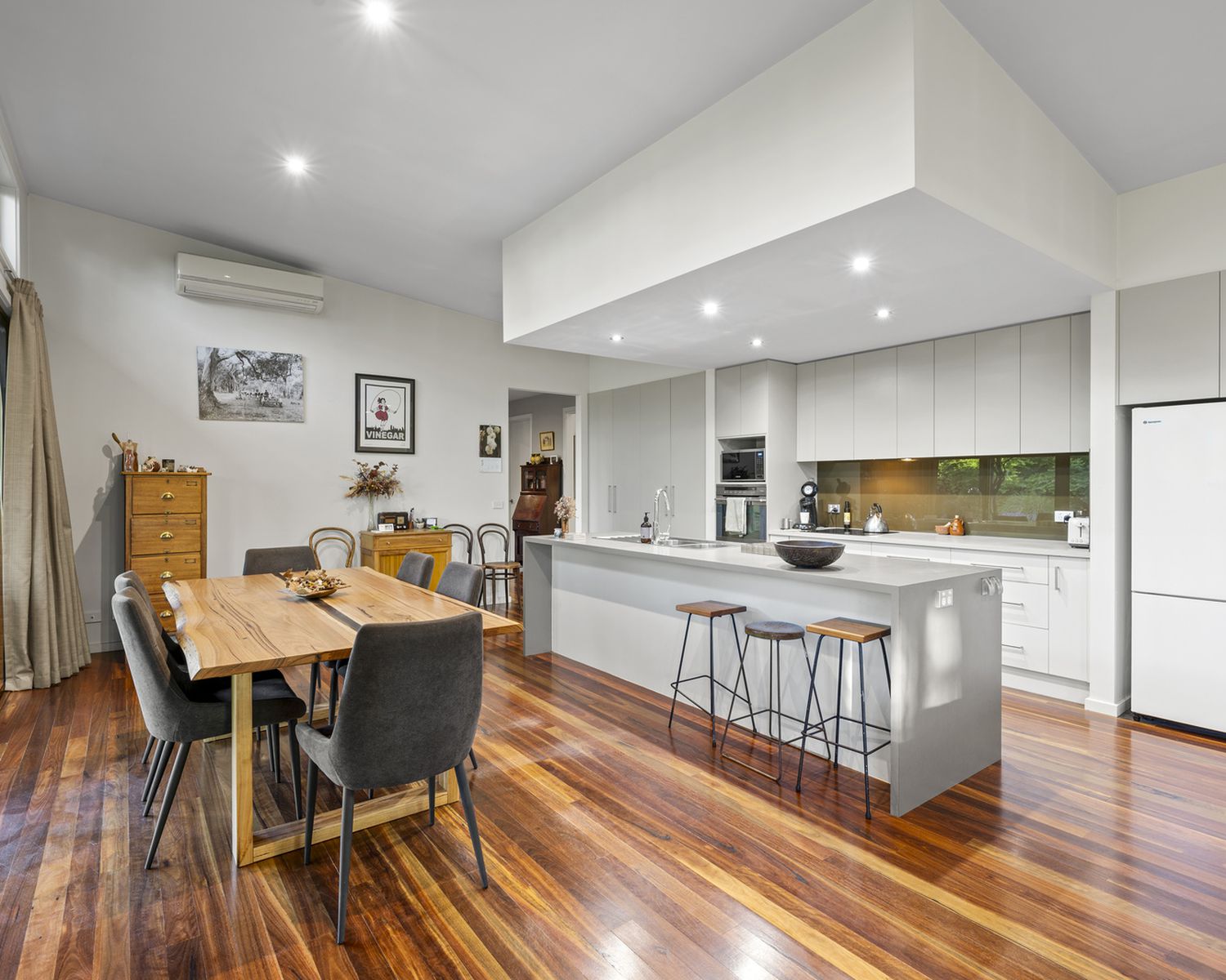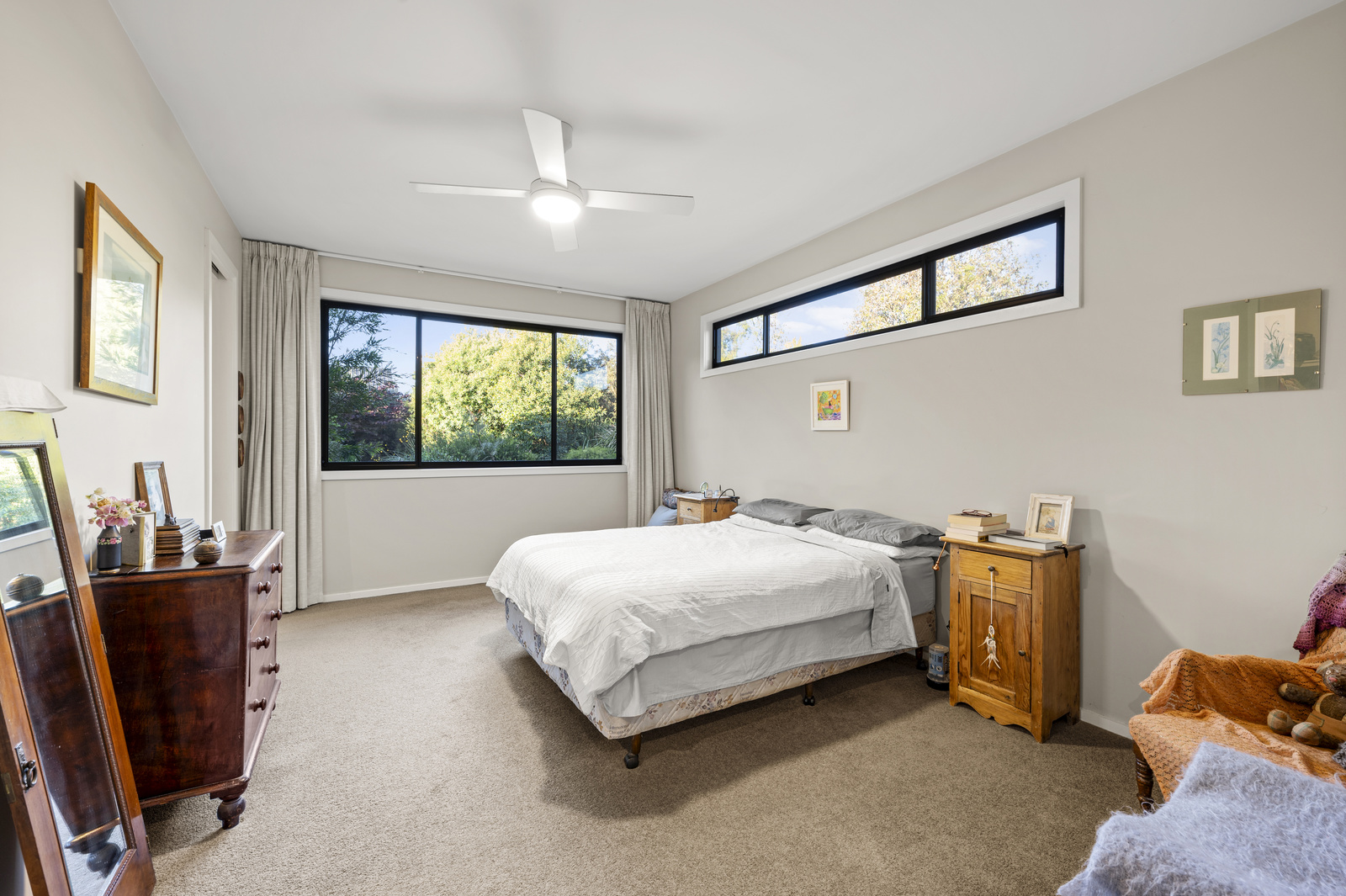 Built by a respected local builder, and architecturally designed by Willick Design, the home is surrounded by established gardens that create a wonderful sense of privacy. The north-facing open-plan kitchen, living and dining area is light-filled and inviting, with views over lush native gardens. Timber floors, extra-high ceilings, a Euro-style wood heater and split system add both comfort and charm.