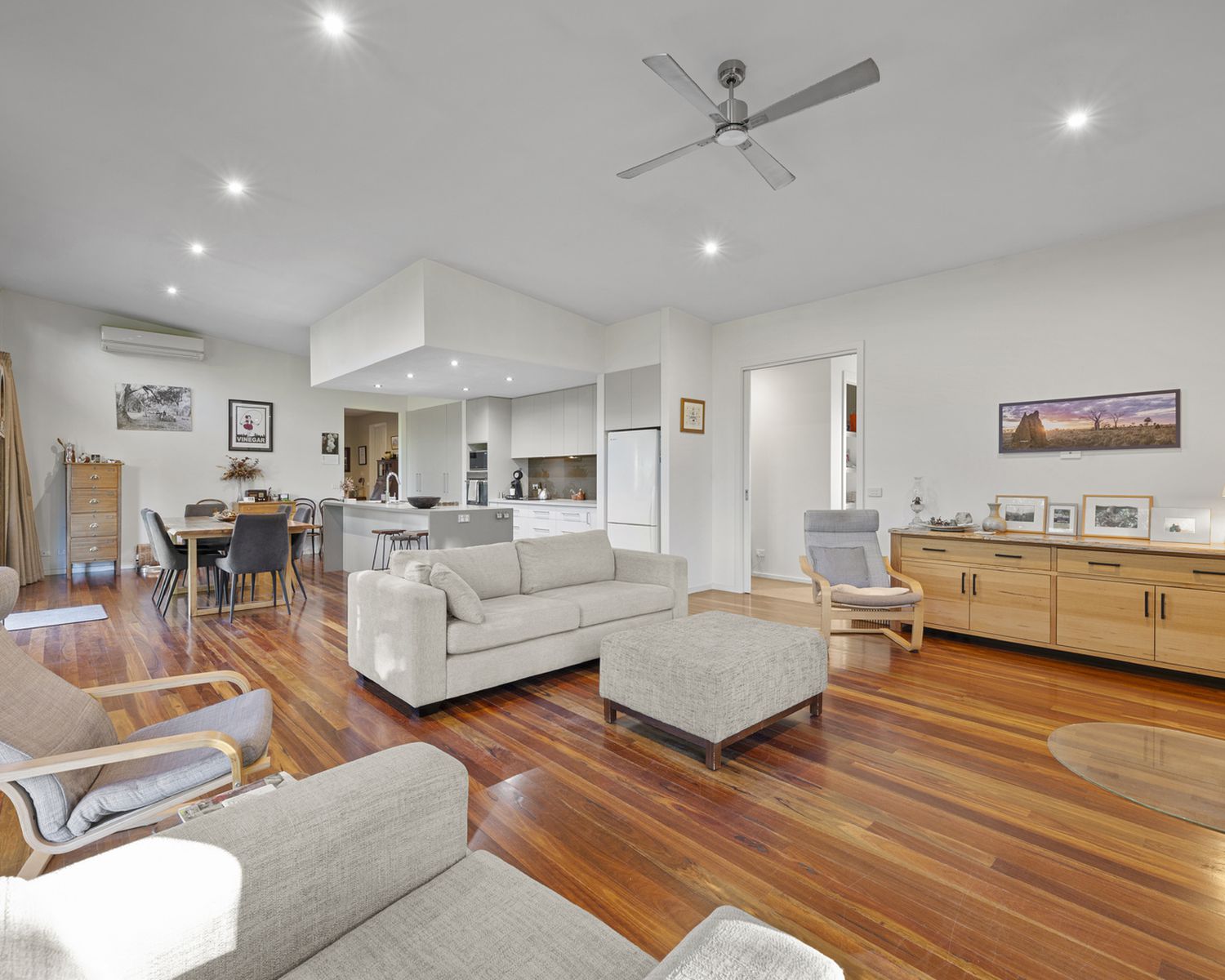 The master suite is exceptionally spacious, featuring a walk-in robe and ensuite with a walk-in shower. The remaining two bedrooms are set away from the master for peace and privacy, each with a built-in robe and ceiling fan. A second lounge provides a flexible retreat - perfect for movie nights or when you don’t want to share the TV — and there’s ample storage throughout. Solar panels and hot water as well as two 9,000L water tanks provide sustainable living, whilst reducing living expenses.