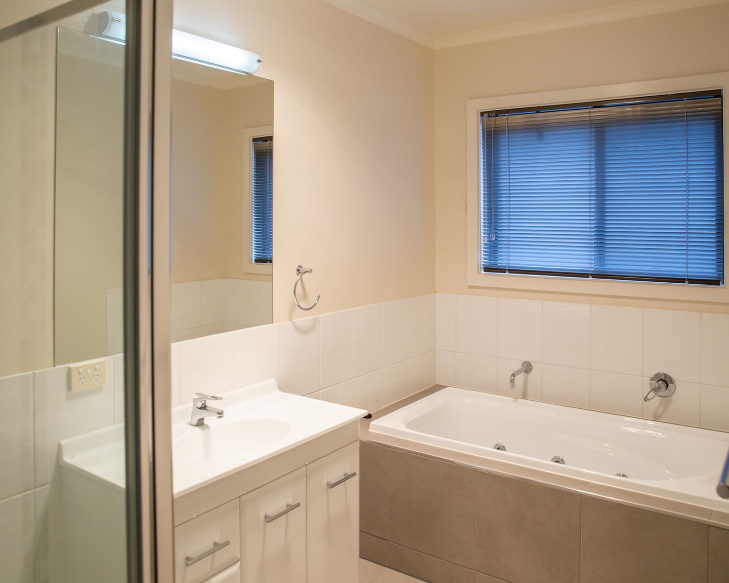 - Three bedrooms all with carpet, block out blinds, walk in robe in the master bedroom and built in robes in other two bedrooms.