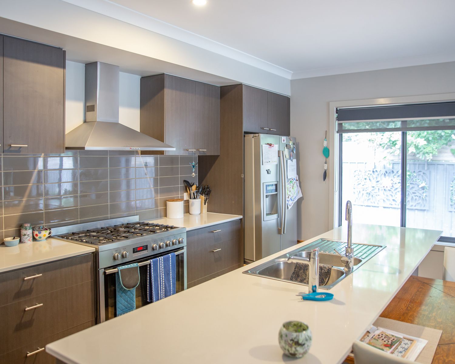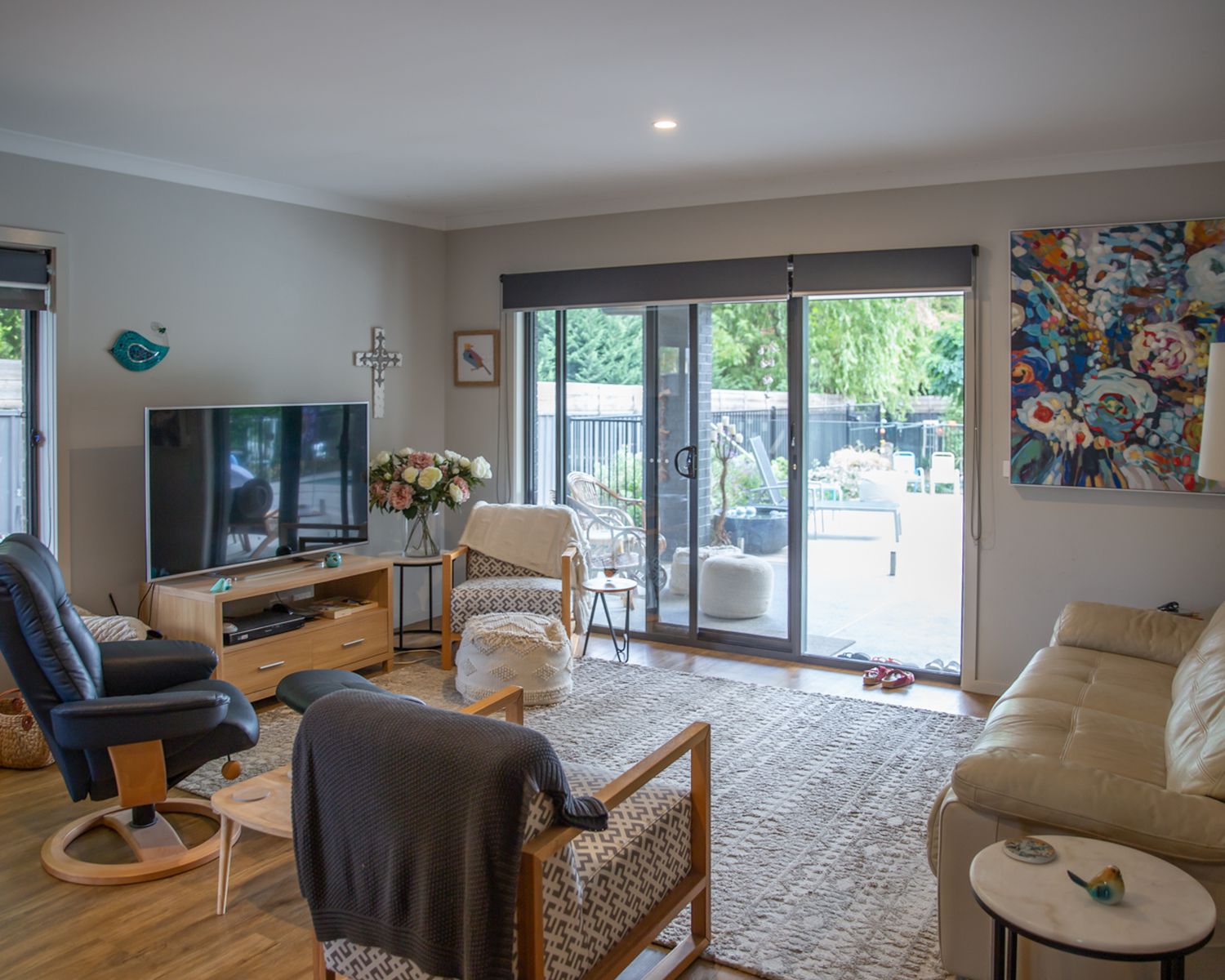 Inside, the thoughtful zoned floorplan offers excellent flexibility for families, sharers or anyone wanting extra room. The master suite with walk in robe and ensuite is positioned at one end of the home along with a second bedroom and a cosy TV or living room with a combustion wood fire. At the opposite end are two more bedrooms, the main bathroom and a separate WC. The central open plan living area is filled with natural light and flows out to the North facing covered alfresco area, ideal for relaxed outdoor dining. The kitchen features a large island bench, generous storage and a walk in pantry.